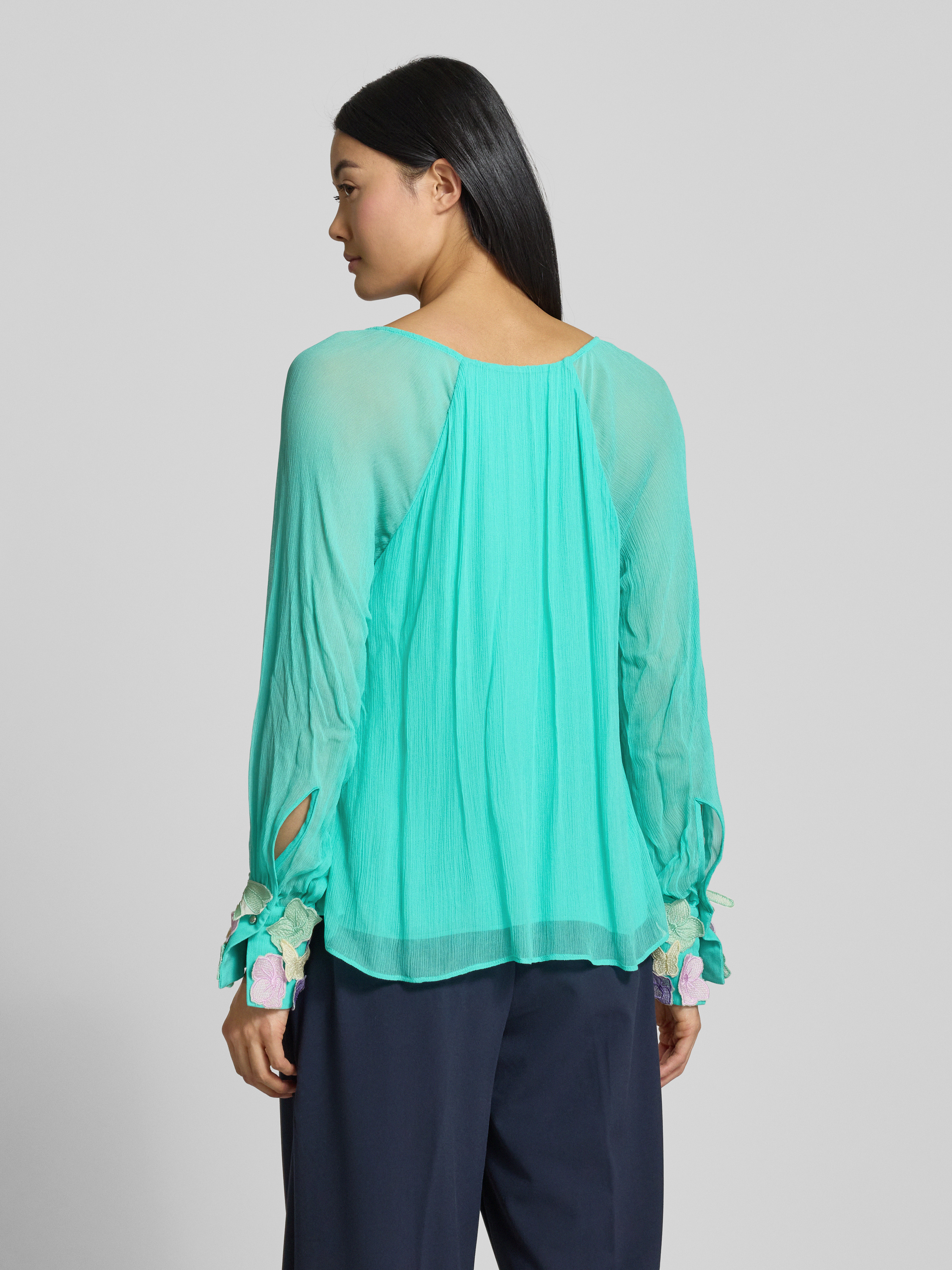 Regular fit blouse met bloemenapplicaties in groen
