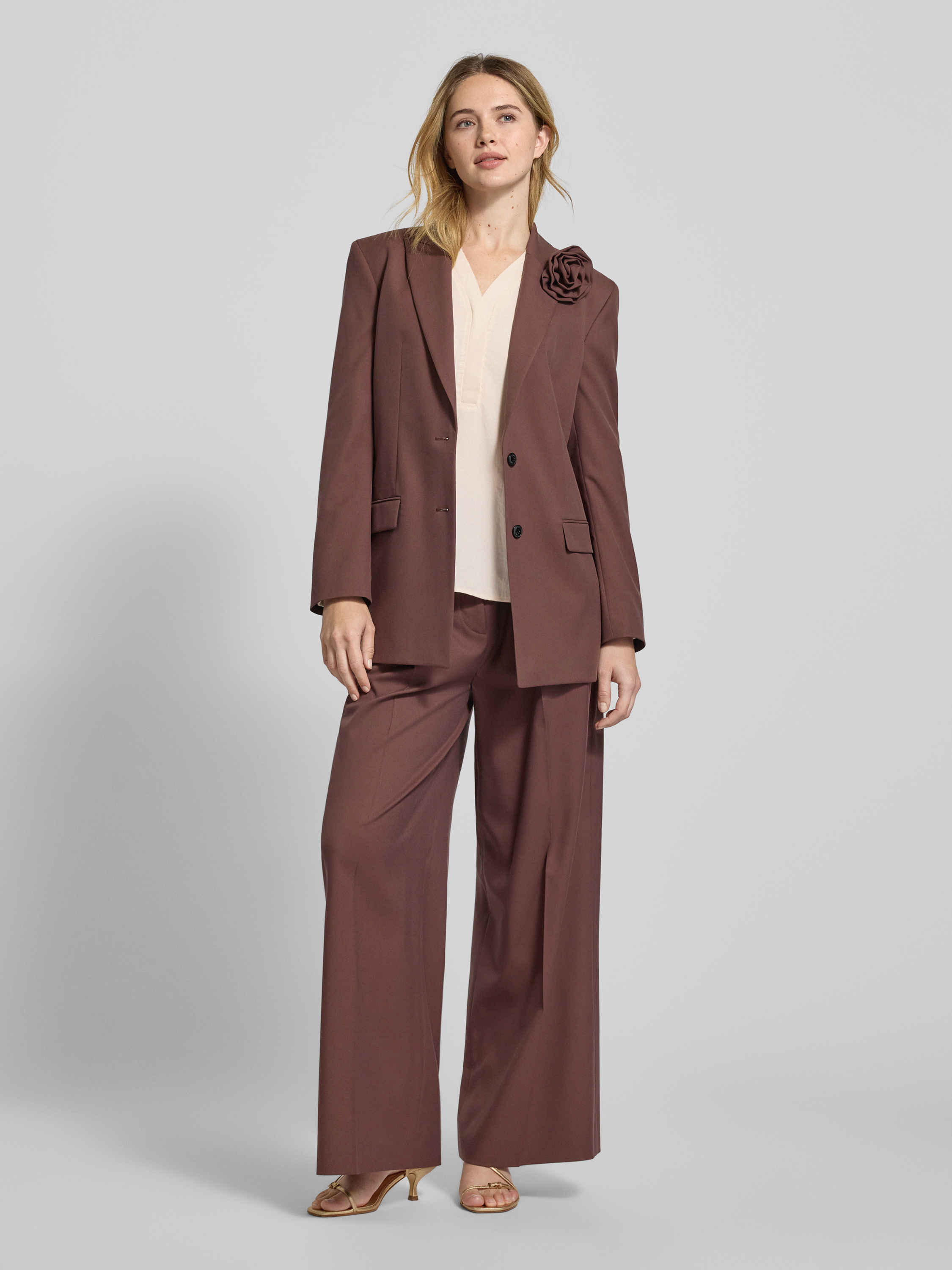 HUGORelaxed fit lange blazer met bloemenbroche, model 'AROSEA'