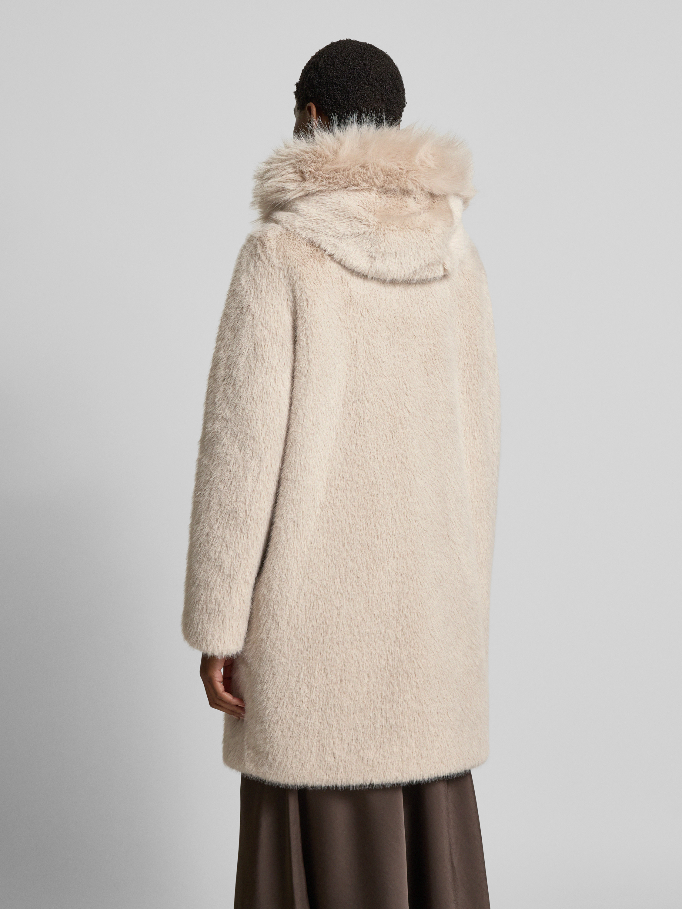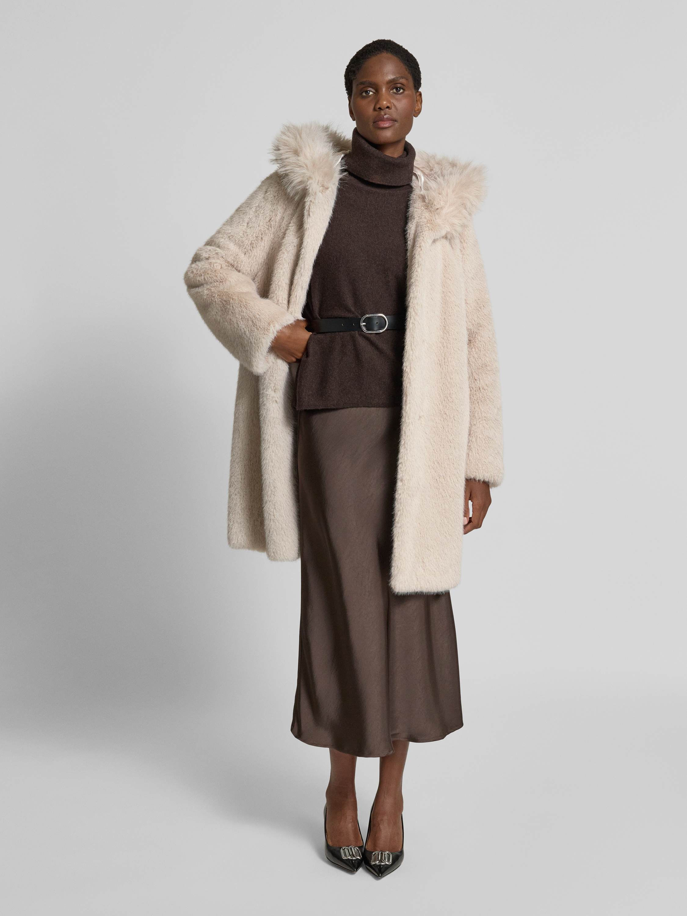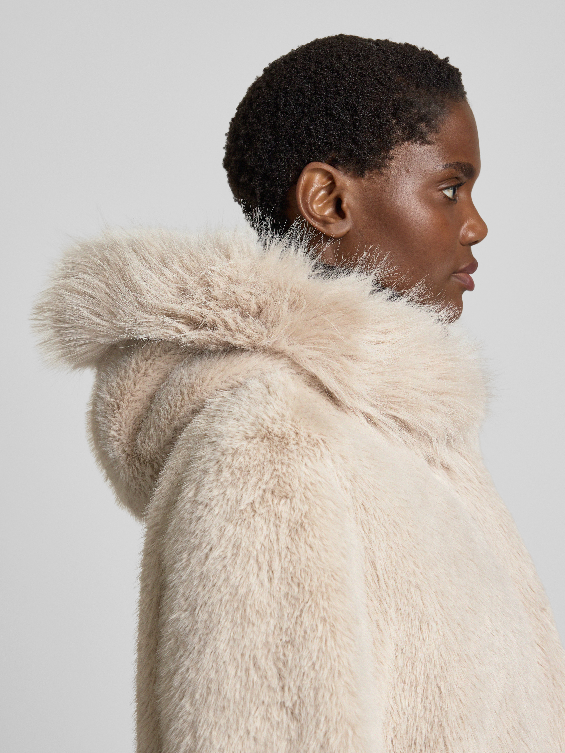 Marc CainRegular fit lange jas van imitatiebont in zand