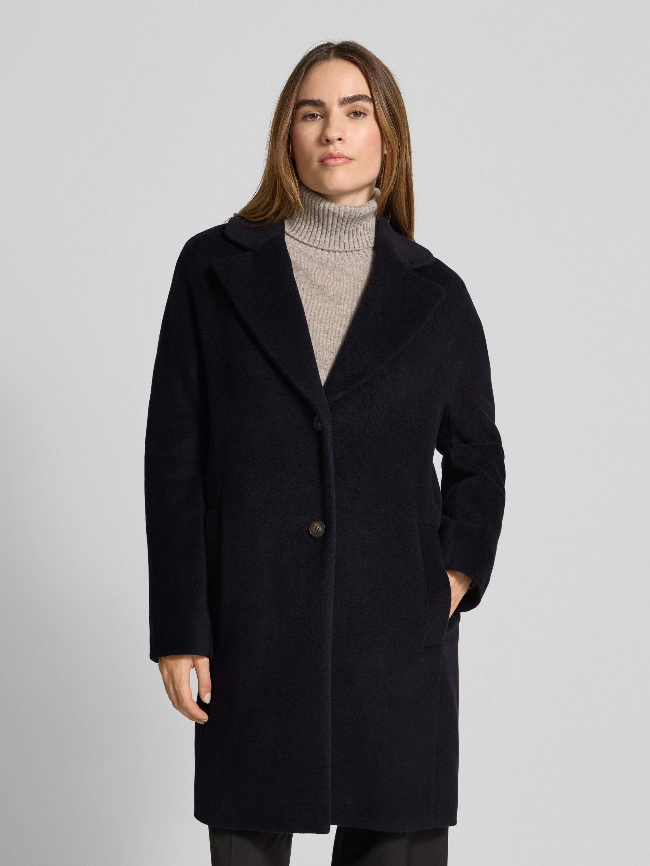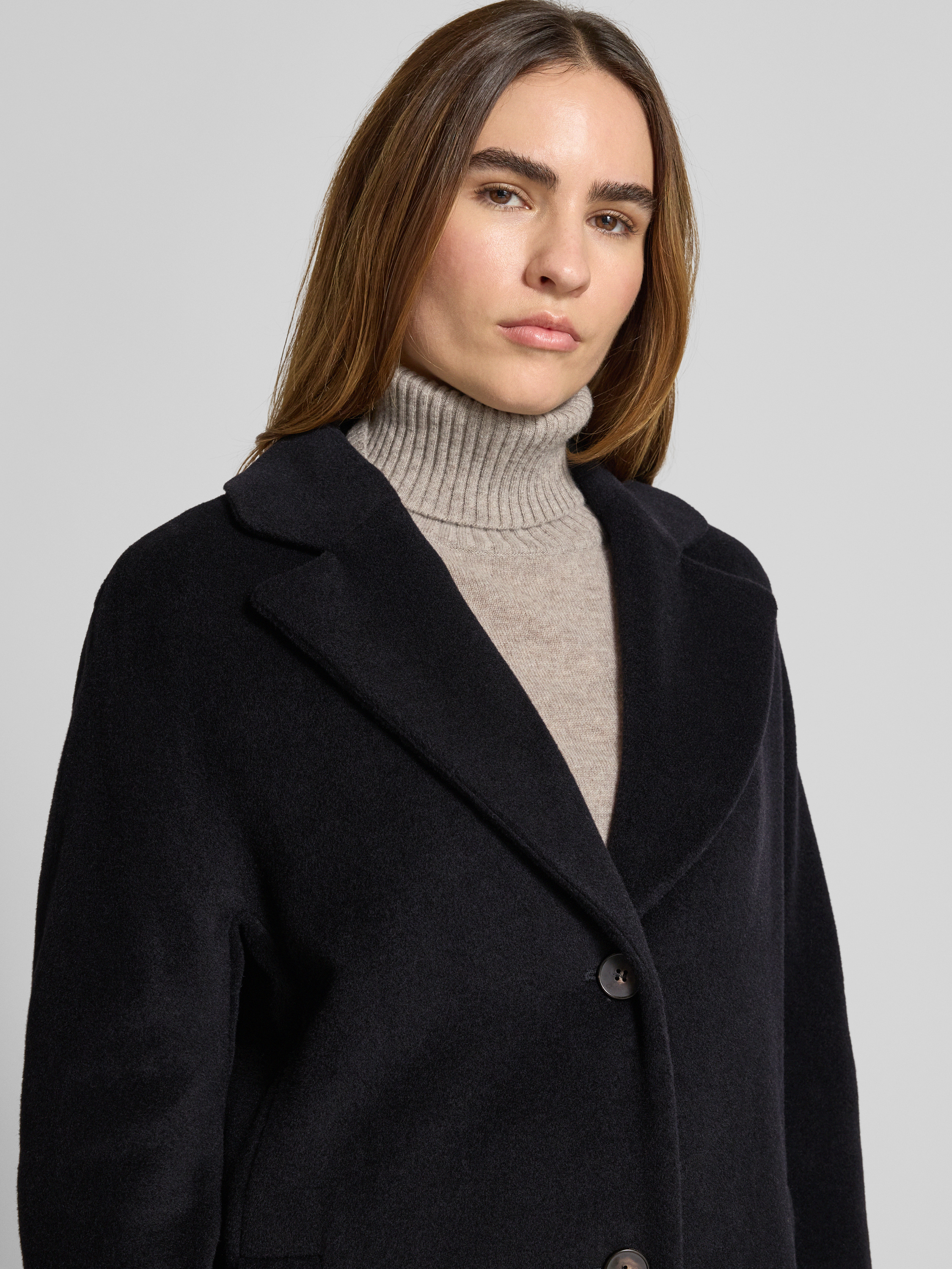Regular fit lange jas van scheerwolmix met alpaca in zwart