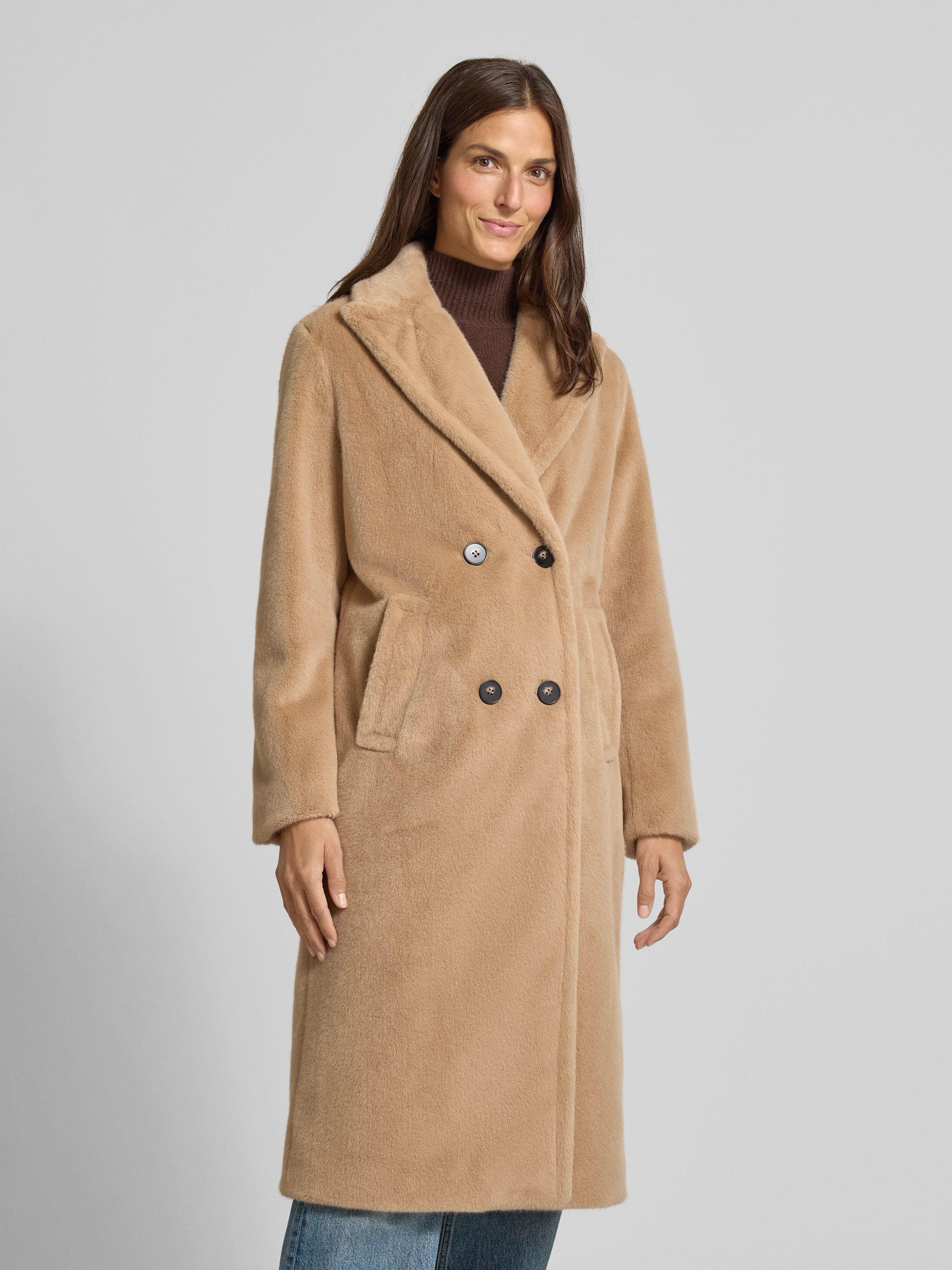 Marc CainRegular fit lange jas van teddybont in maxilengte in camel