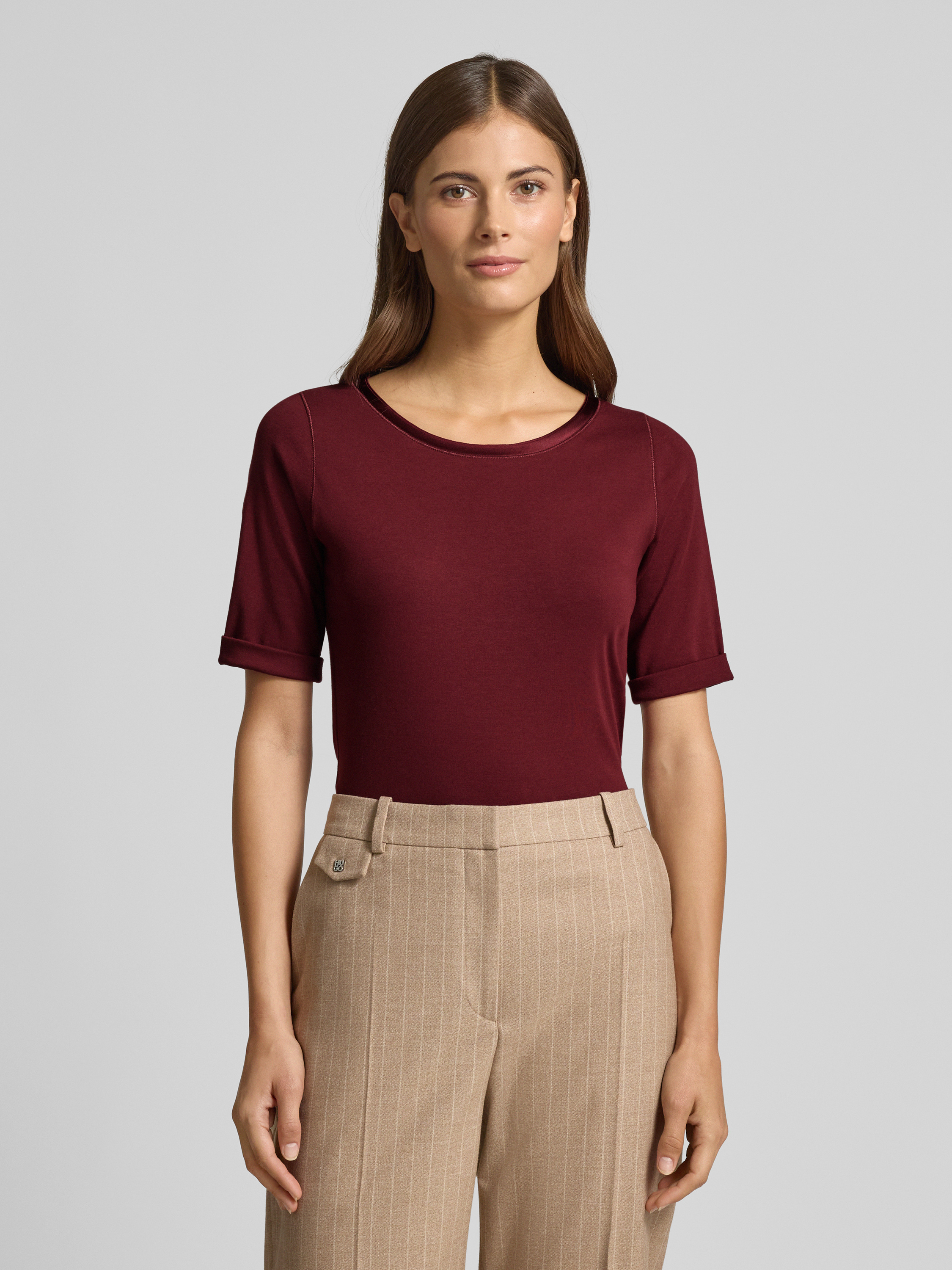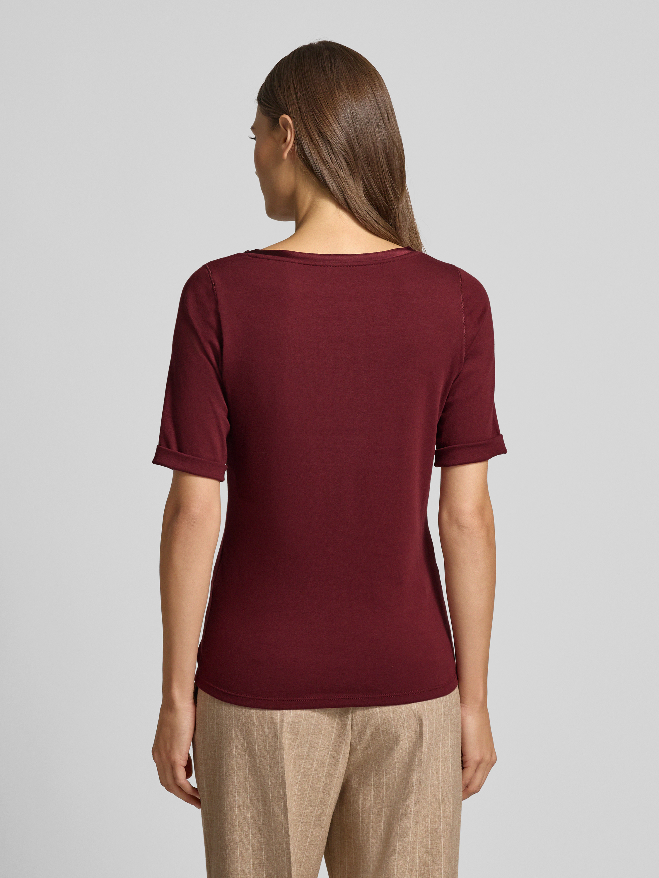 Regular fit T-shirt van katoenmix met 1/2-mouwen in bordeaux