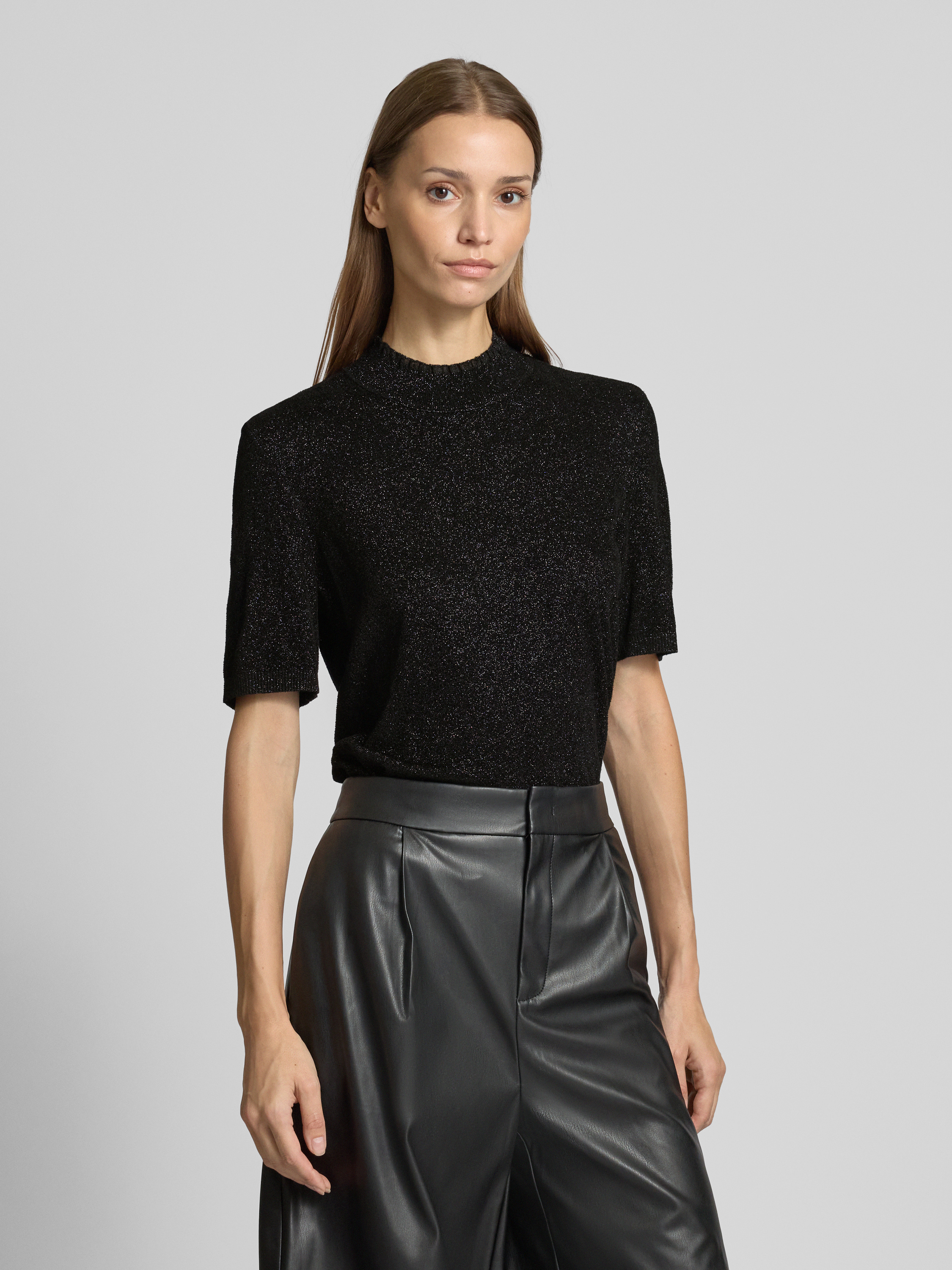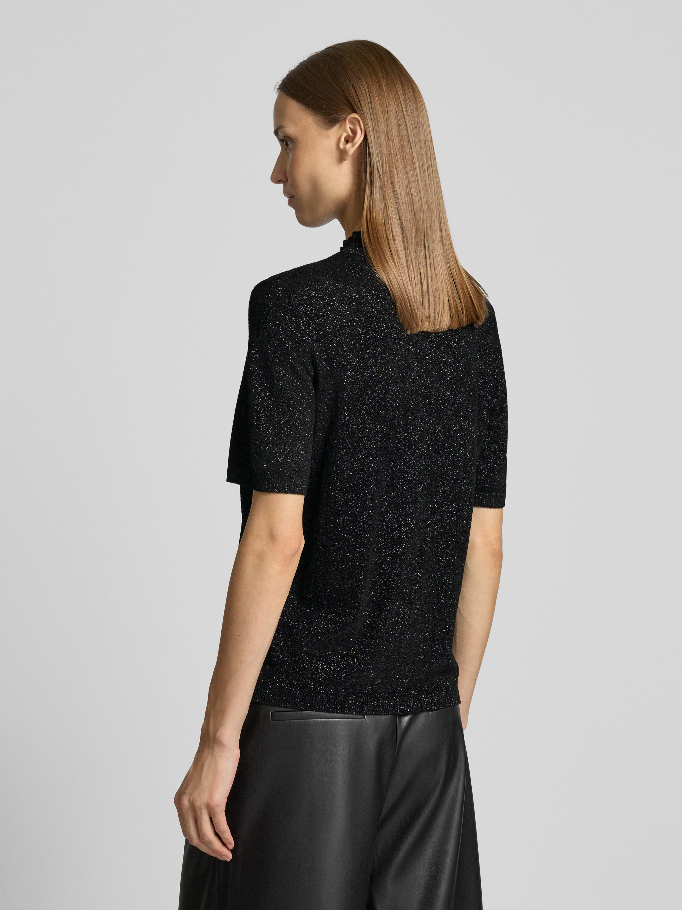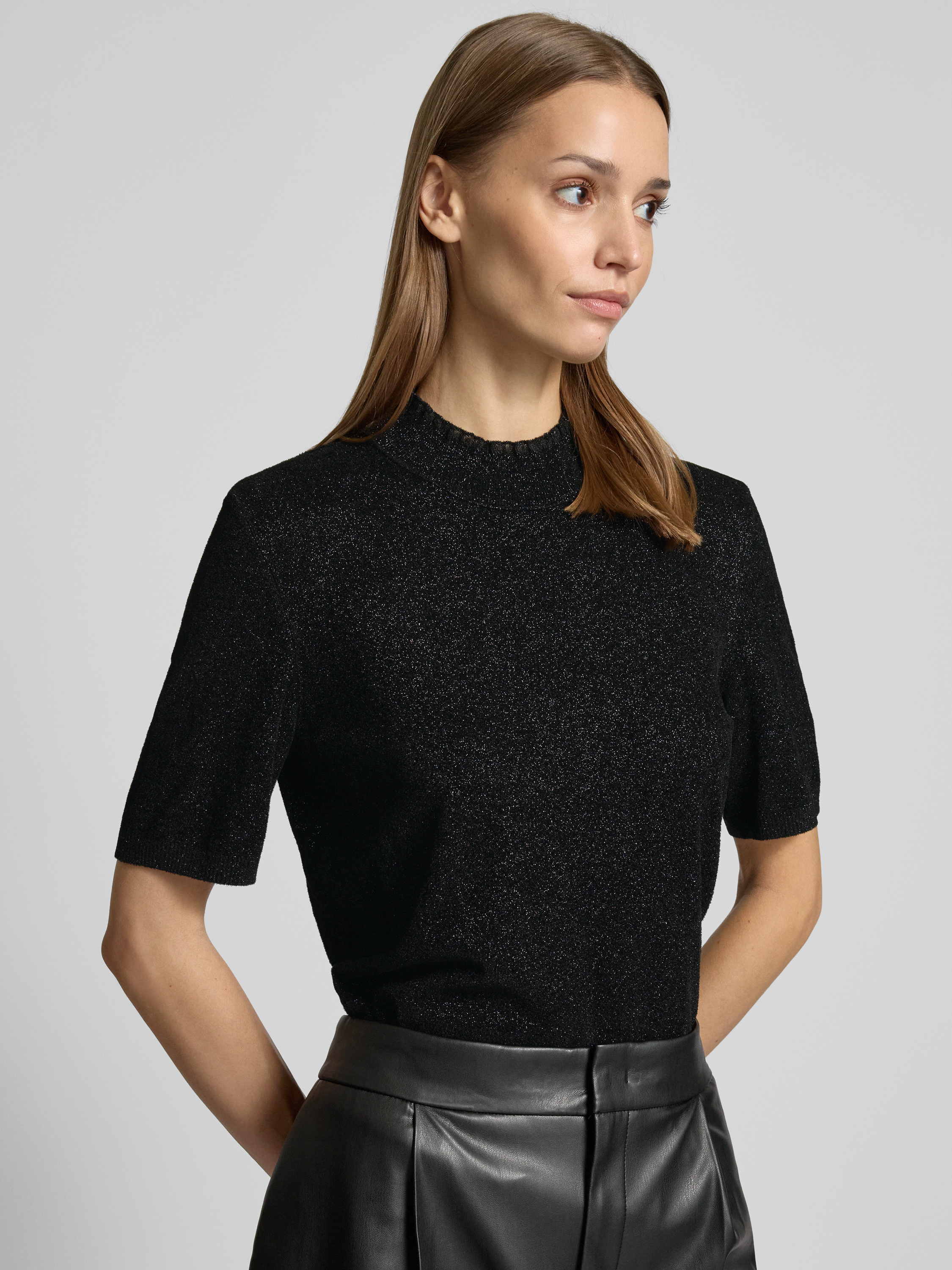 Shirt van effectgaren met opstaande kraag in zwart