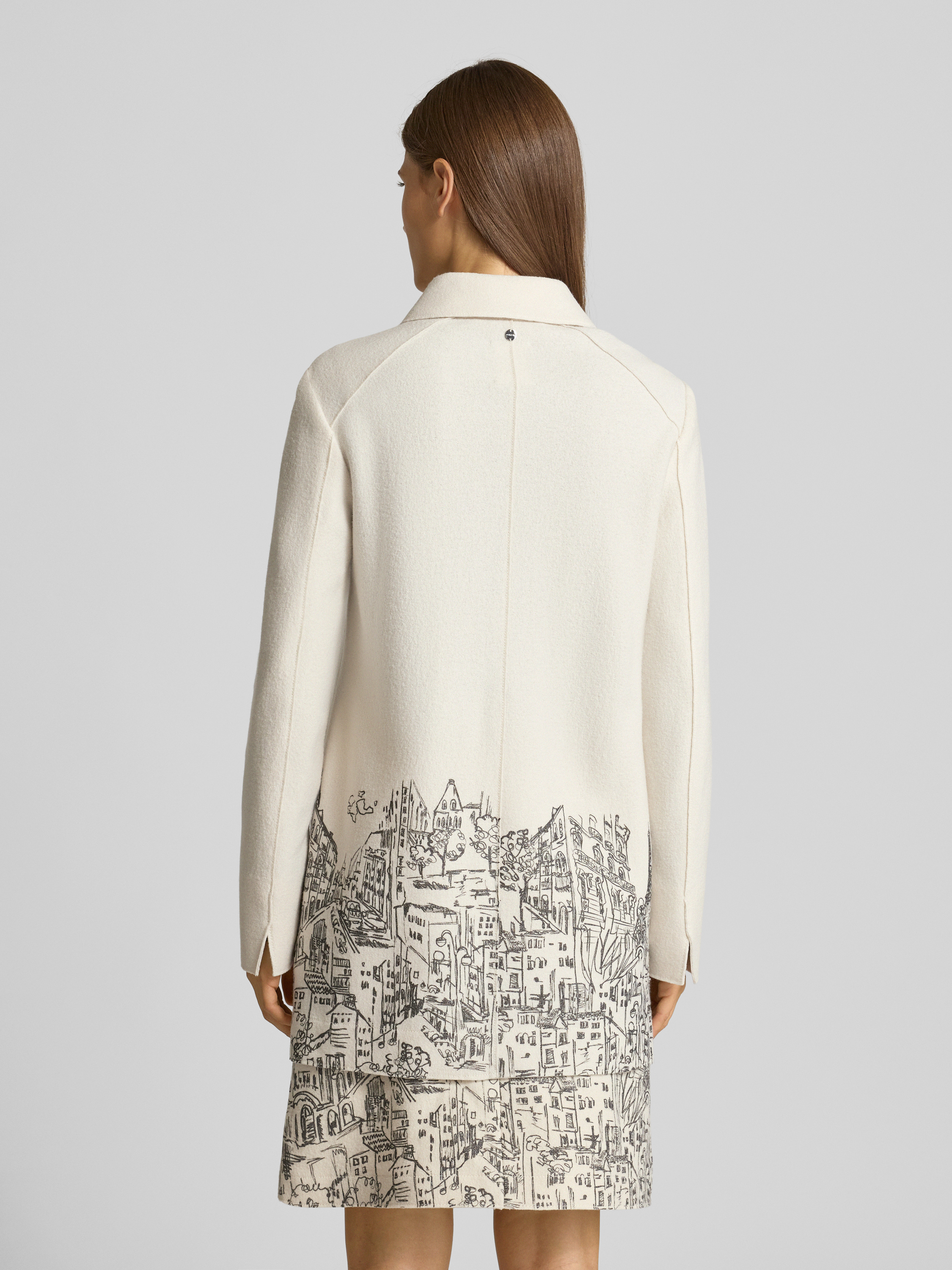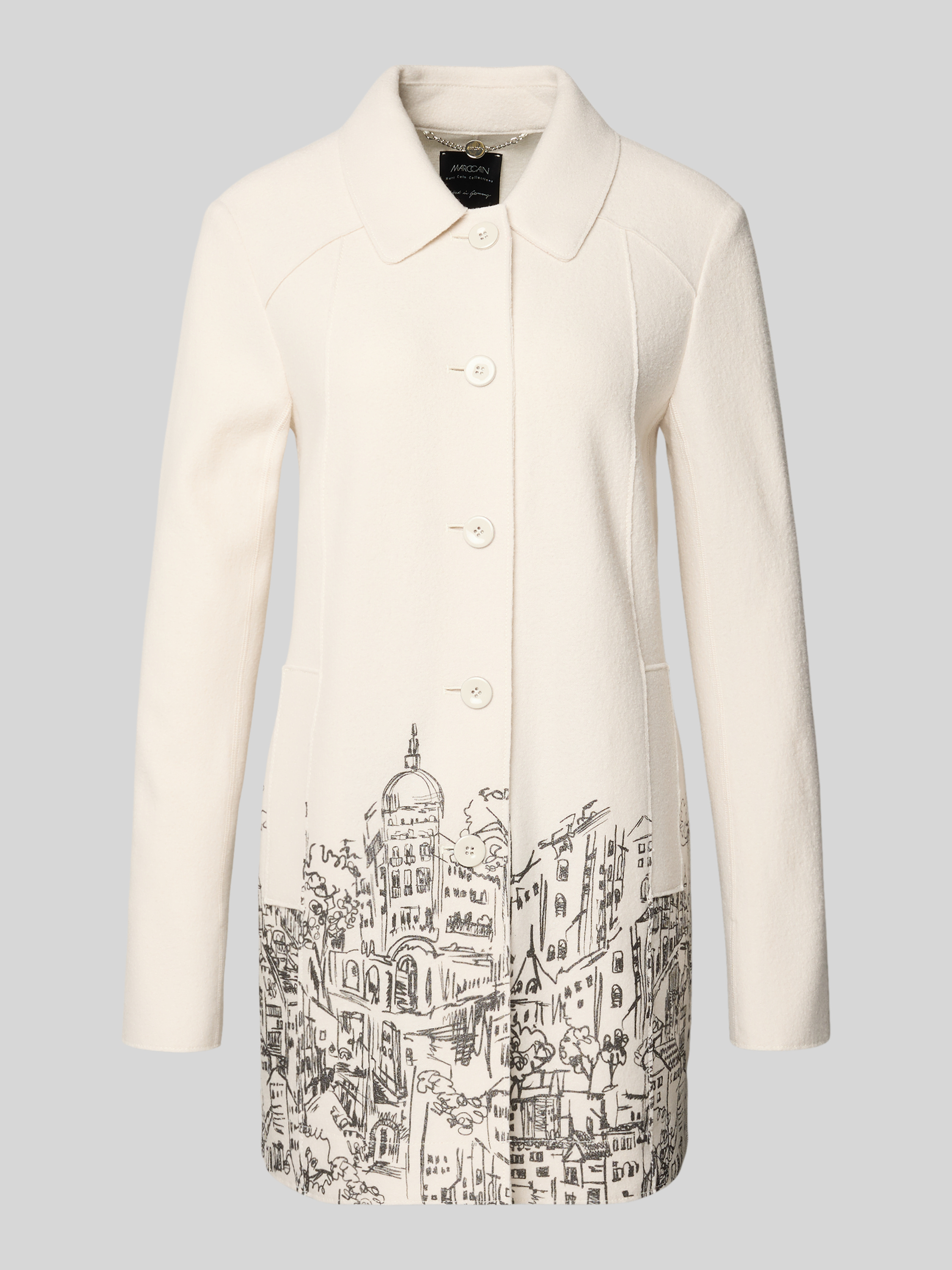 Marc CainSlim fit lange blazer van scheerwol in zand