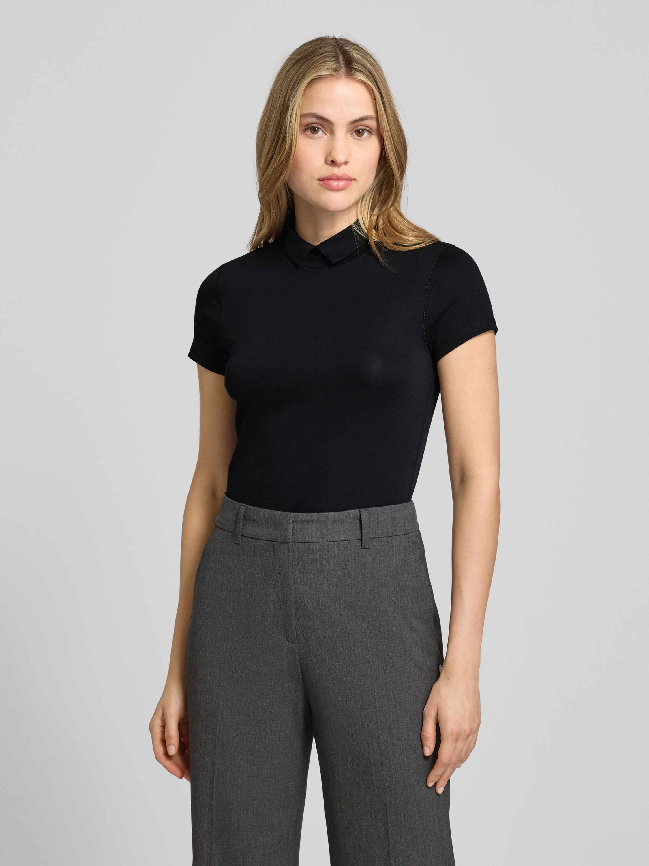 Slim fit T-shirt met polokraag in zwart