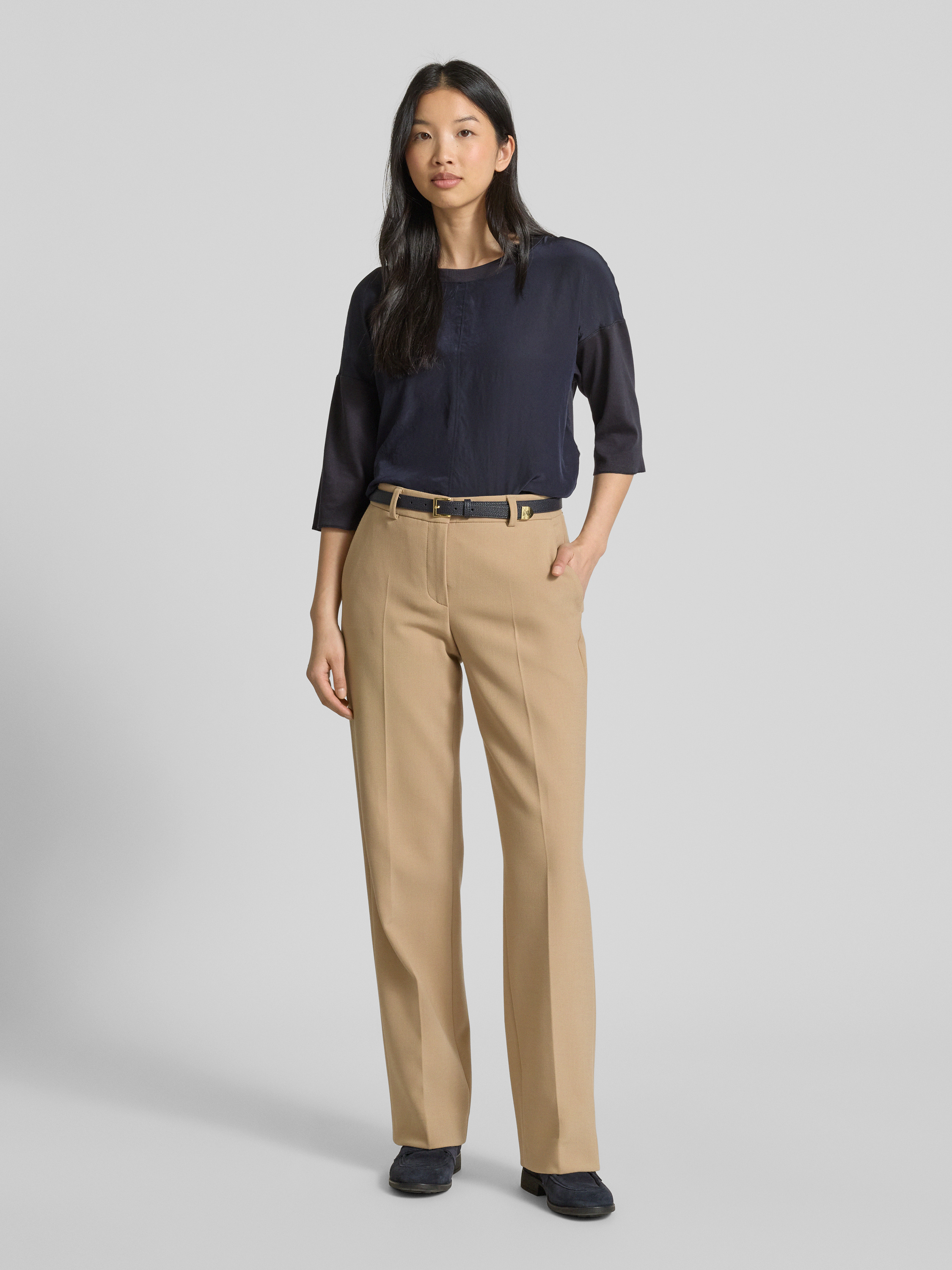 Straight leg stoffen broek met persplooien, model 'LUCA'