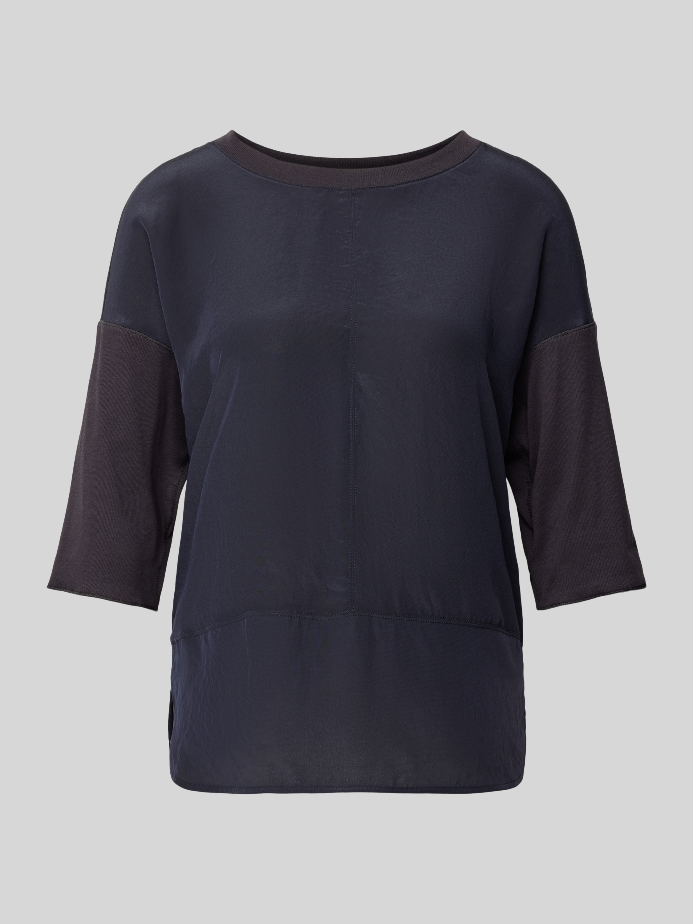 T-shirt met geribde ronde hals in marineblauw