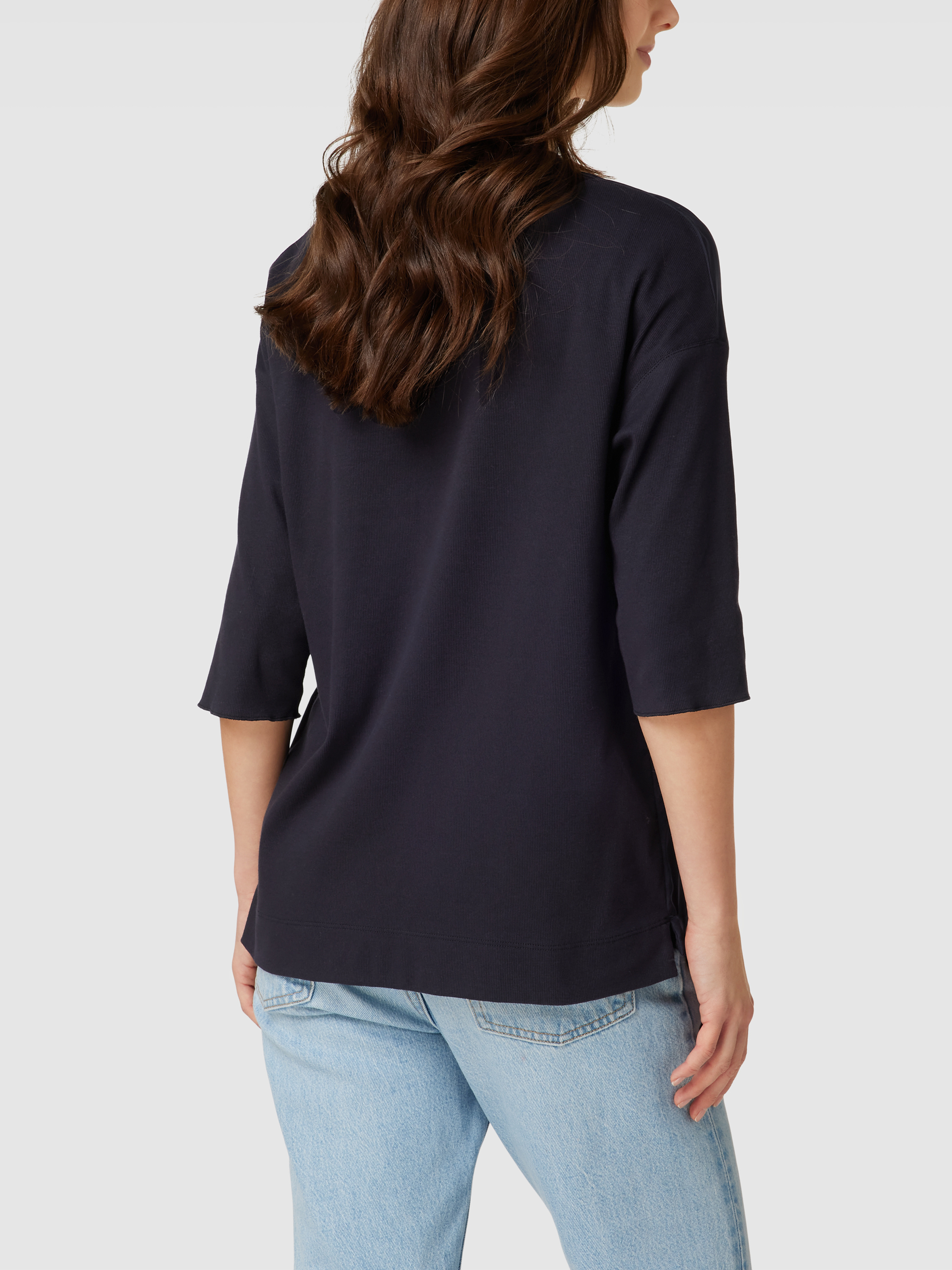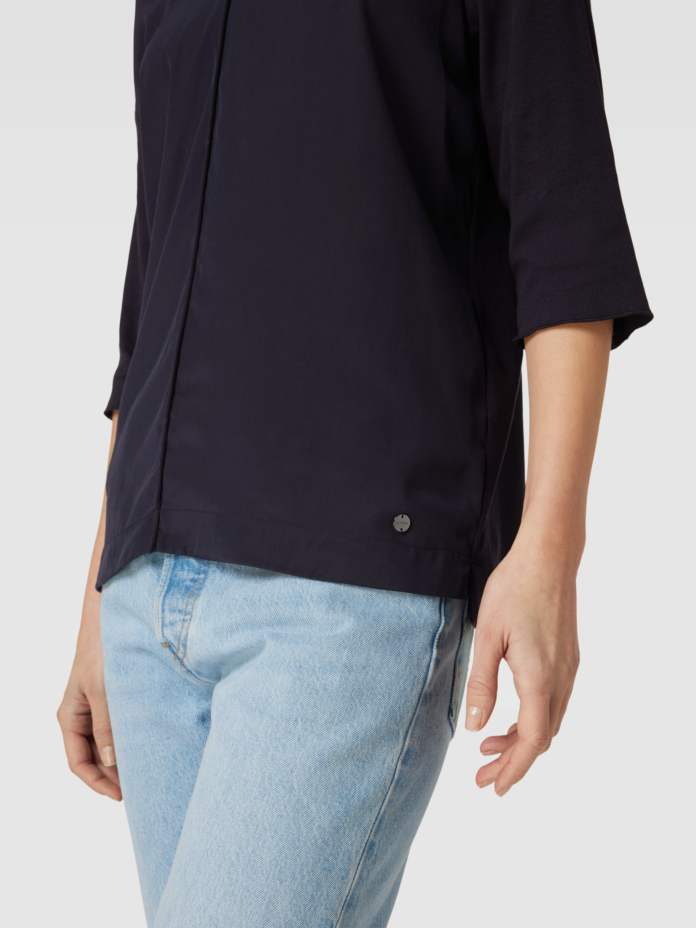 T-shirt met paspels in marineblauw