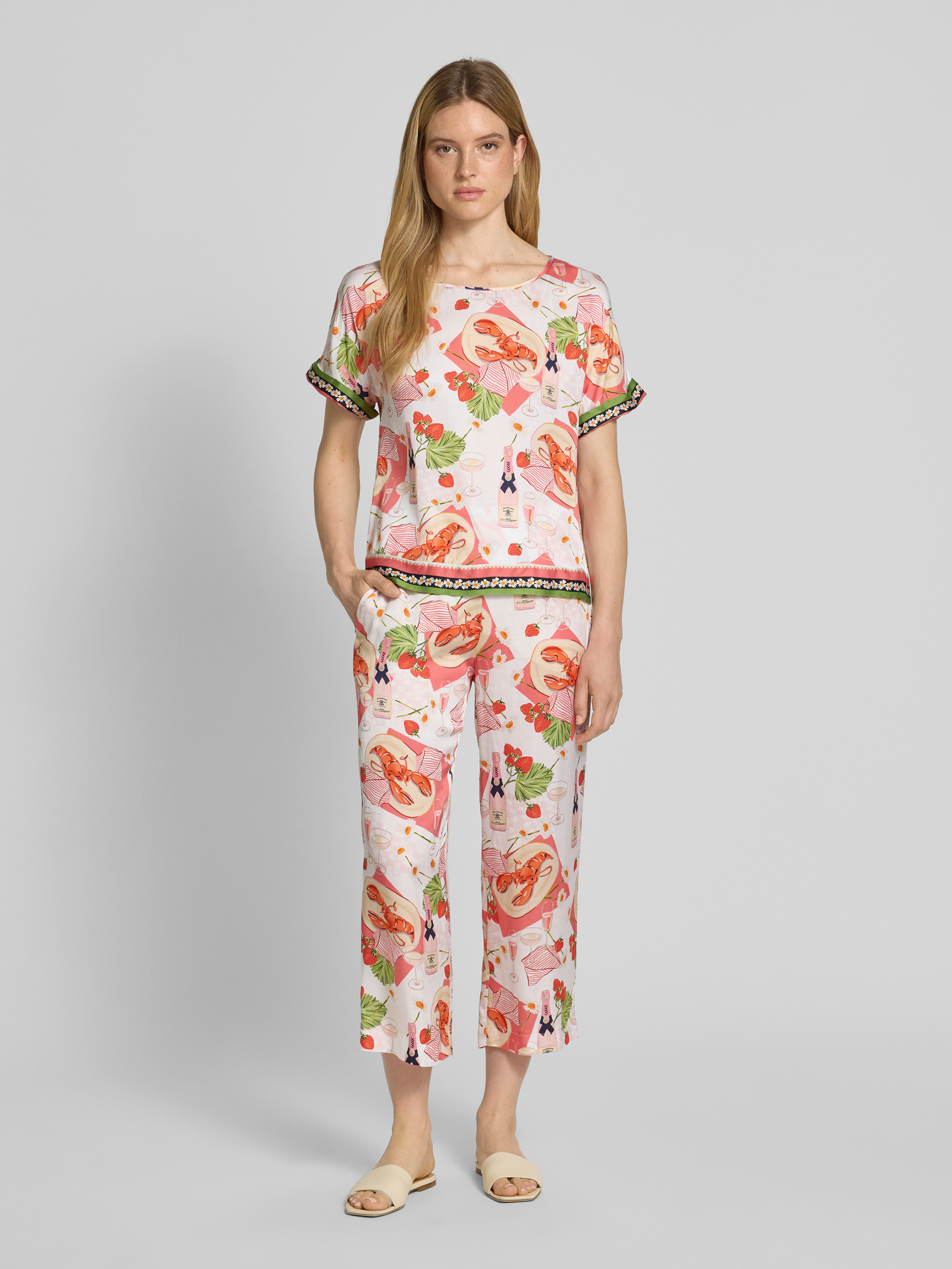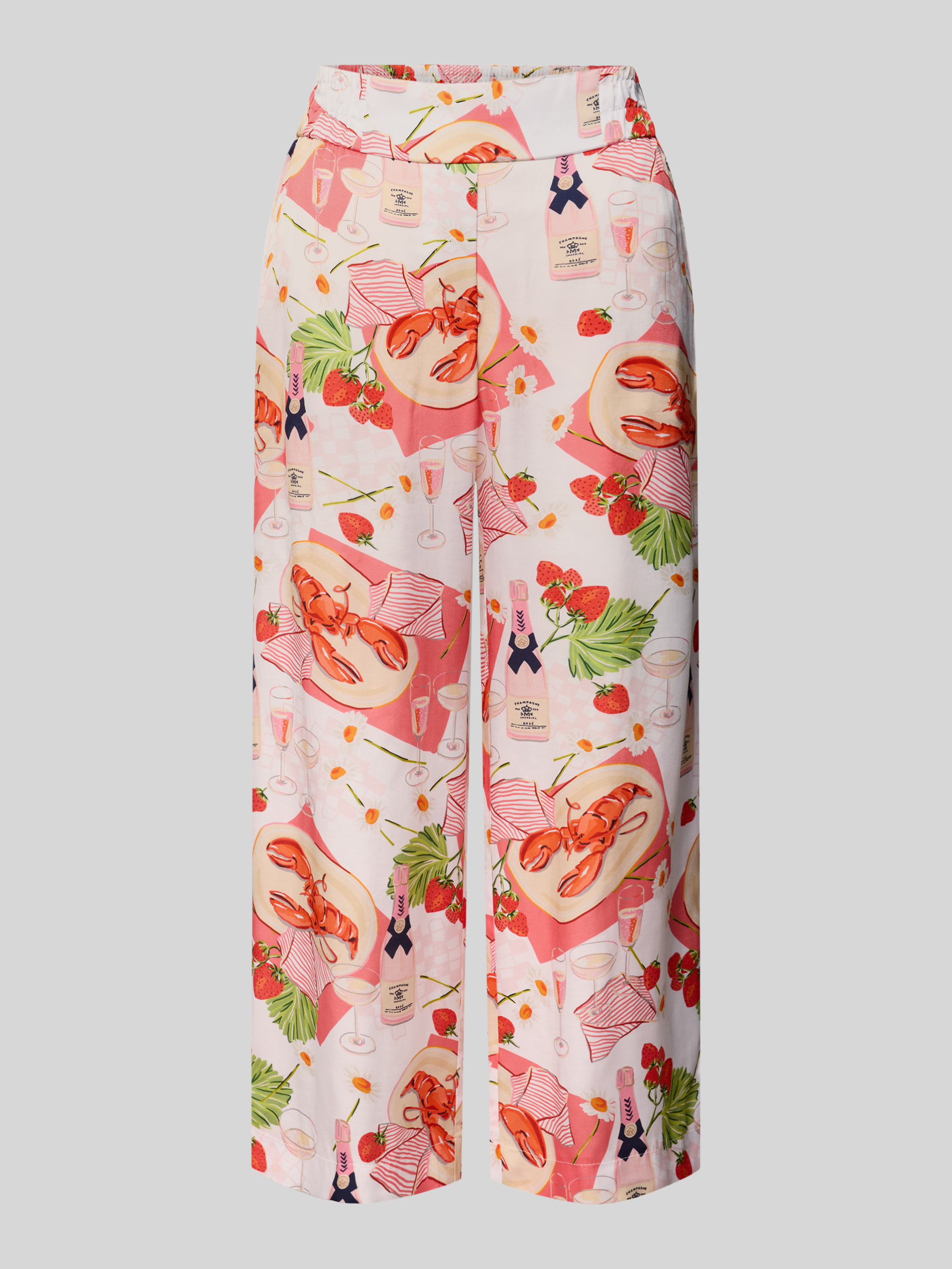 Marc CainWide fit stoffen broek met elastische band in koraal