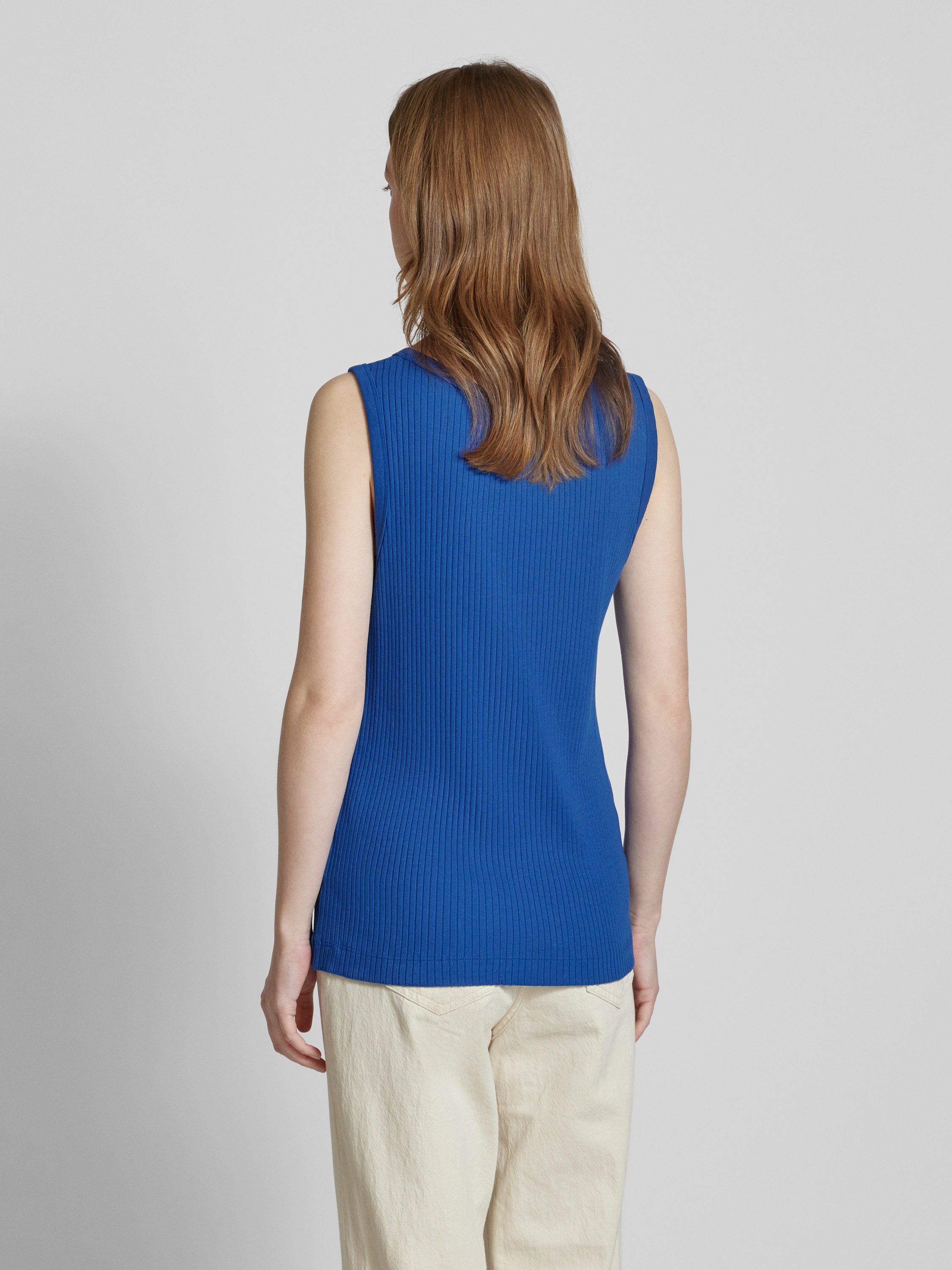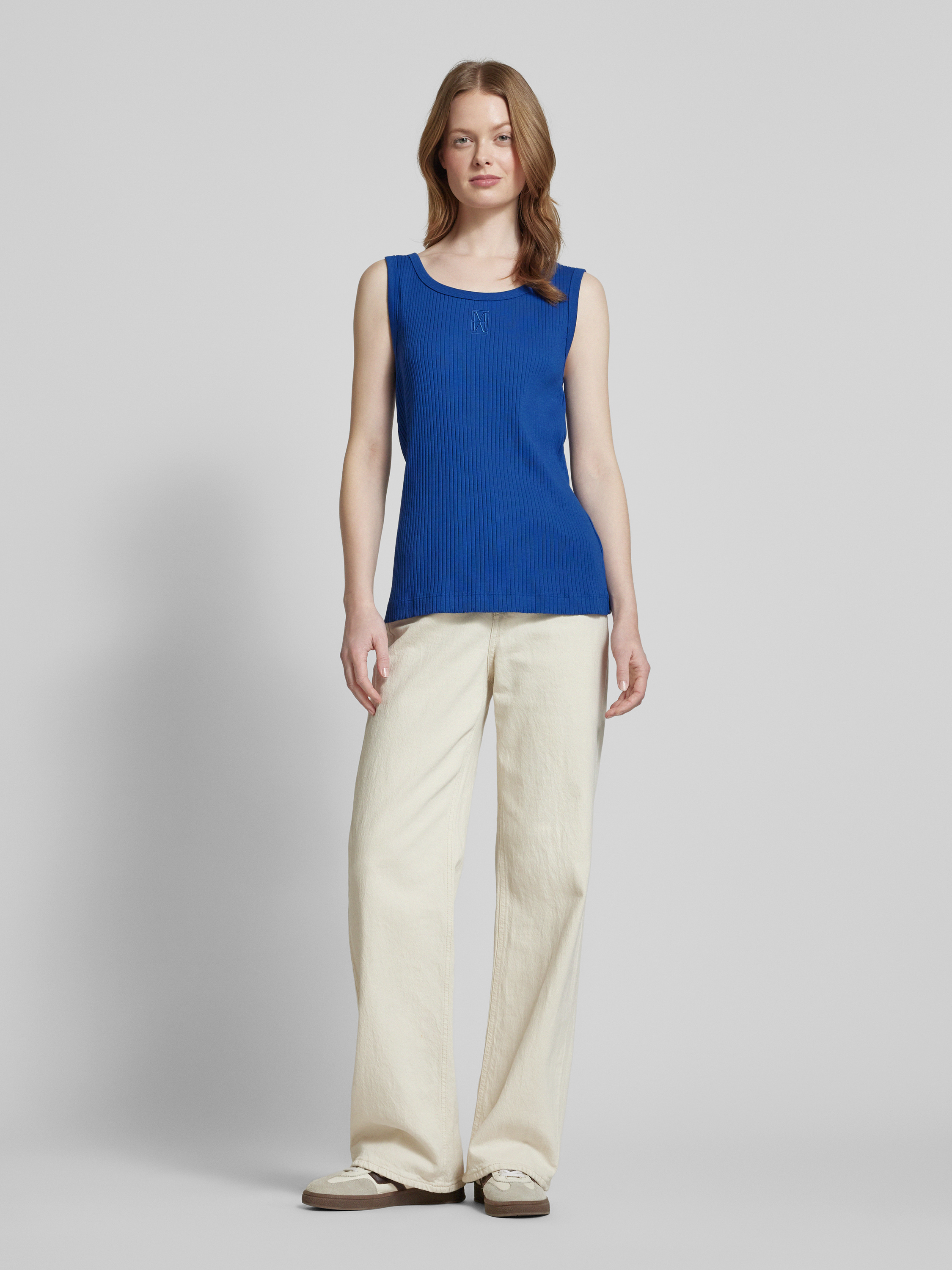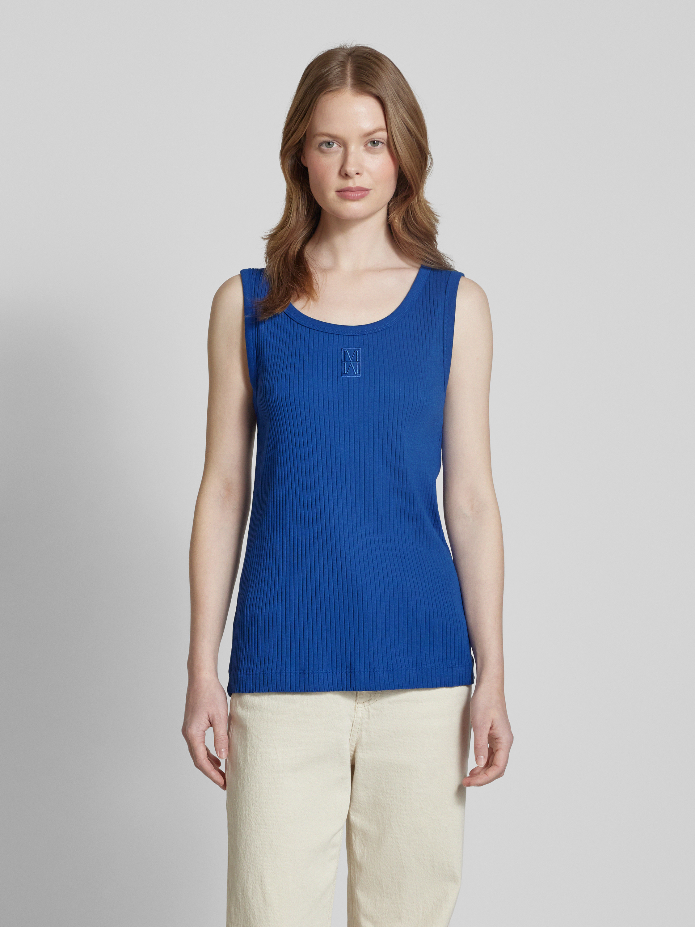 Marc O'PoloNauwsluitende tanktop van katoenmix met logostitching in koningsblauw