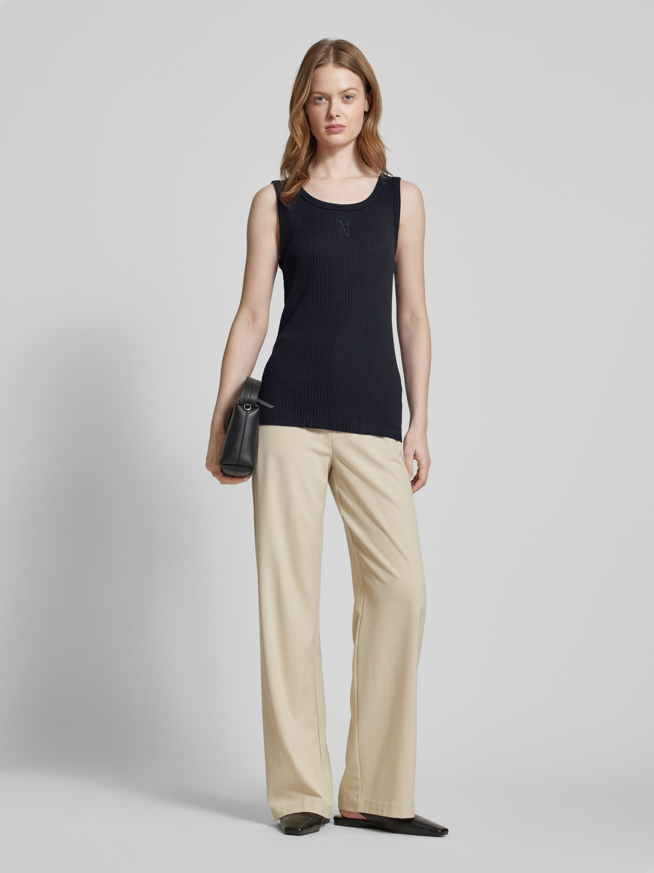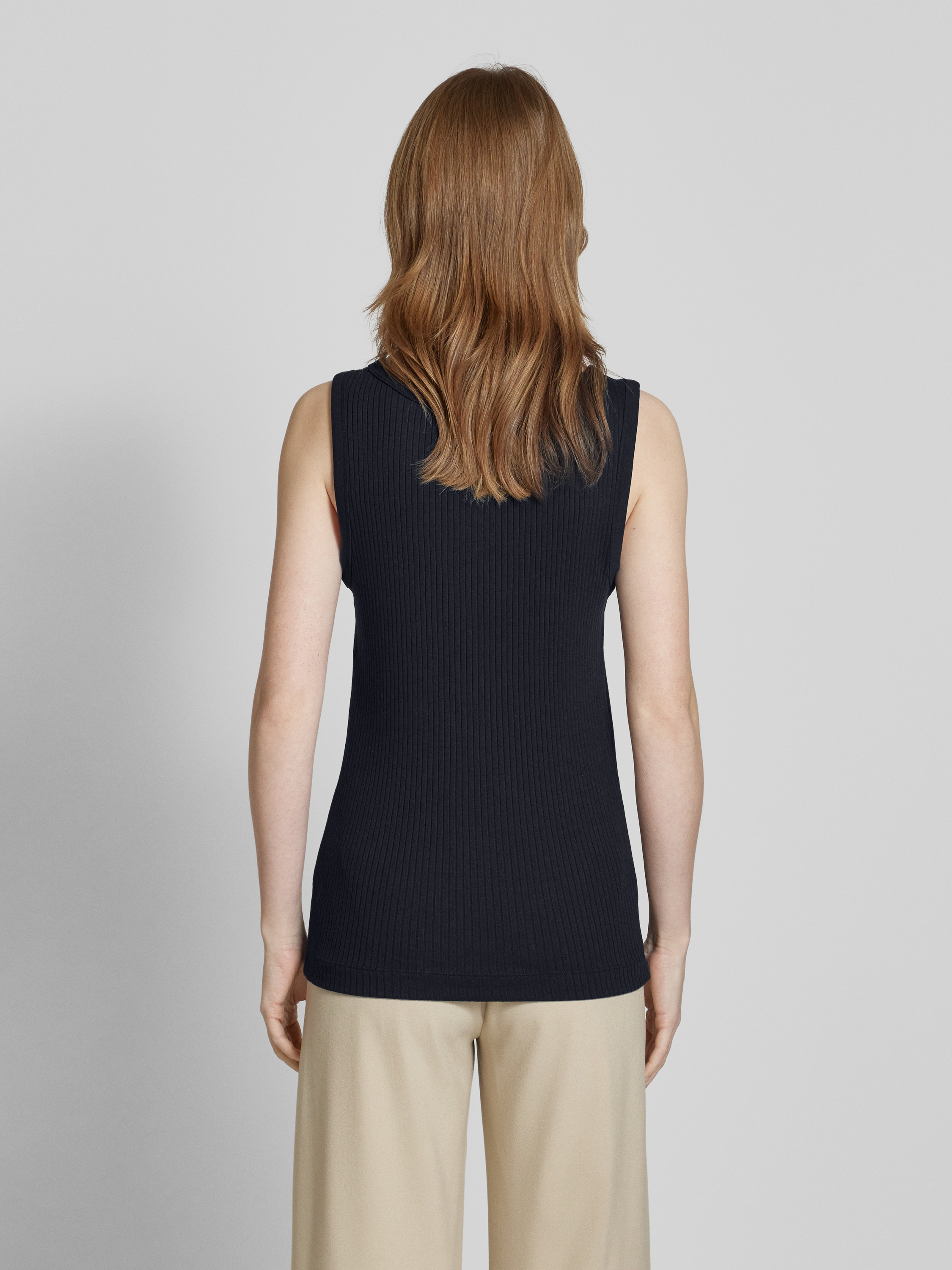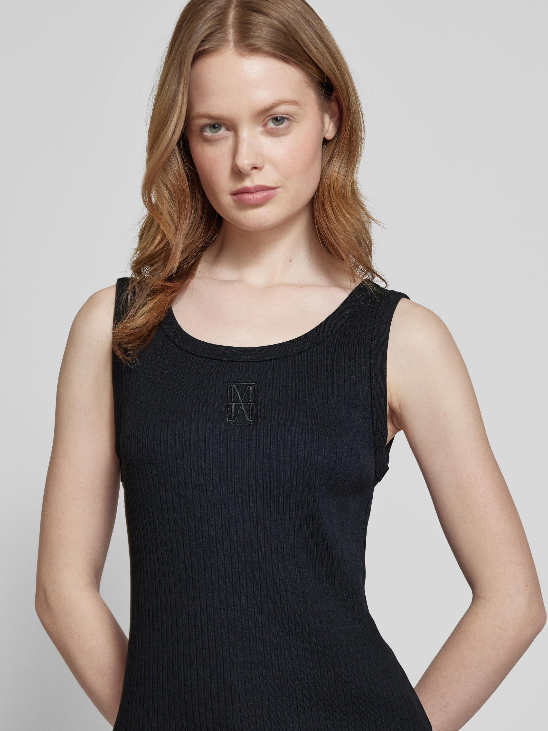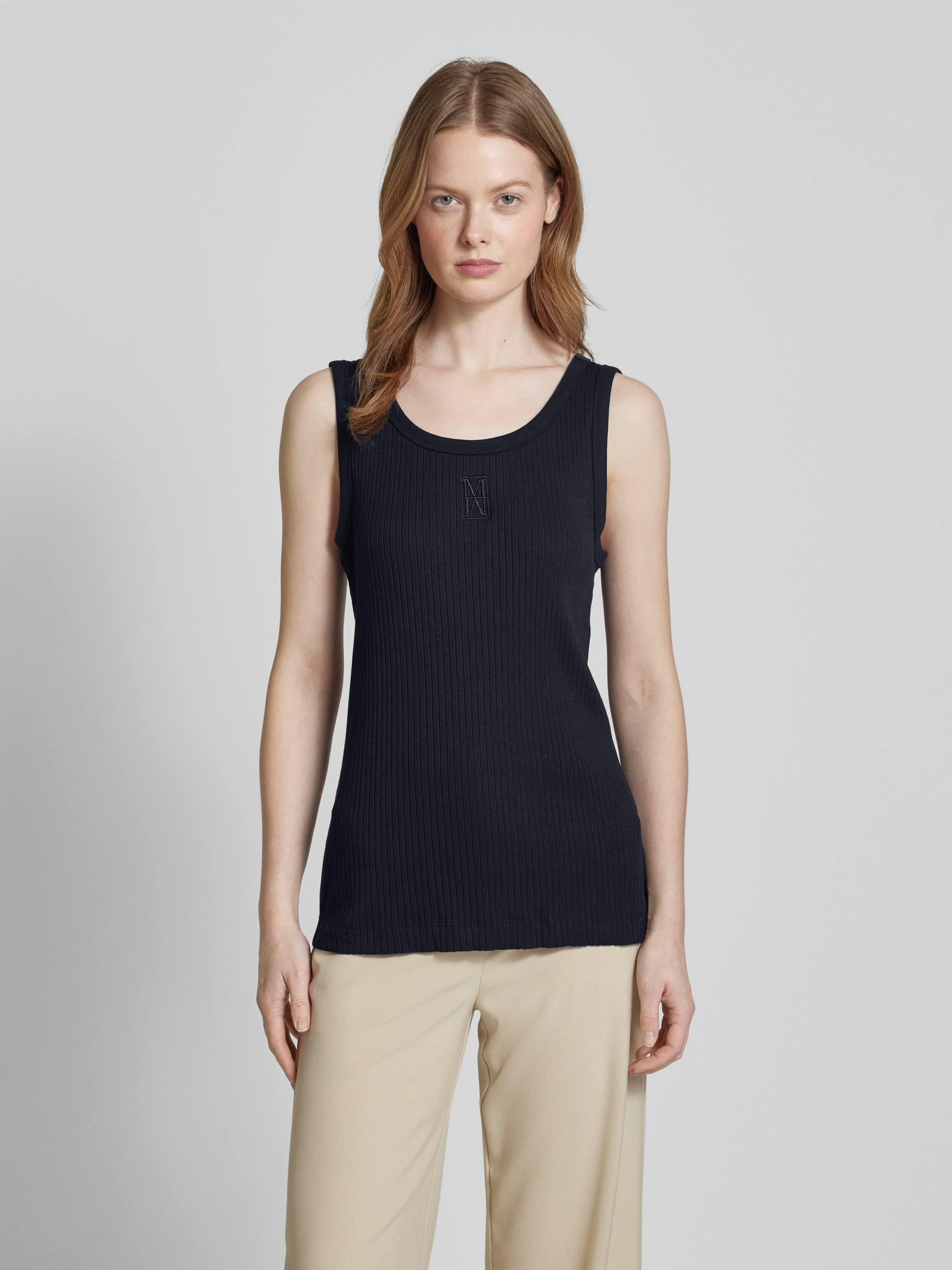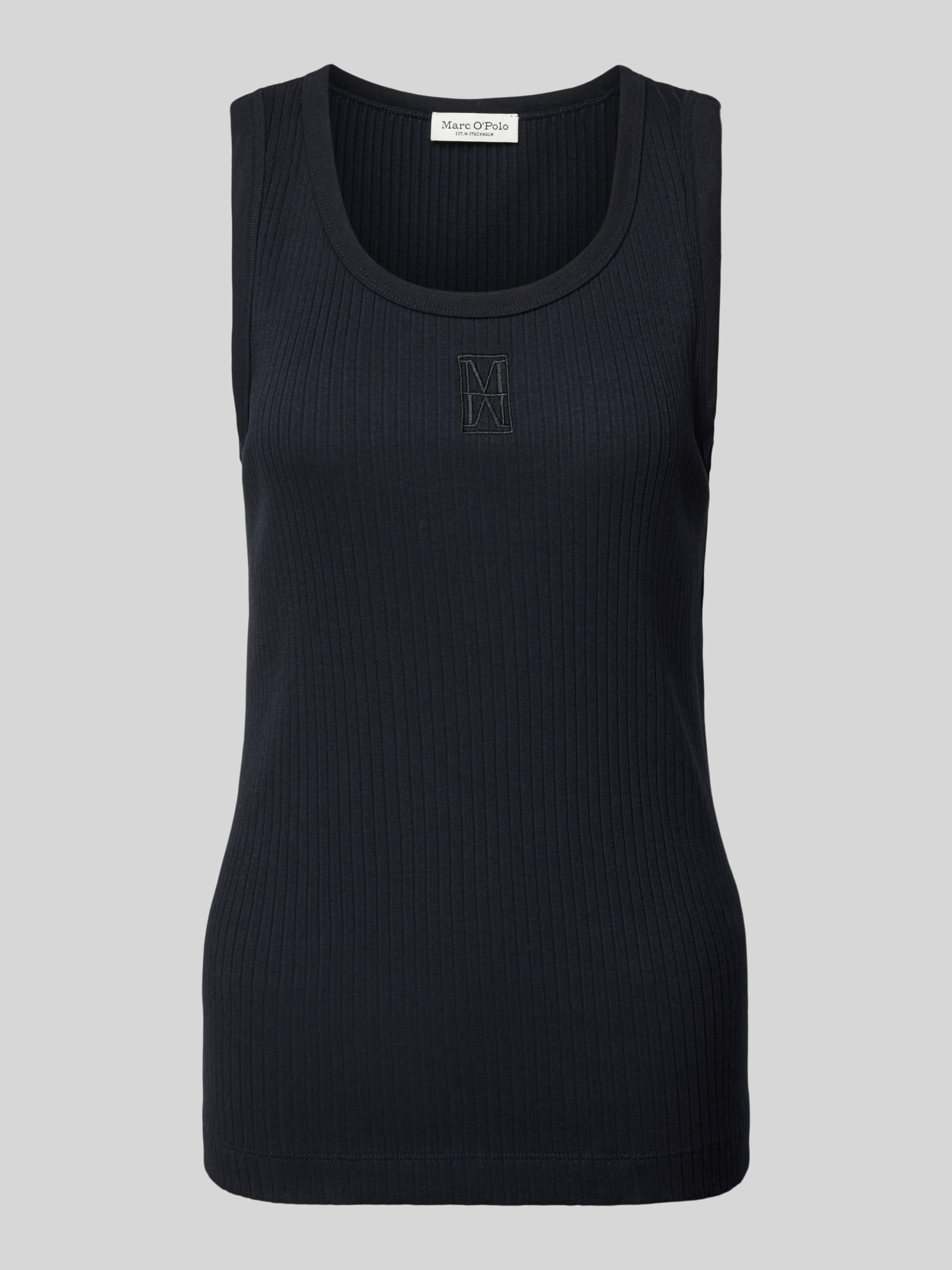 Marc O'PoloNauwsluitende tanktop van katoenmix met logostitching in marineblauw