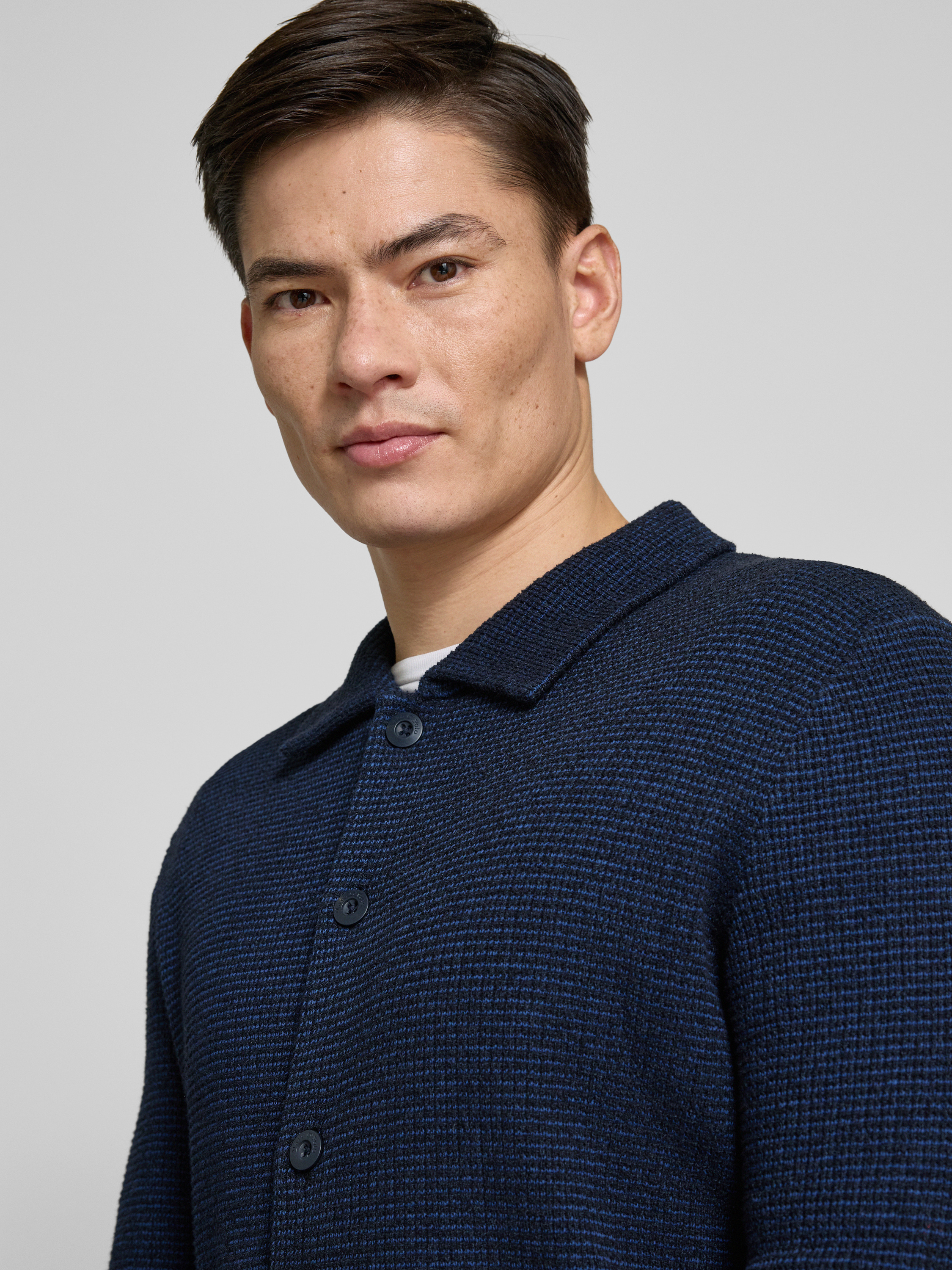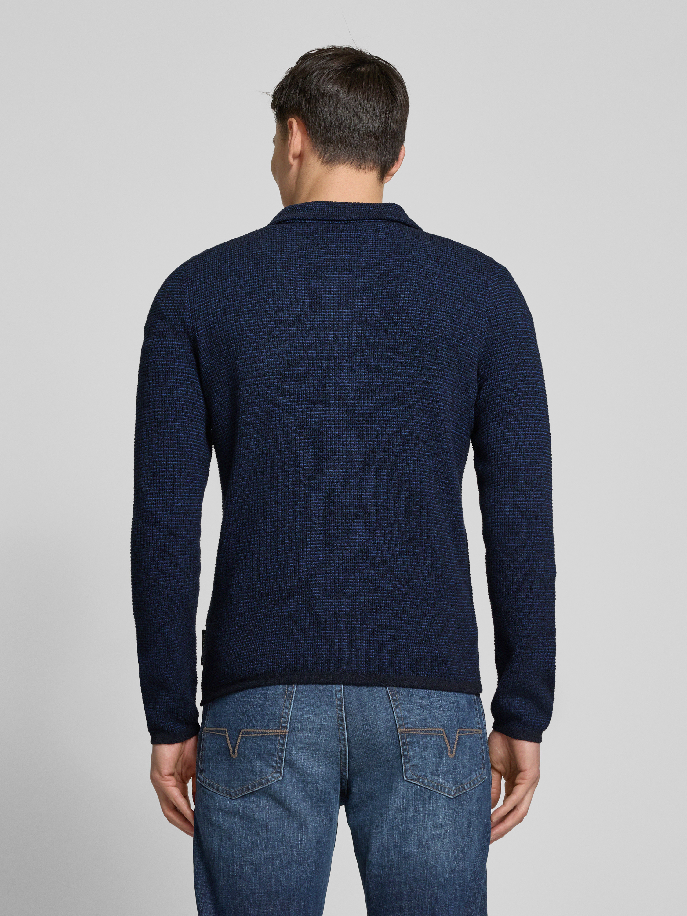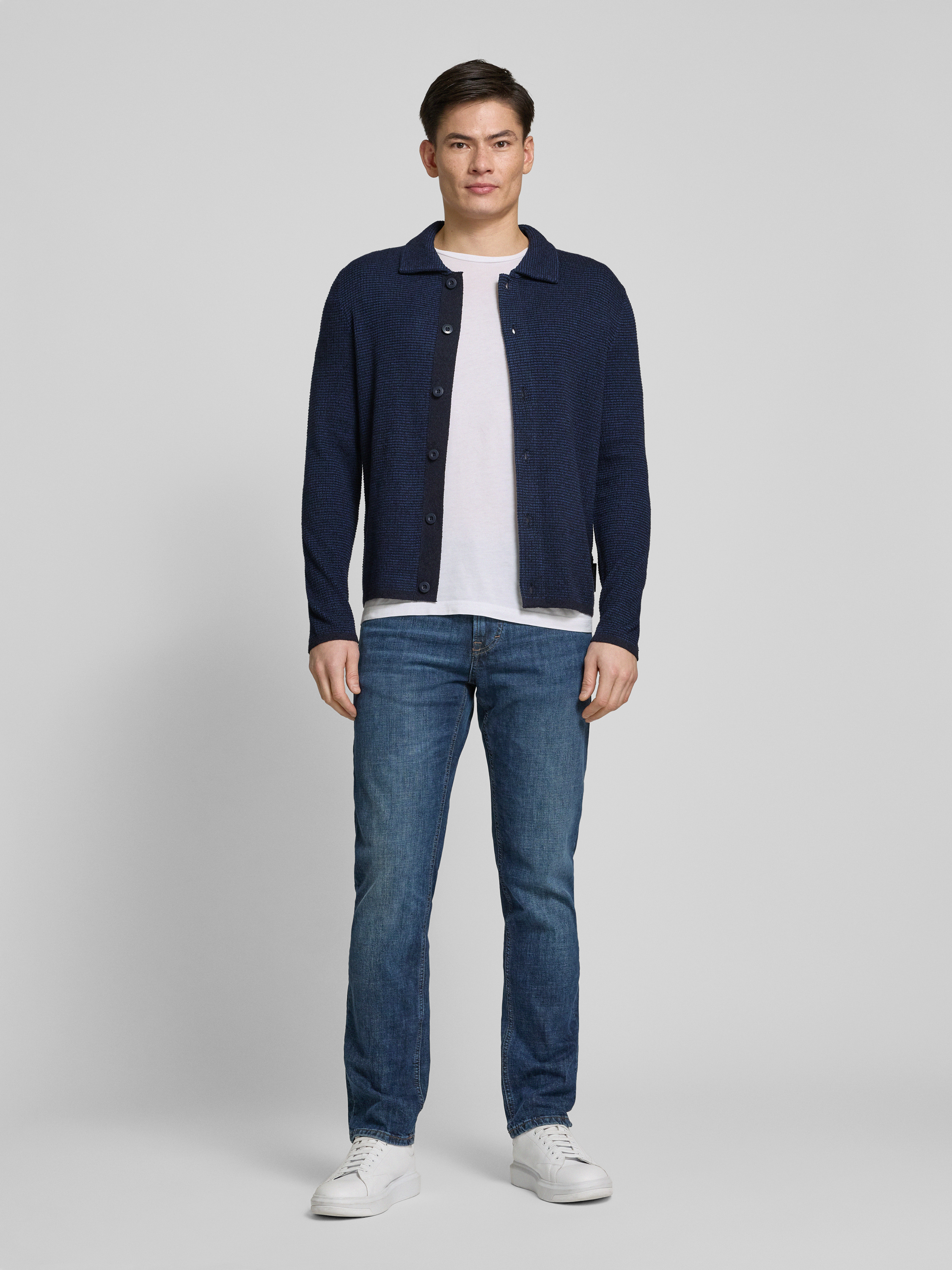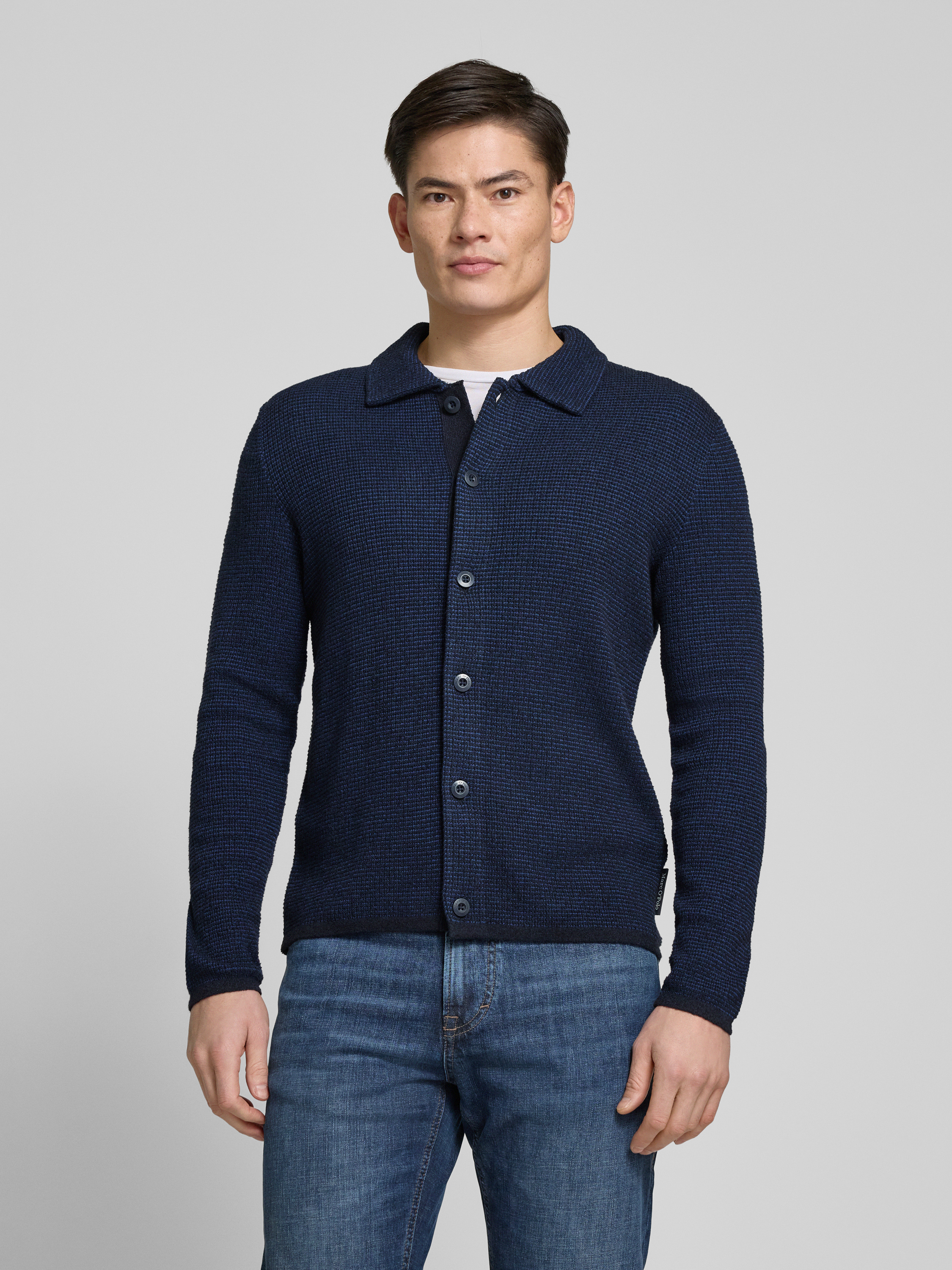 Marc O'PoloRegular fit gebreid jack van gestructureerde katoenmix in marineblauw