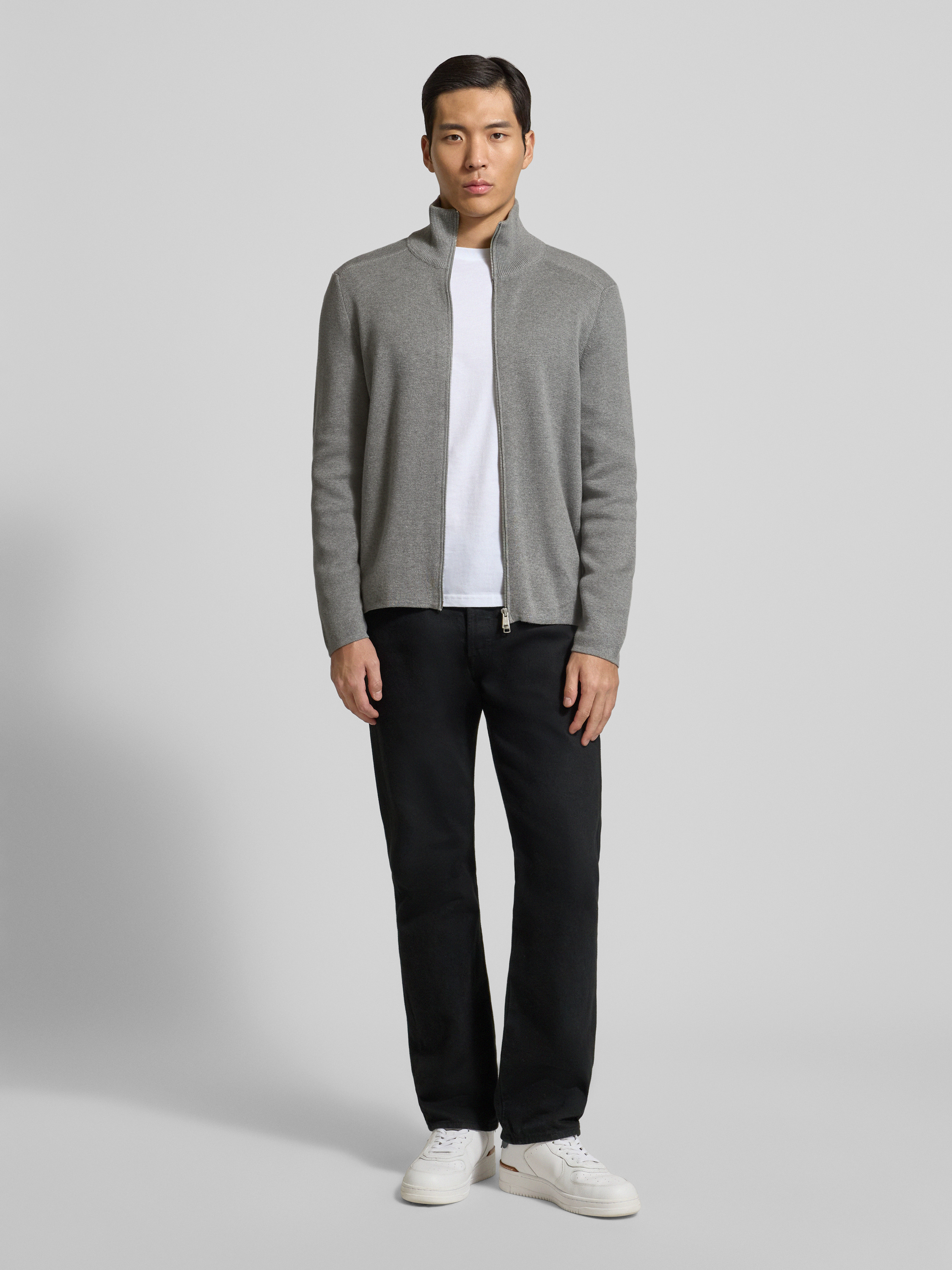 Marc O'PoloRegular fit gebreid jack van puur katoen in donkergrijs