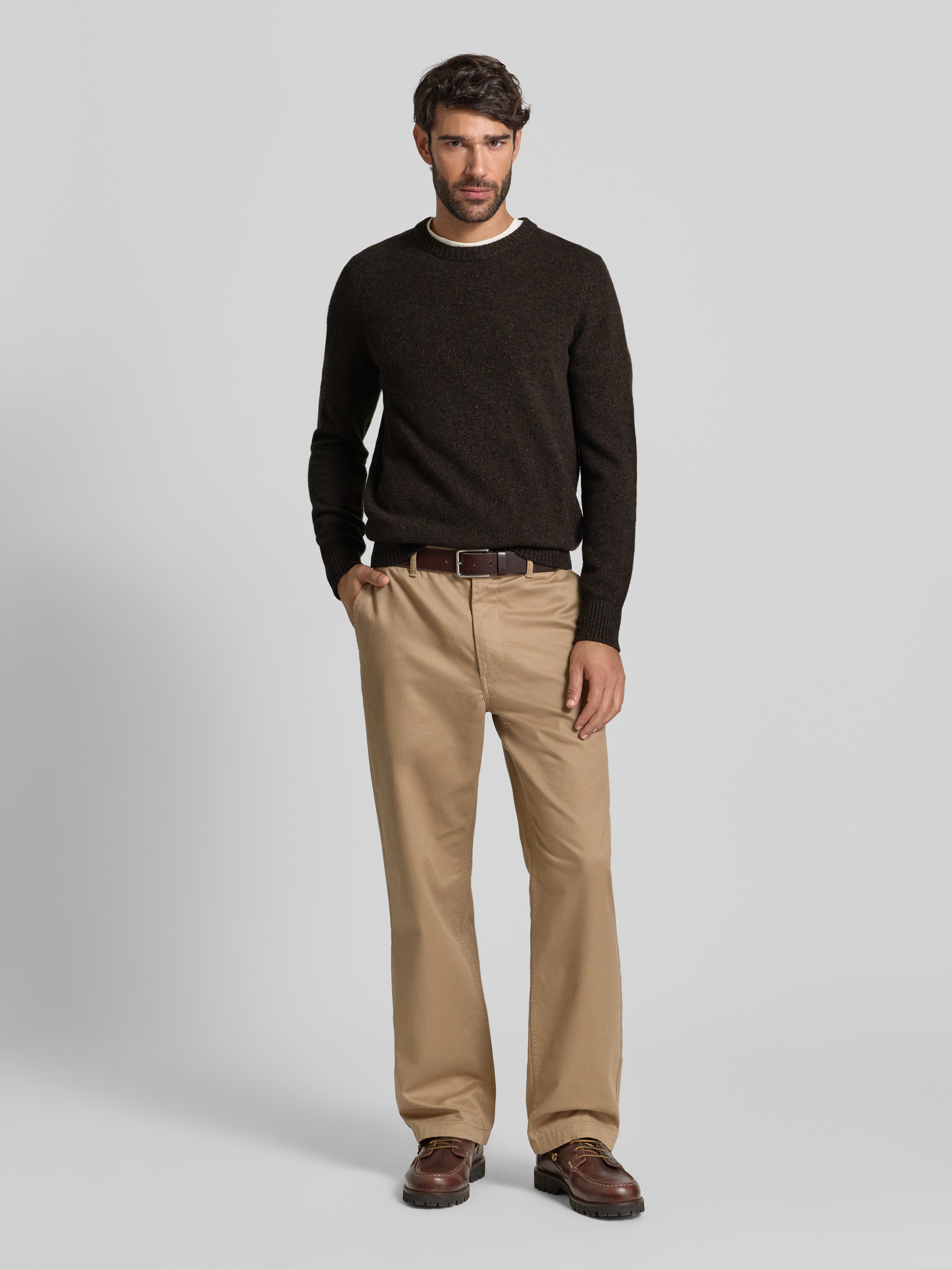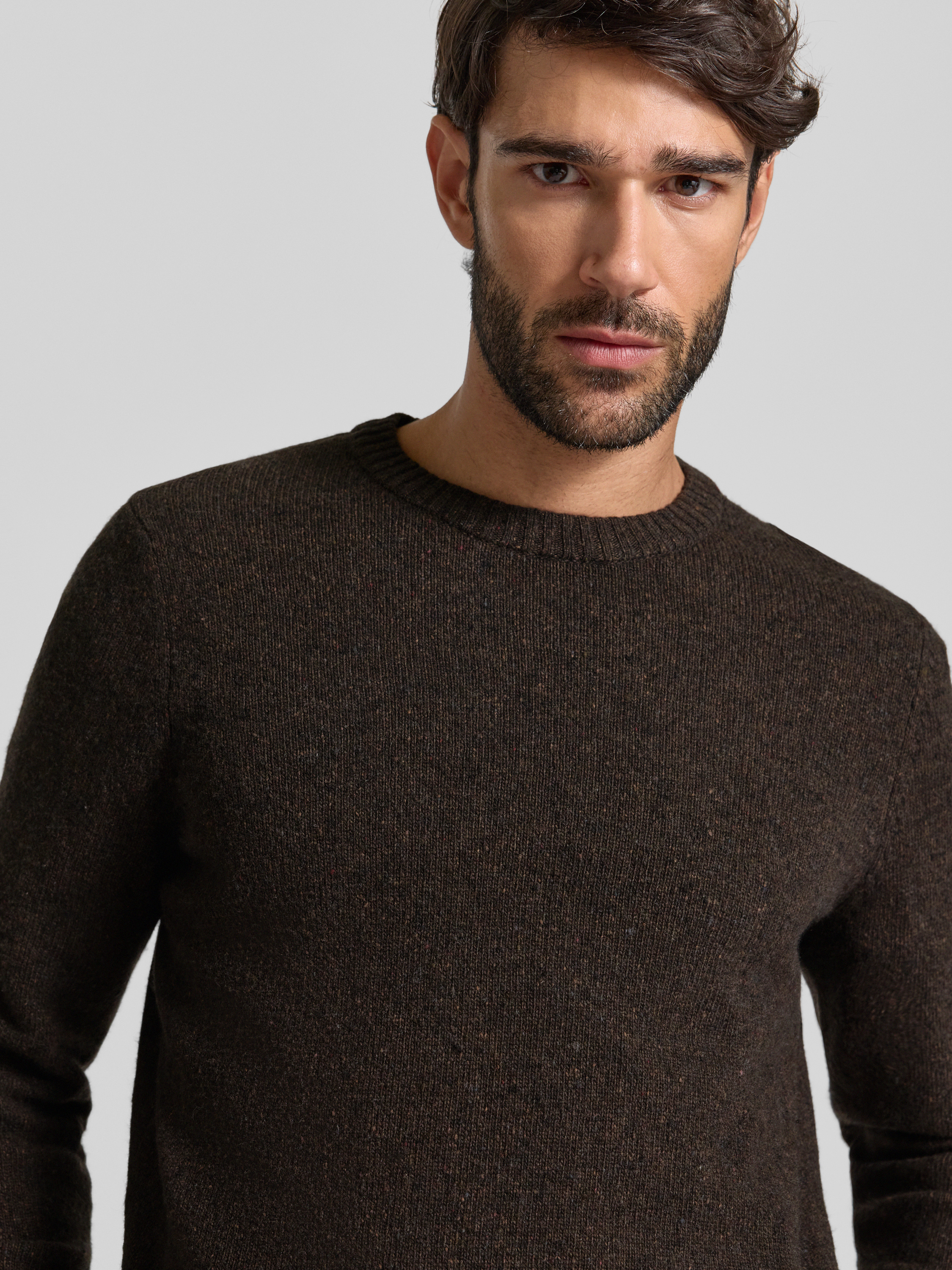 Marc O'PoloRegular fit gebreide pullover van wolmix in donkerbruin