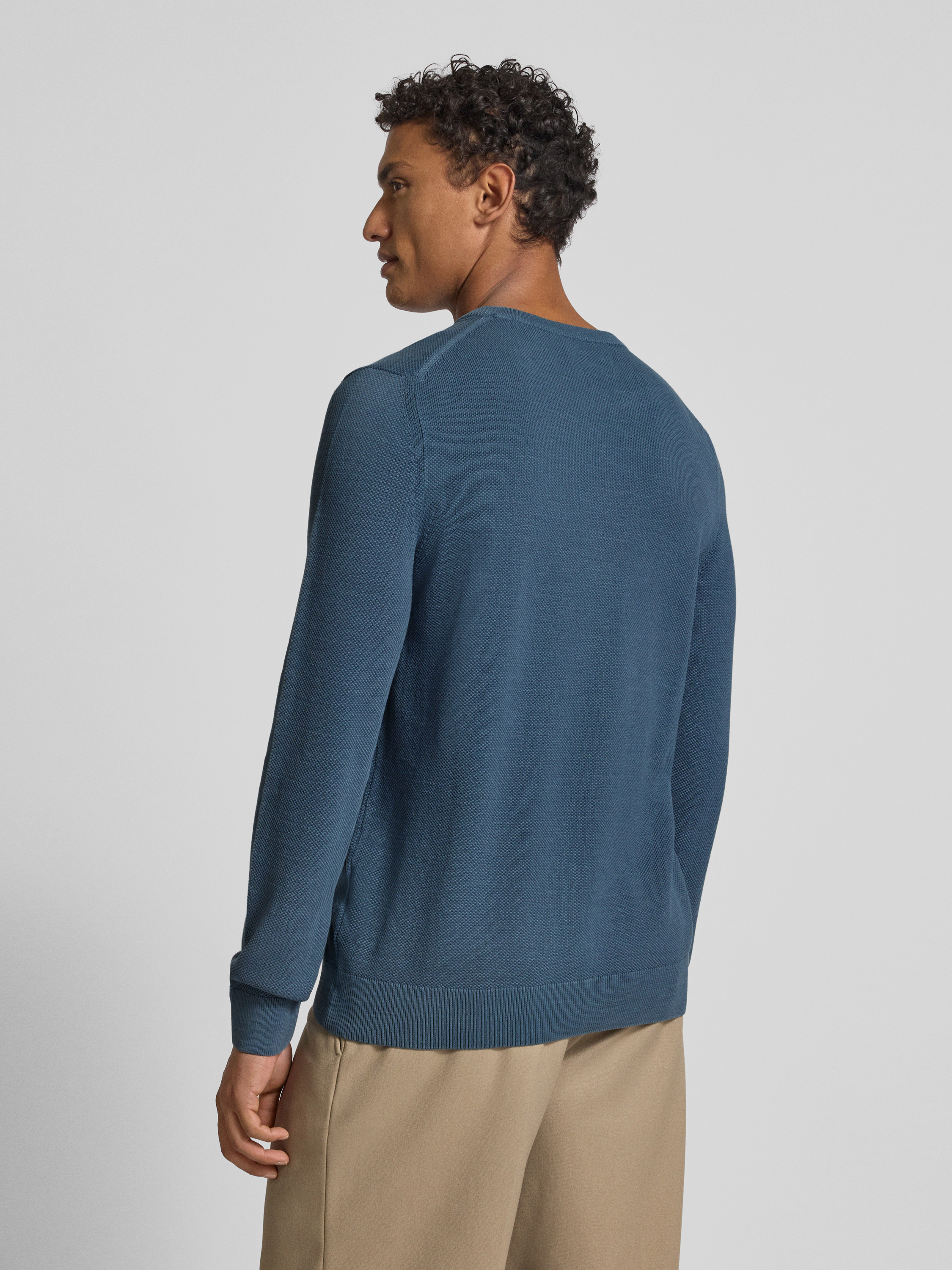 Marc O'PoloRegular fit gebreide pullover van zuiver katoen in jeansblauw