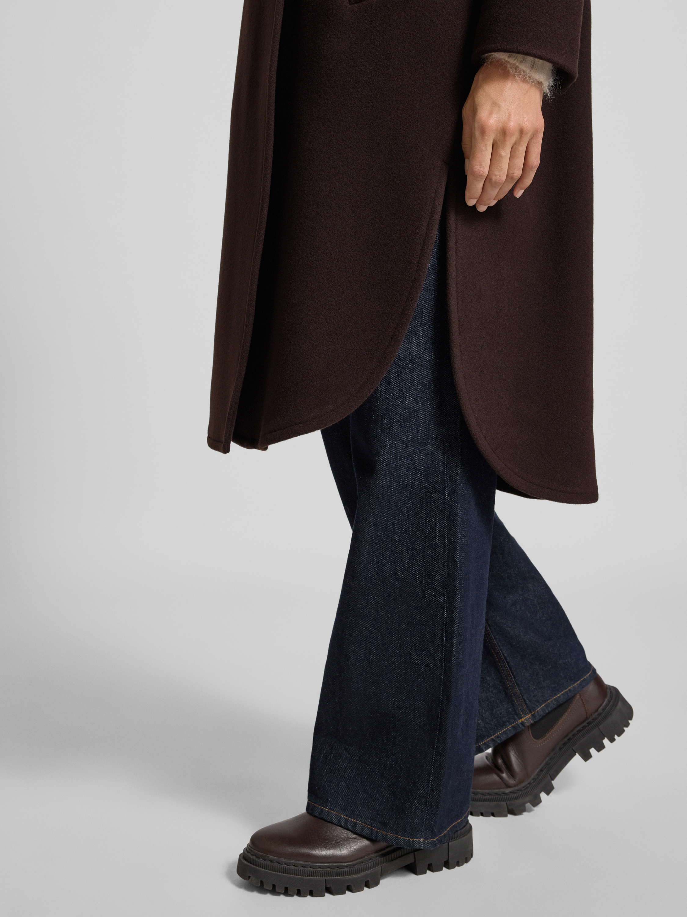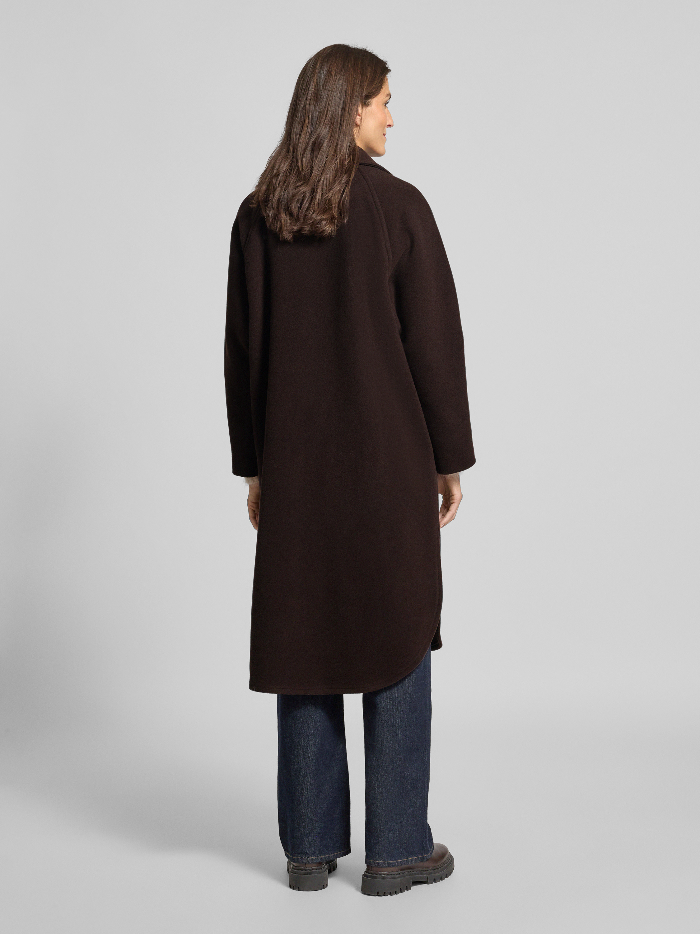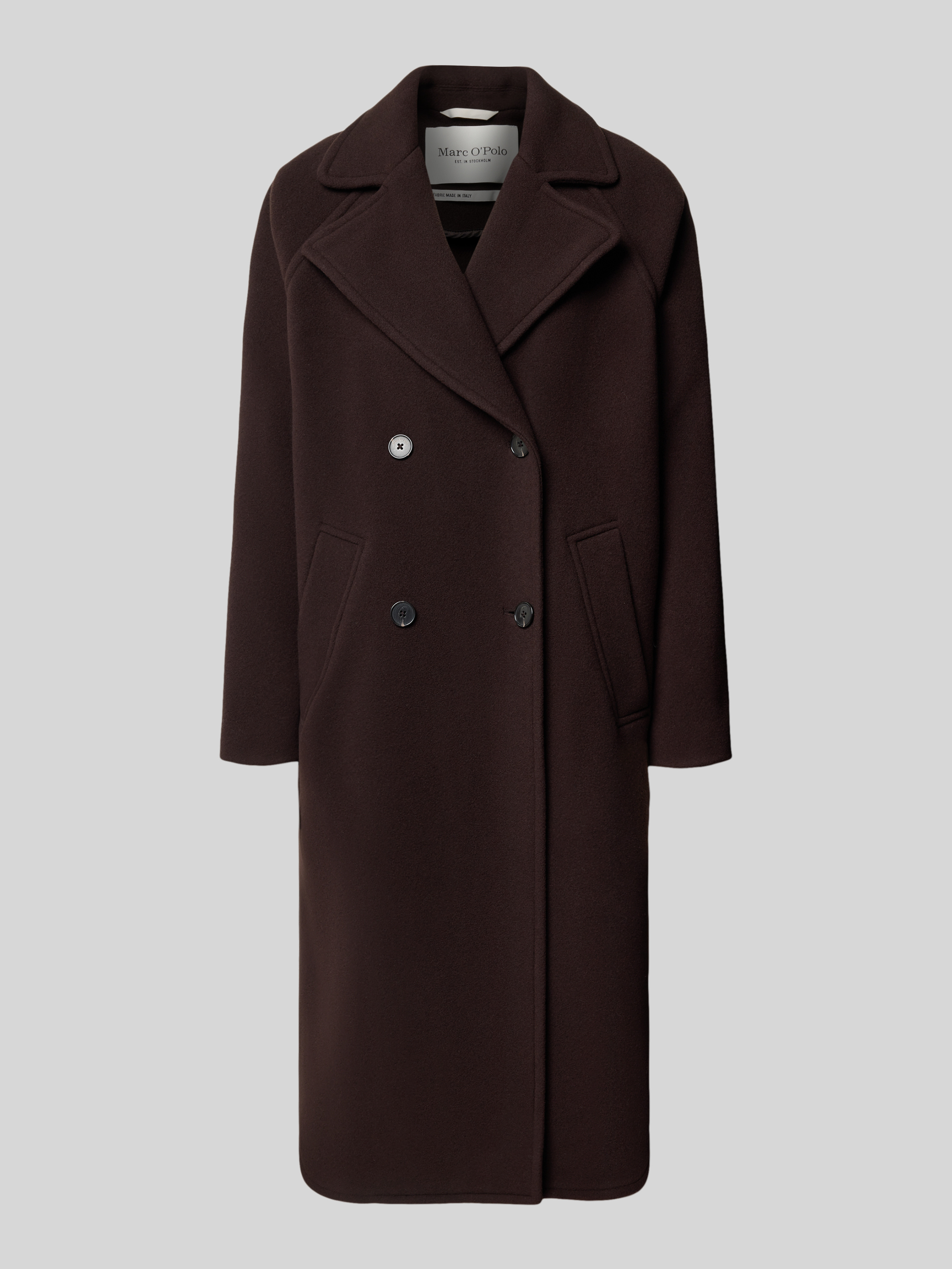 Marc O'PoloRegular fit lange wollen jas met dubbele knoopsluiting in donkerbruin