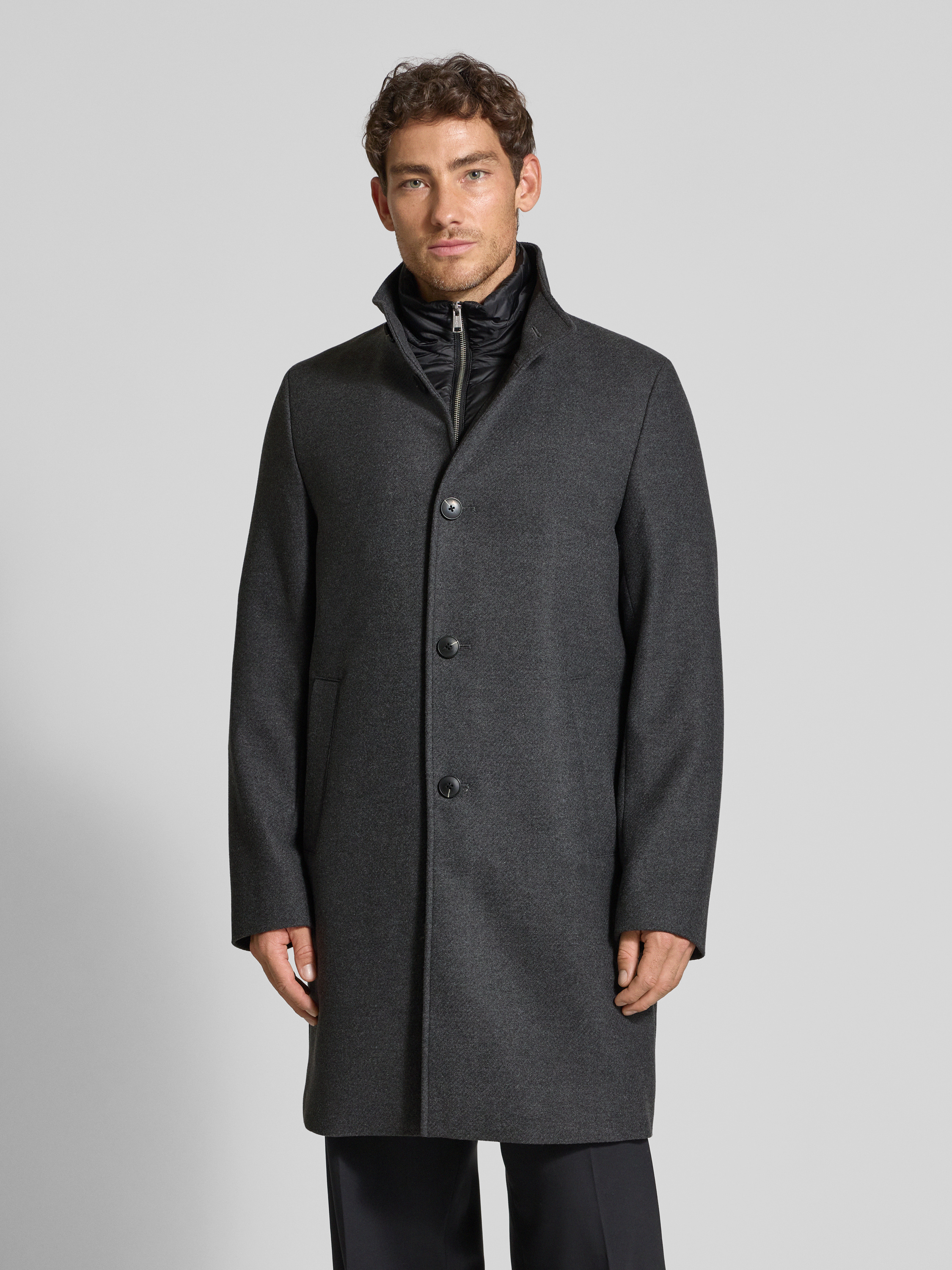 Marc O'PoloRegular fit lange wollen jas met gewatteerde inzet in antraciet