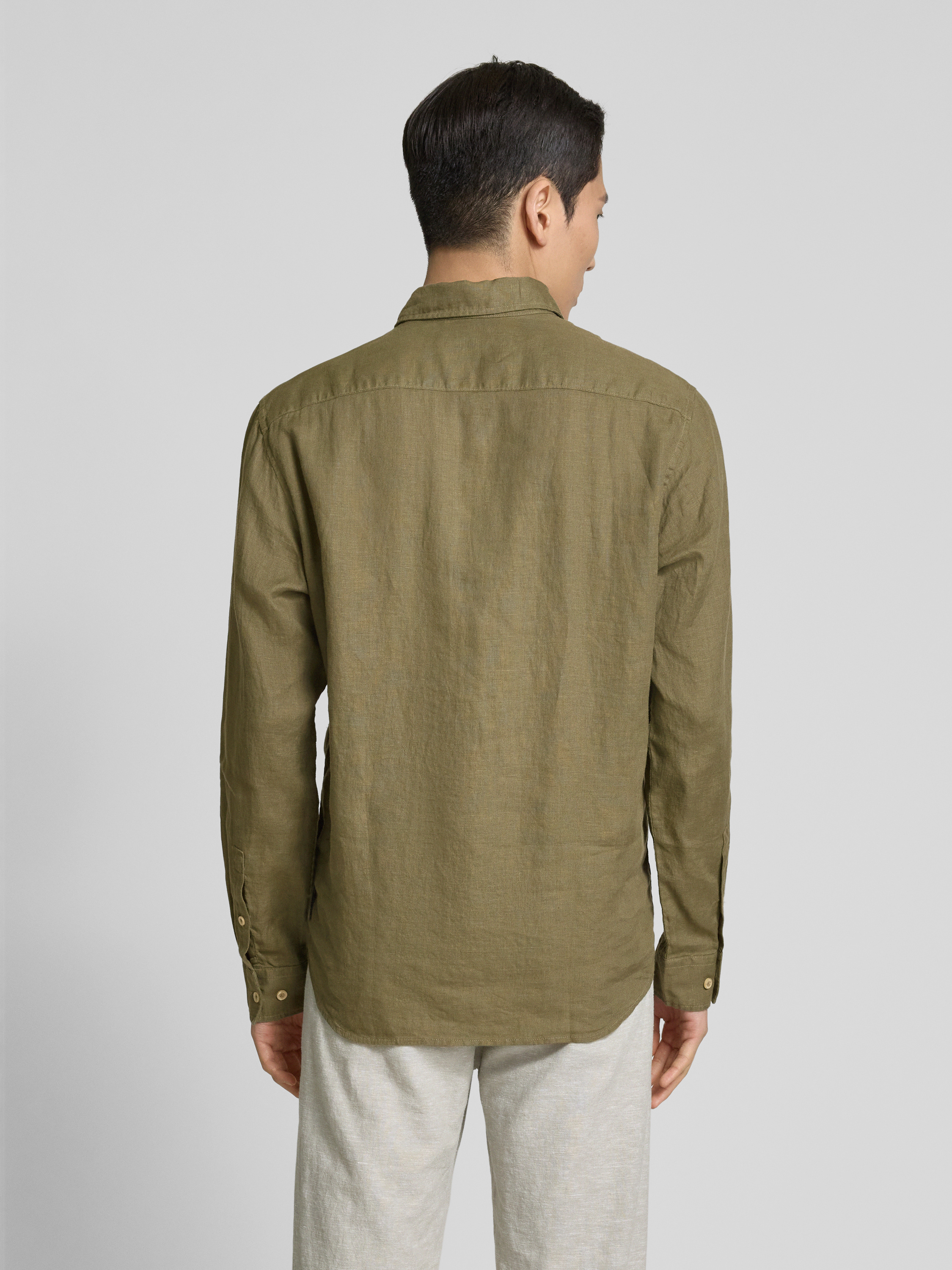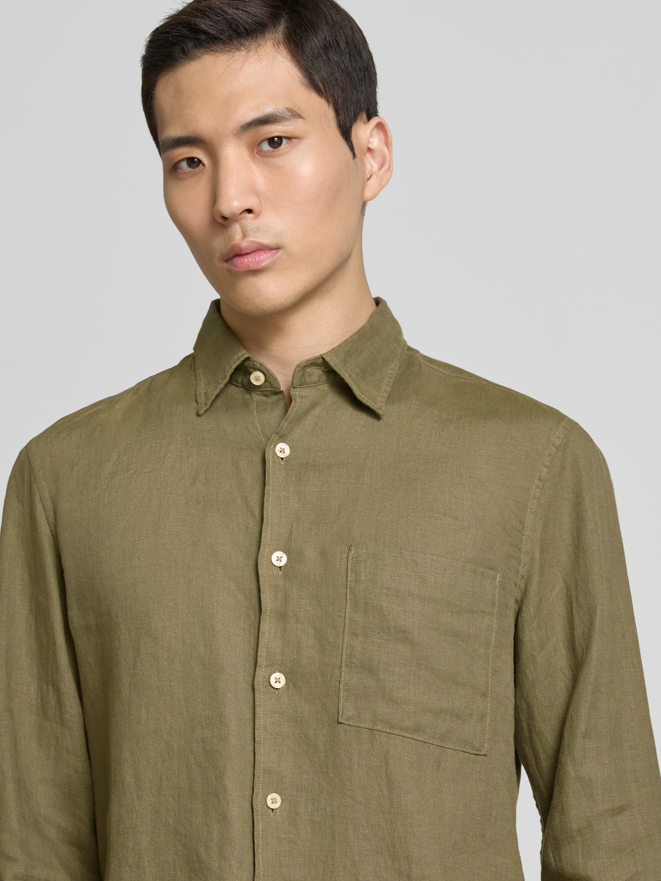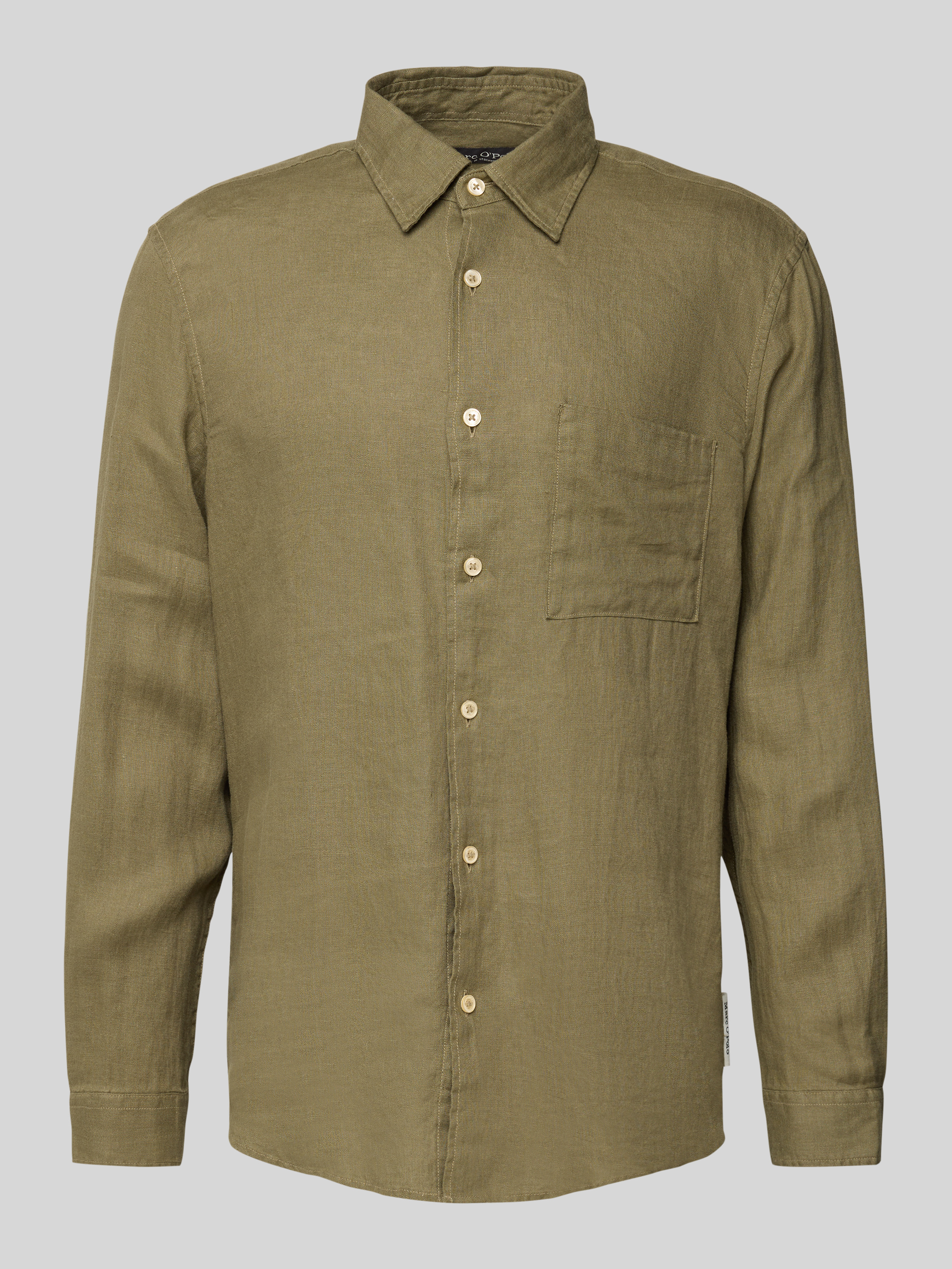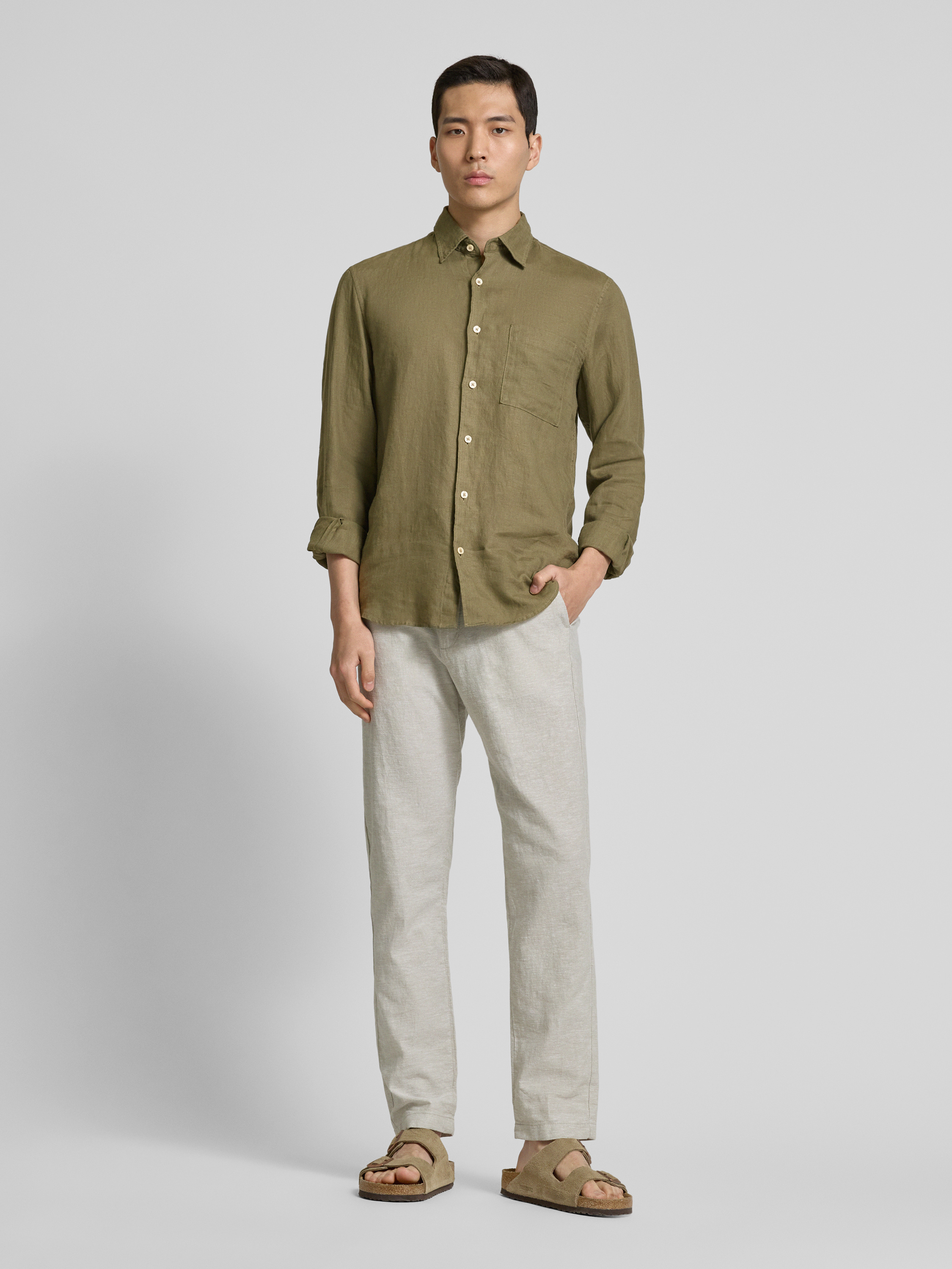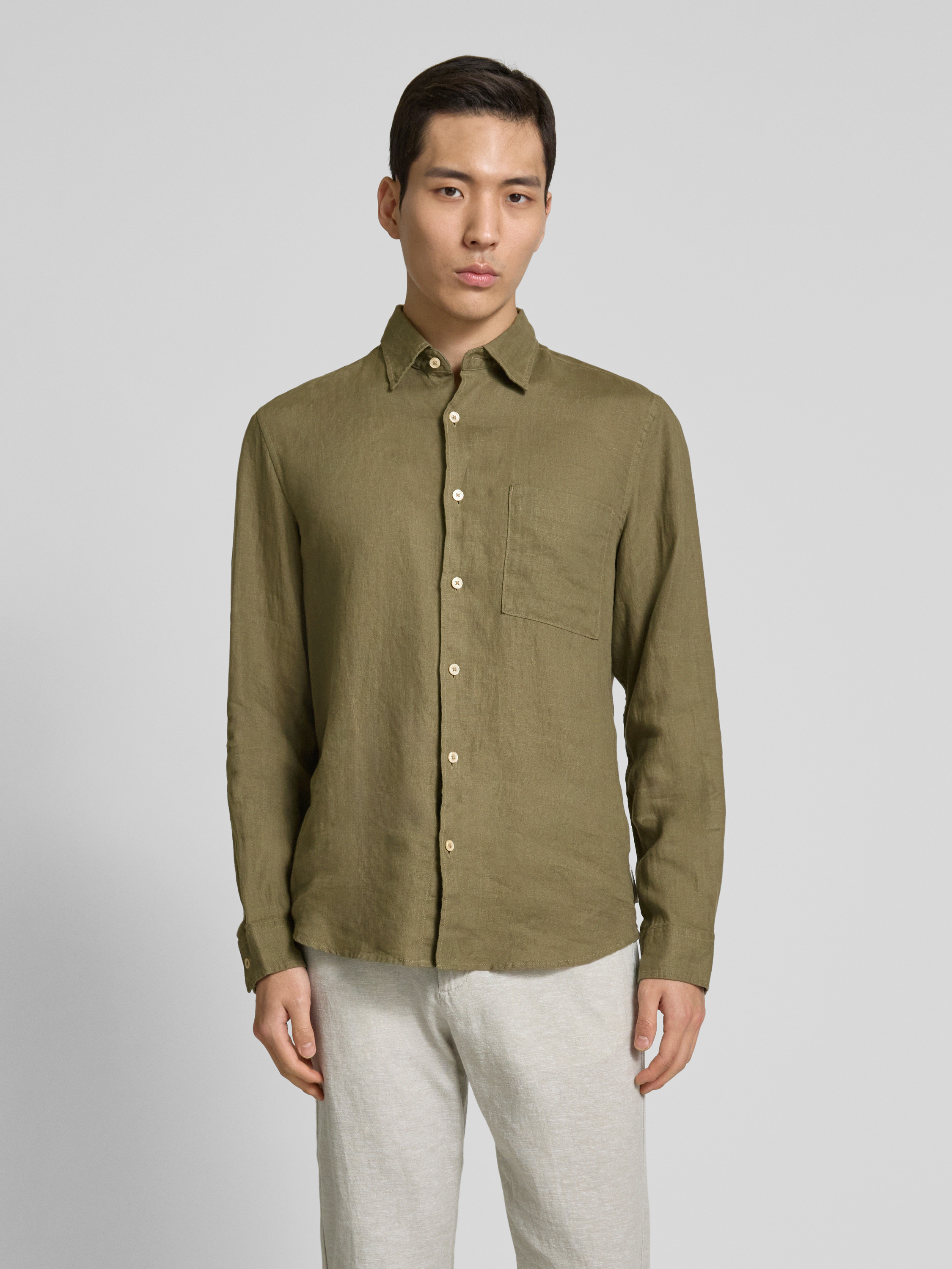 Regular fit linnen overhemd met opgestikte borstzak in olijfgroen