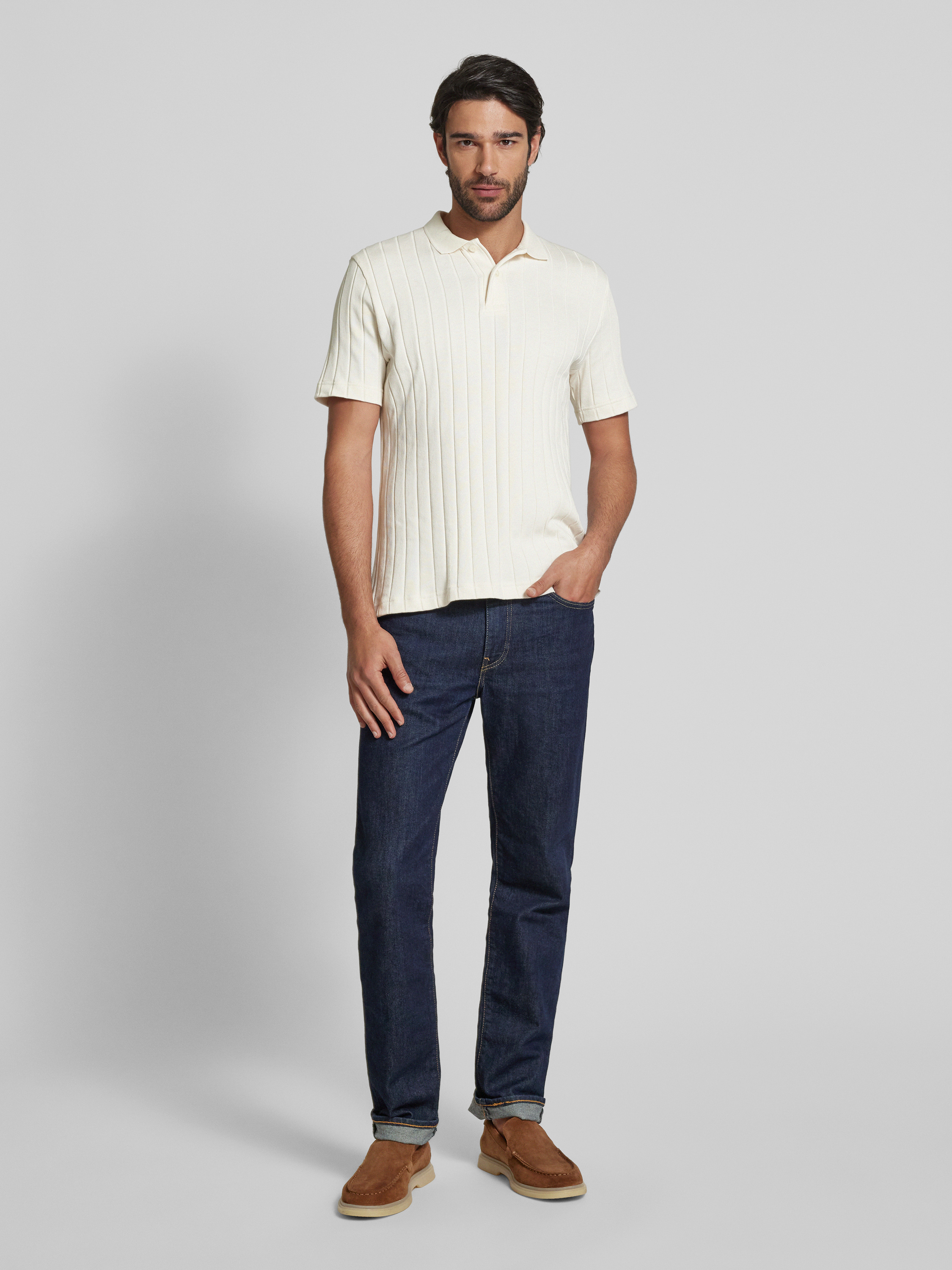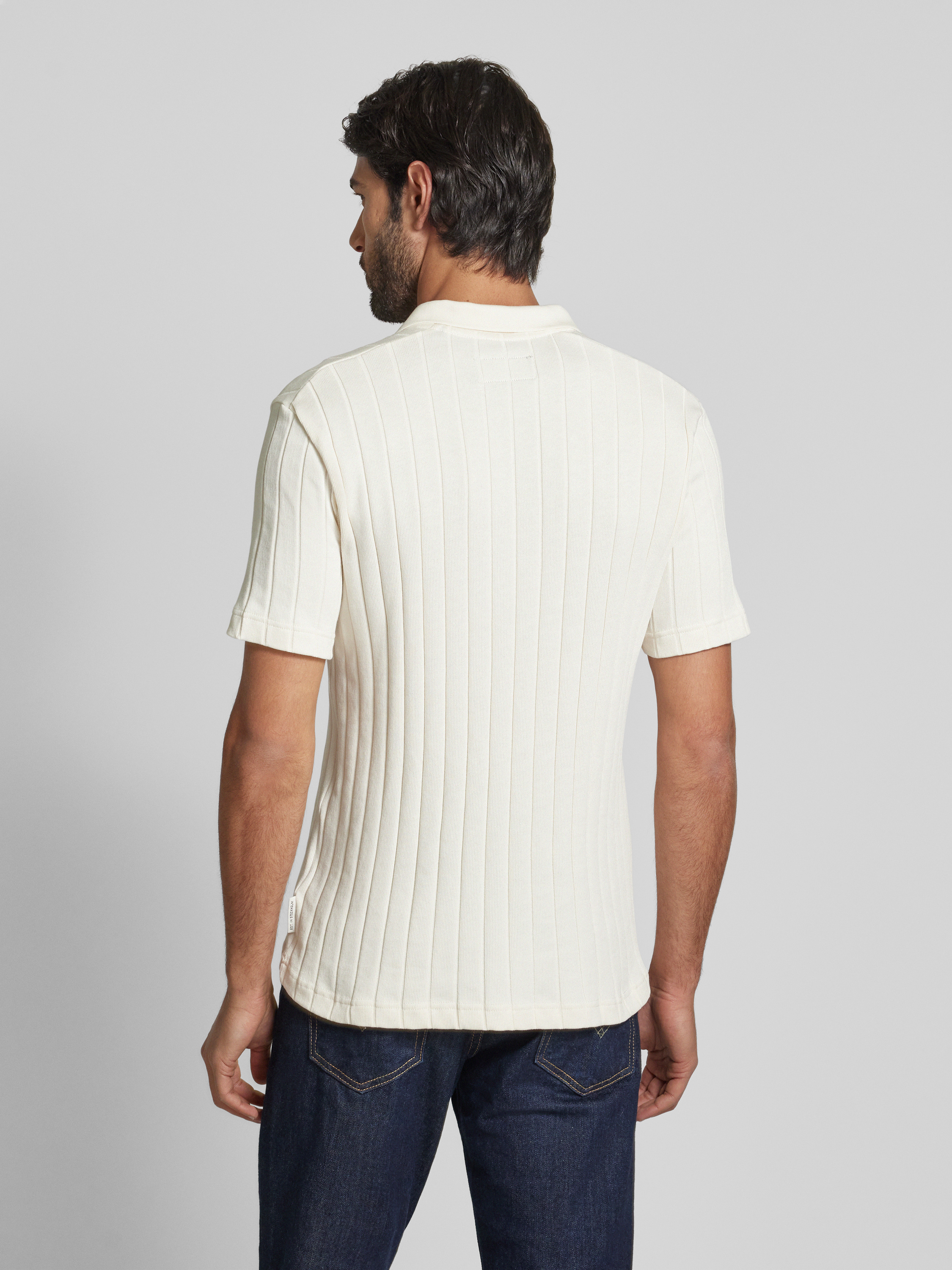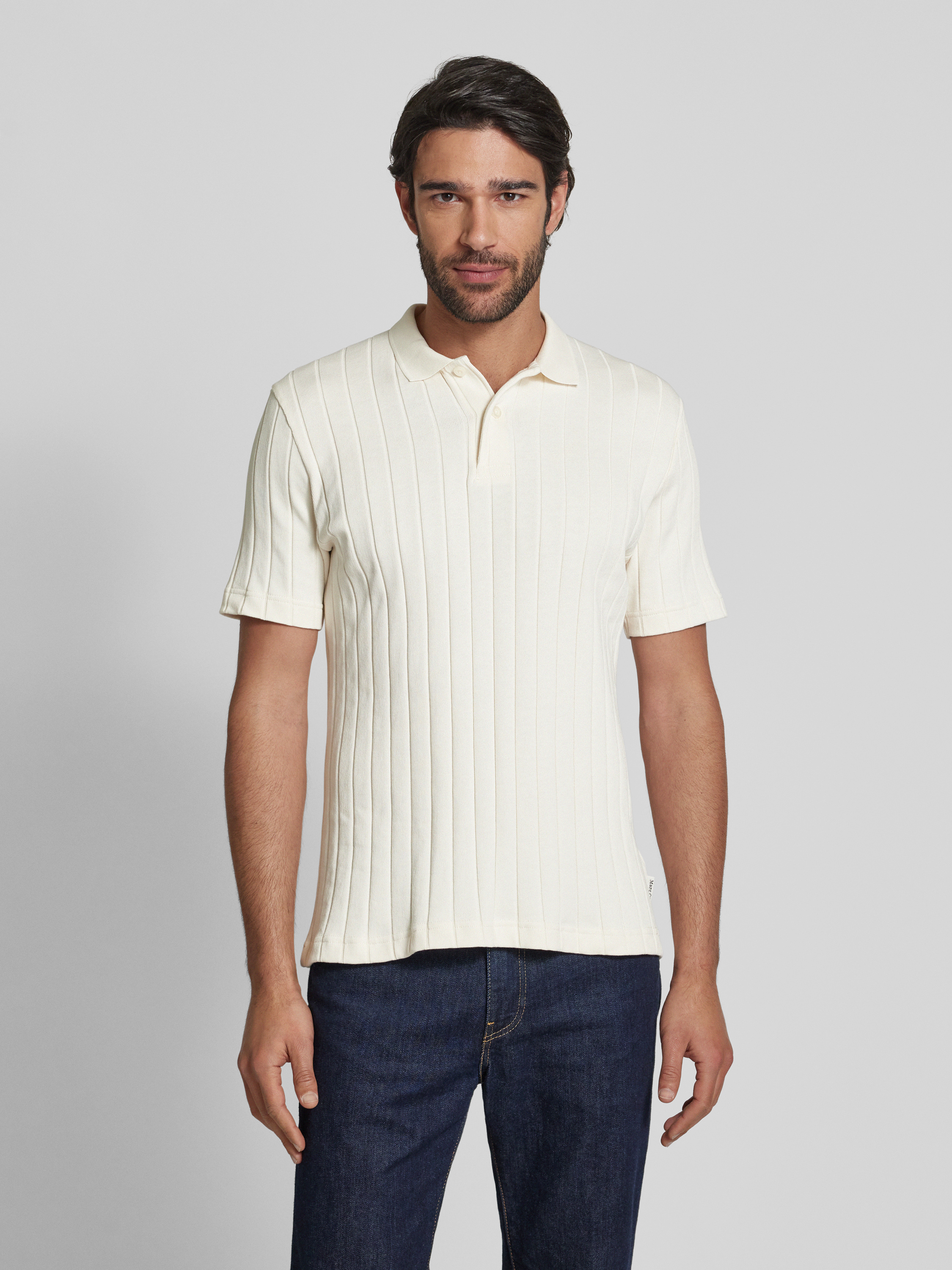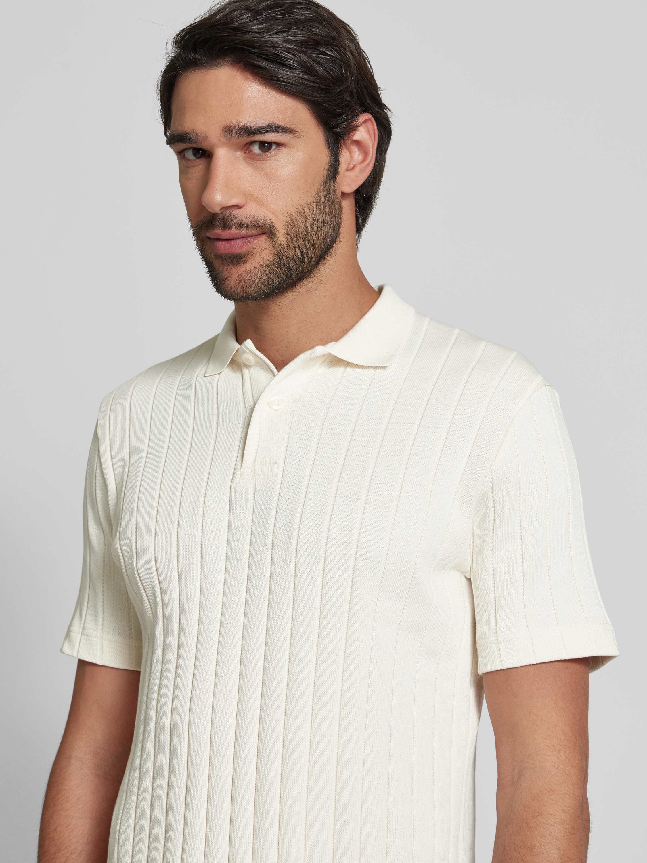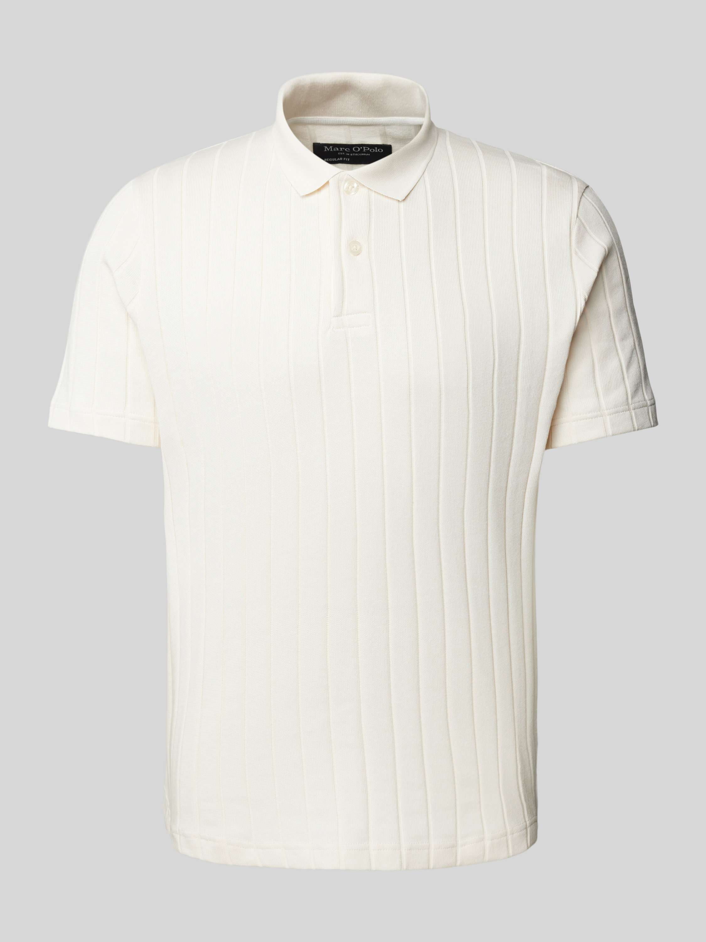 Marc O'PoloRegular fit poloshirt van een mix van katoen en jersey met brede ribstructuur in offwhite