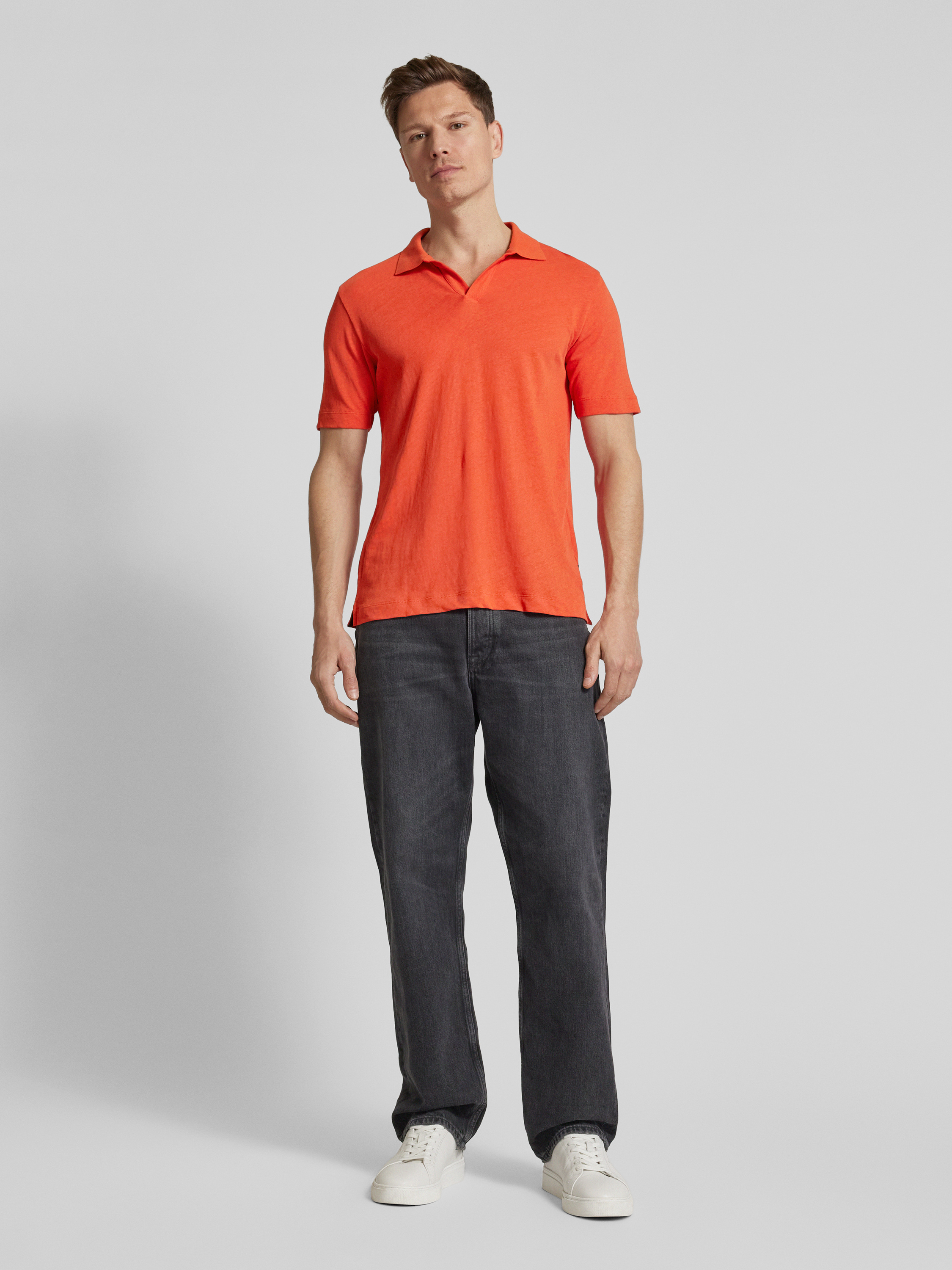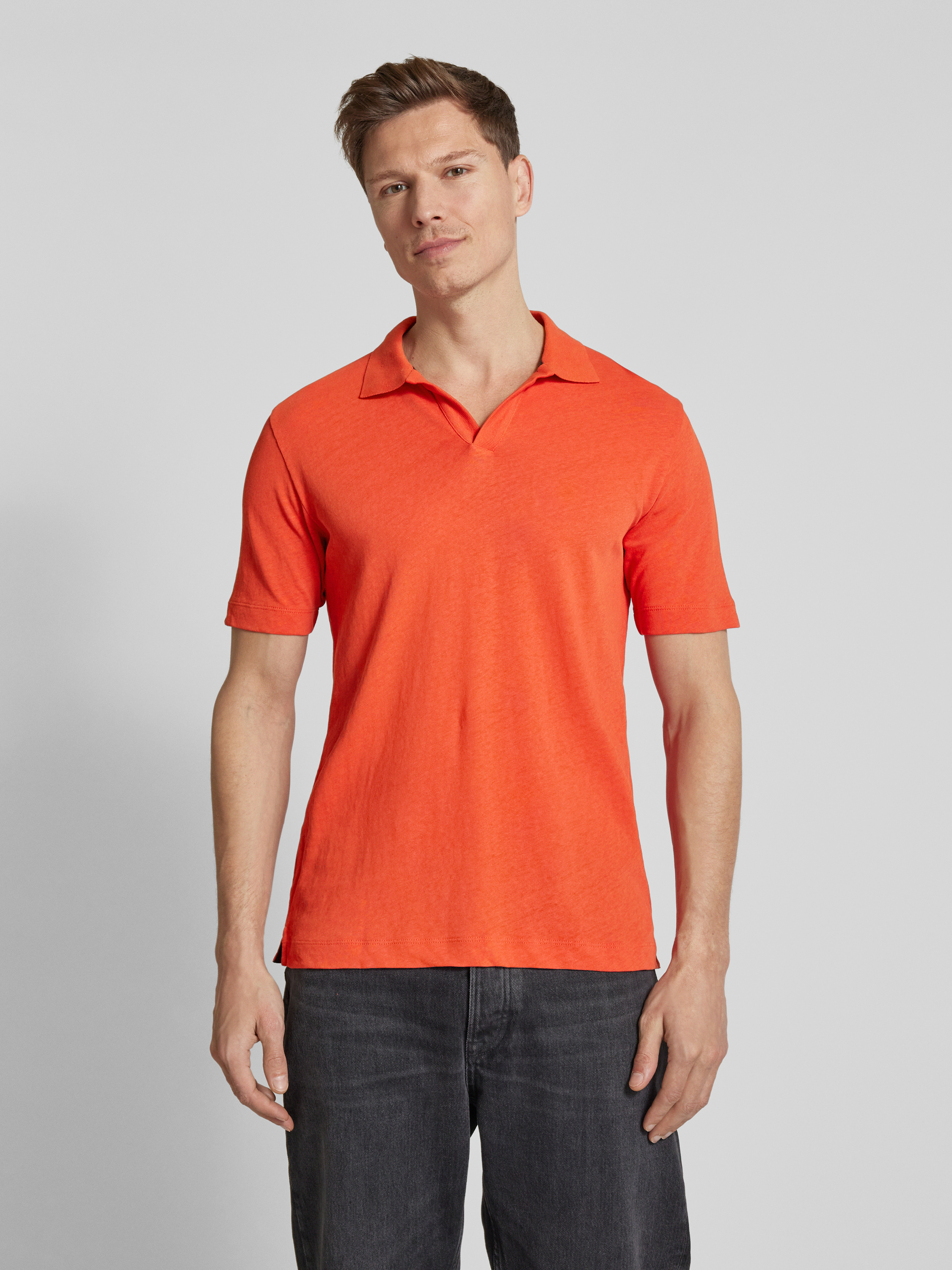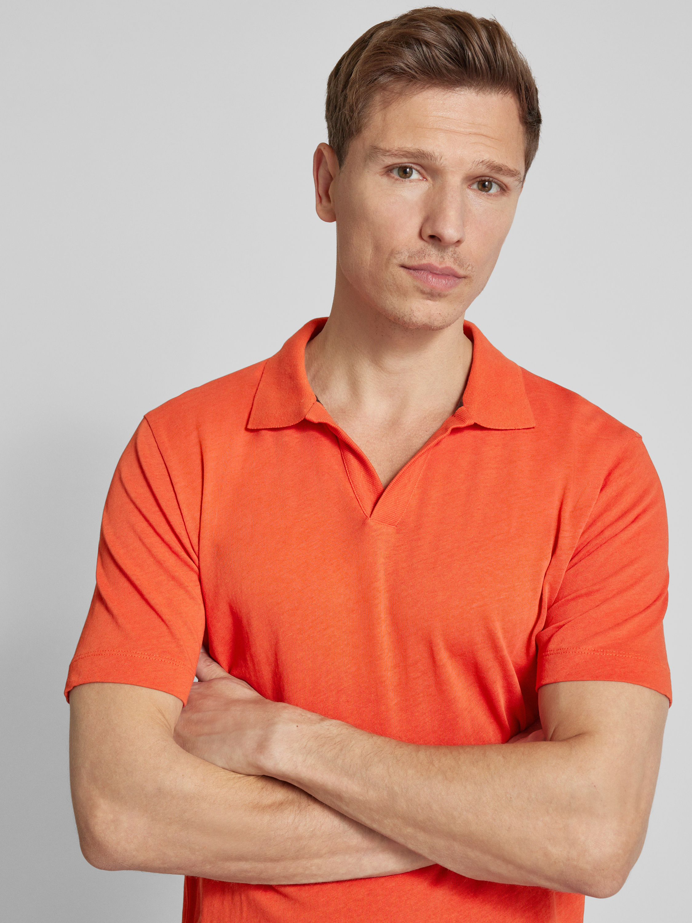 Marc O'PoloRegular fit poloshirt van een mix van katoen en linnen in oranje