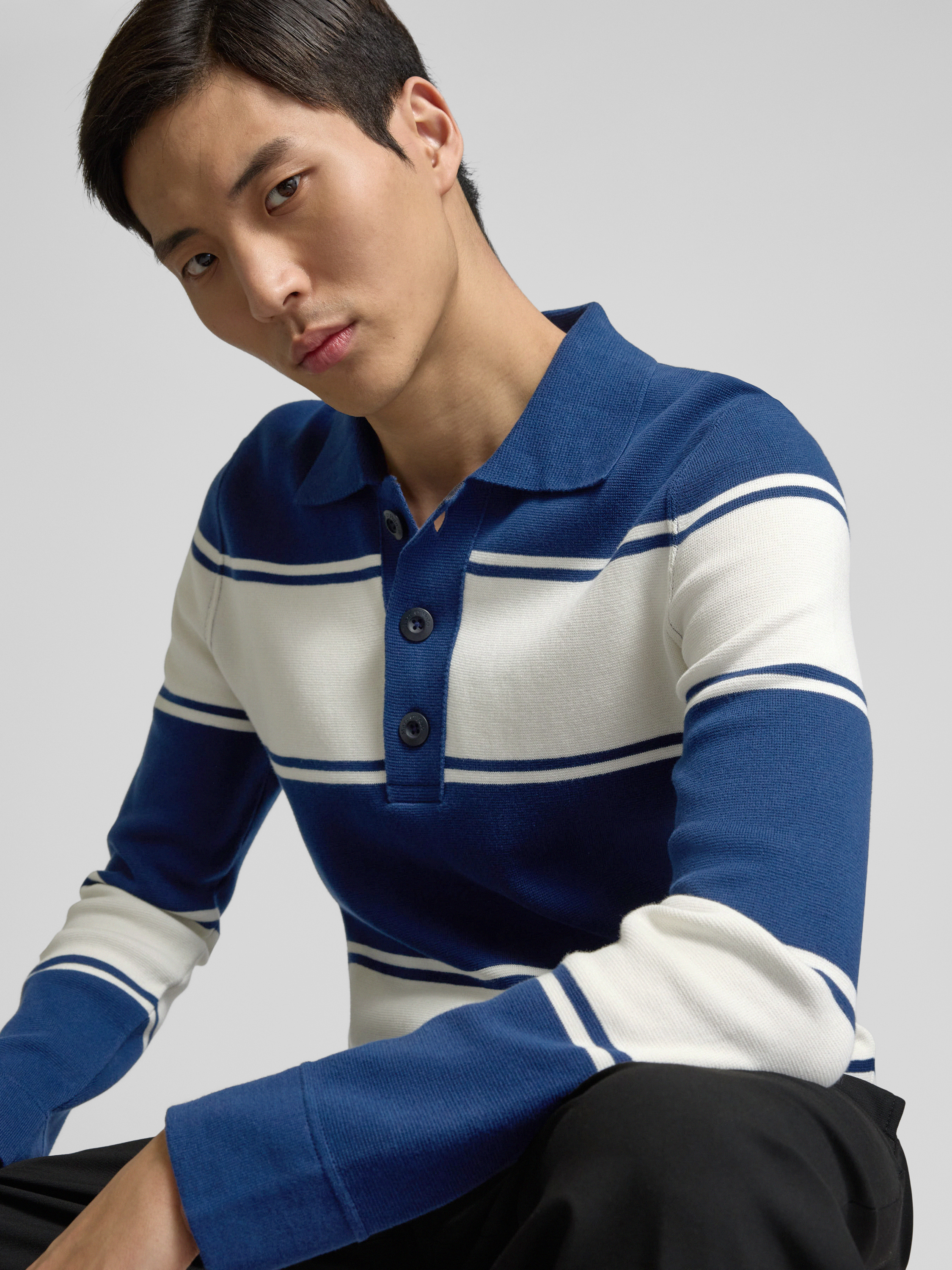 Marc O'PoloRegular fit rugbyshirt van zuiver katoen in een licht Milano-tricot in marineblauw