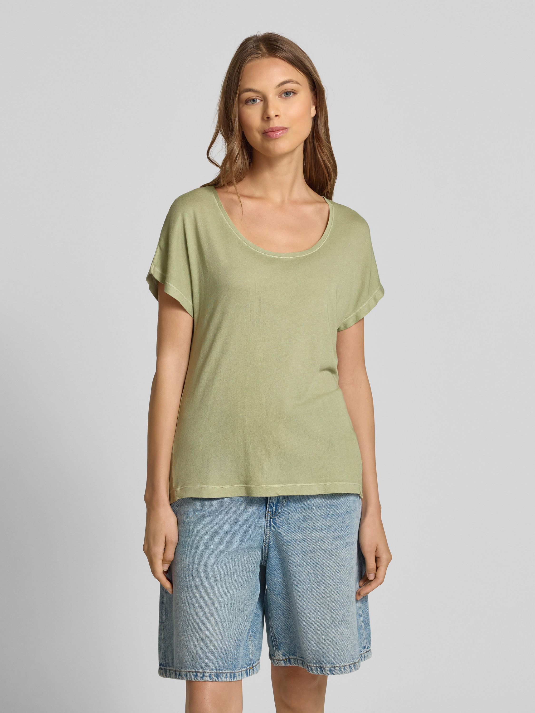 Marc O'PoloRelaxed fit T-shirt van een mix van katoen en viscose in lindegroen