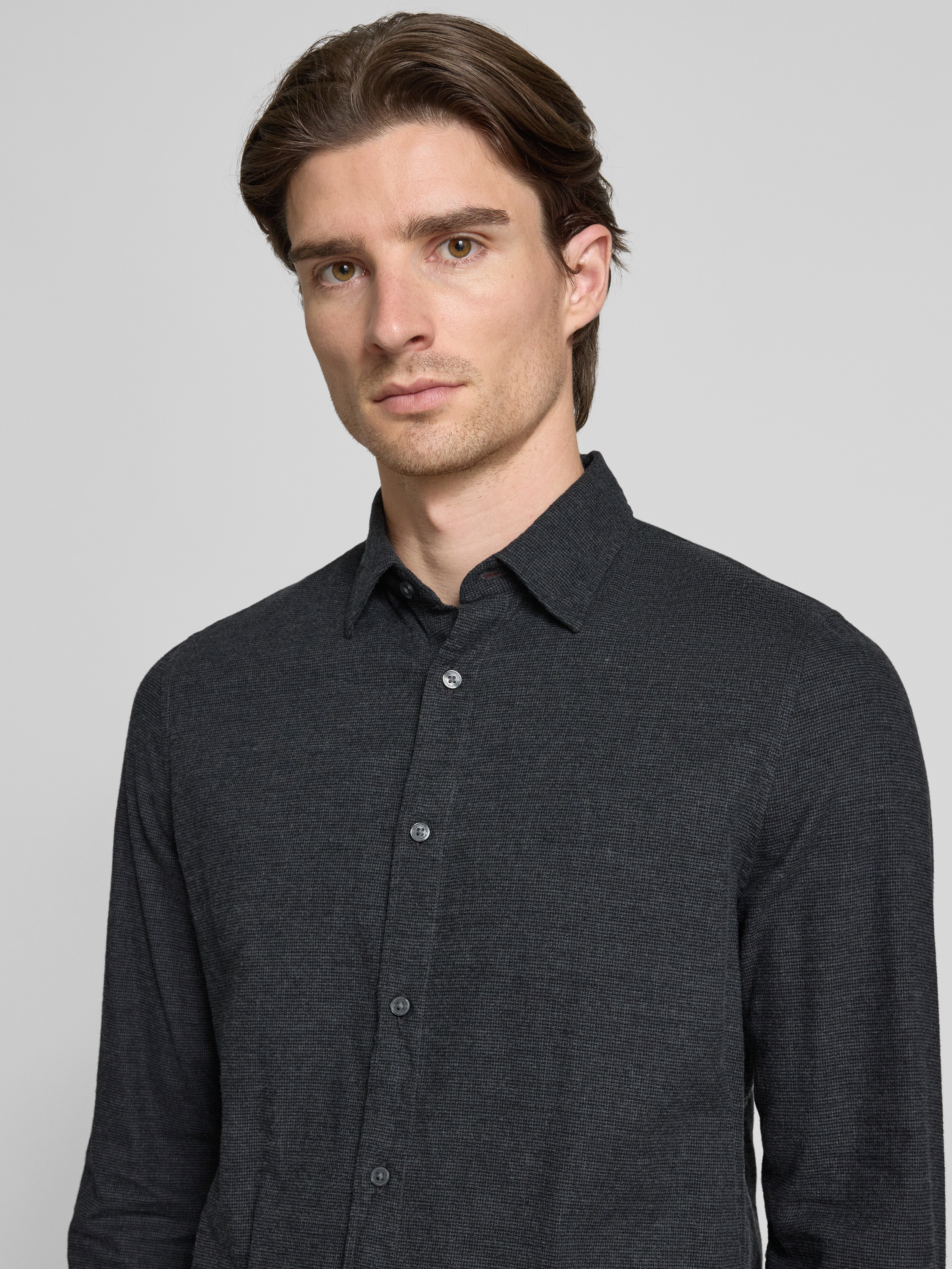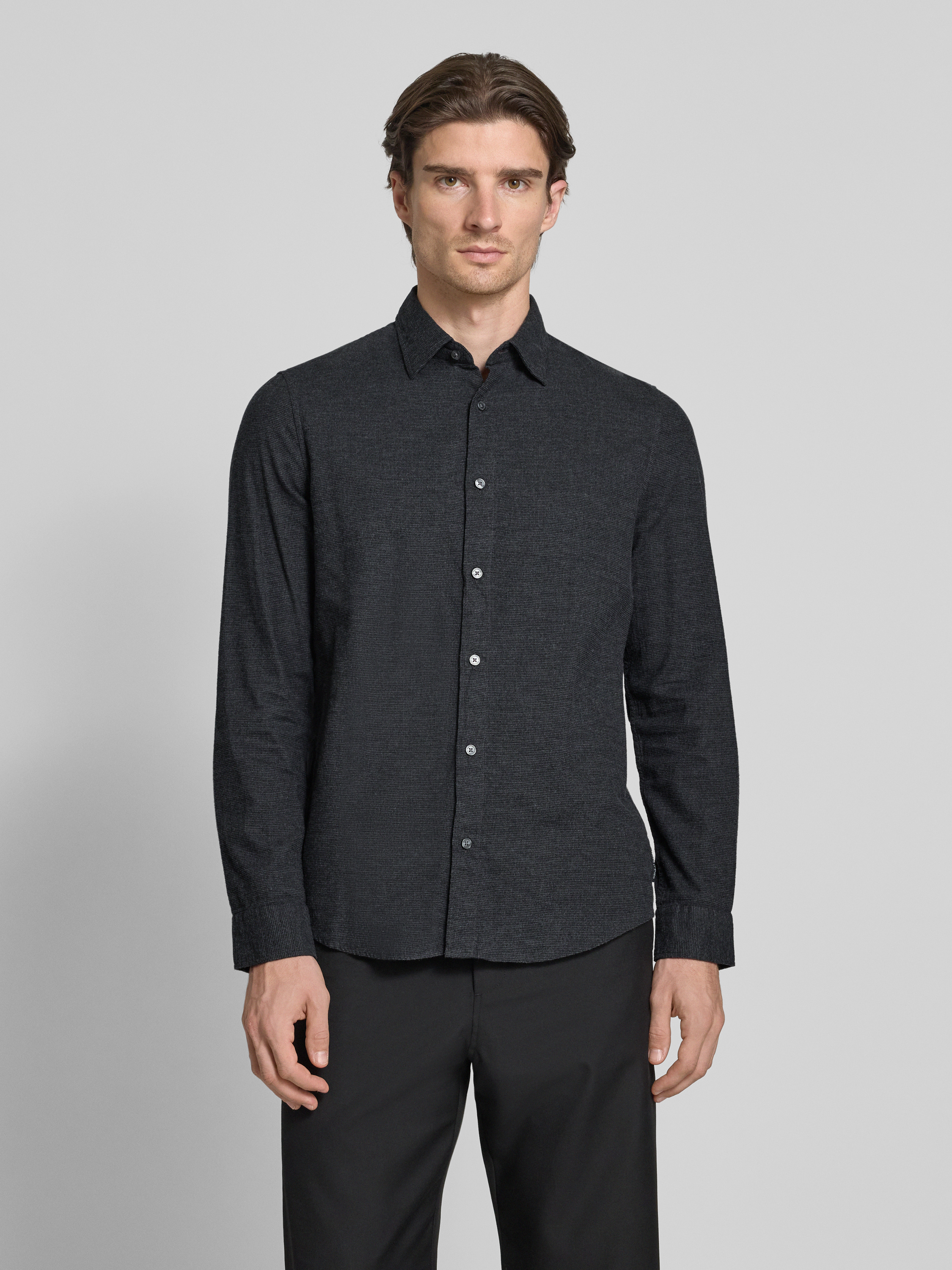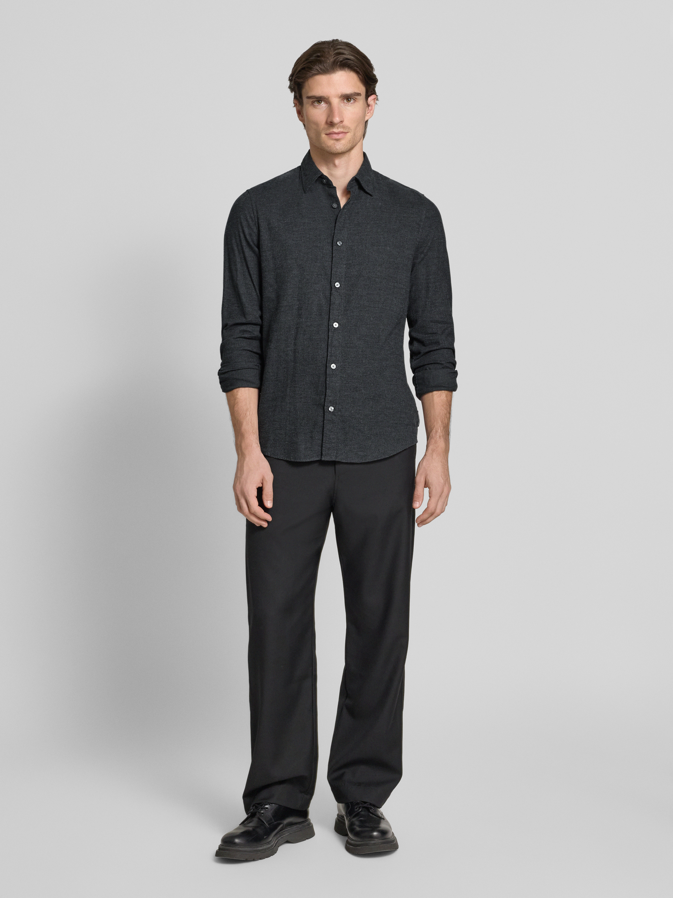 Marc O'PoloShaped fit vrijetijdsoverhemd van puur katoen in antraciet gemêleerd