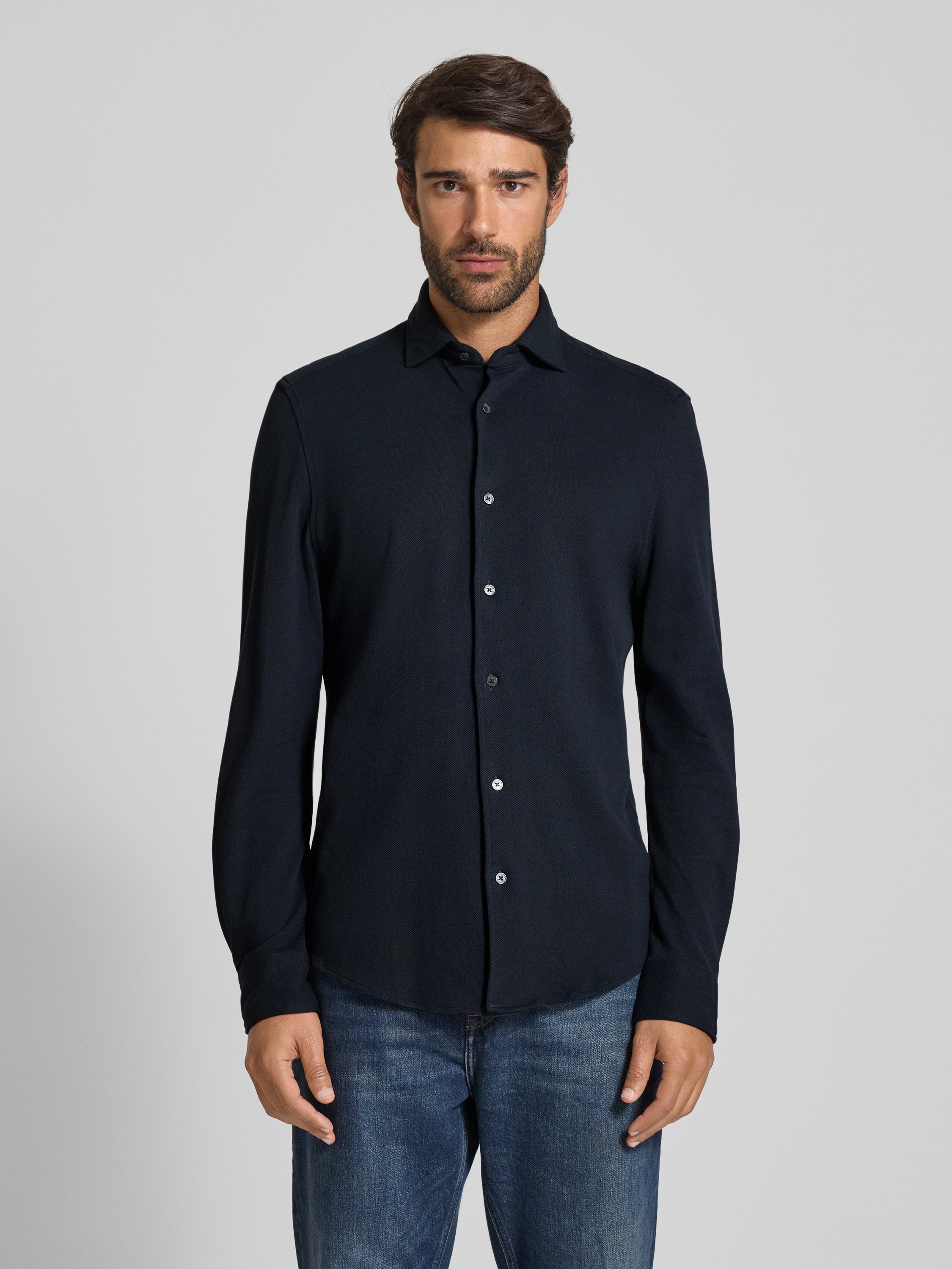 Marc O'PoloShaped fit vrijetijdsoverhemd van puur katoen in marineblauw
