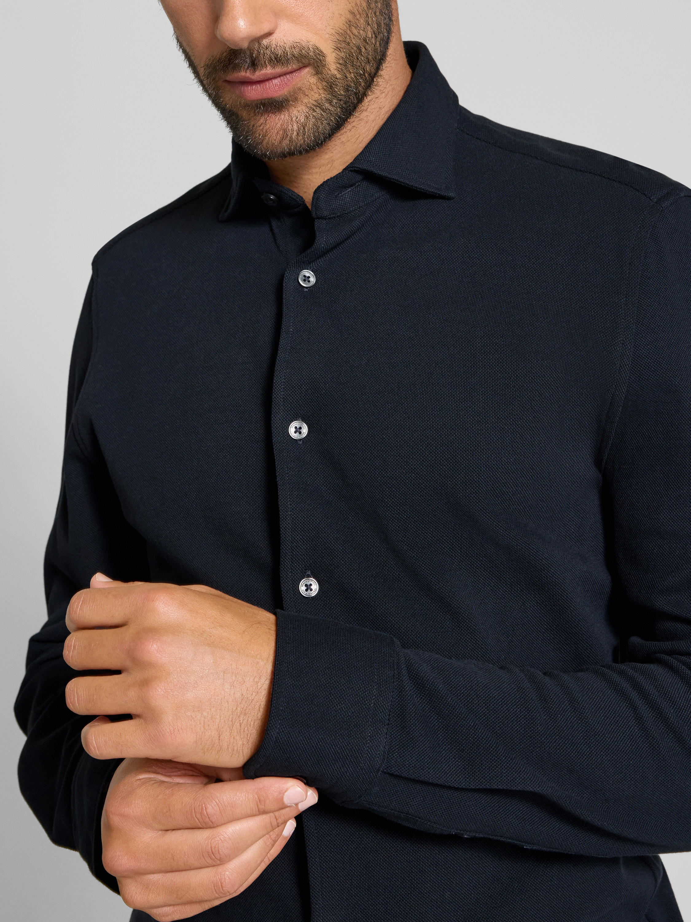 Type manchet: 1-knoopsmanchet, in wijdte verstelbaar, rond