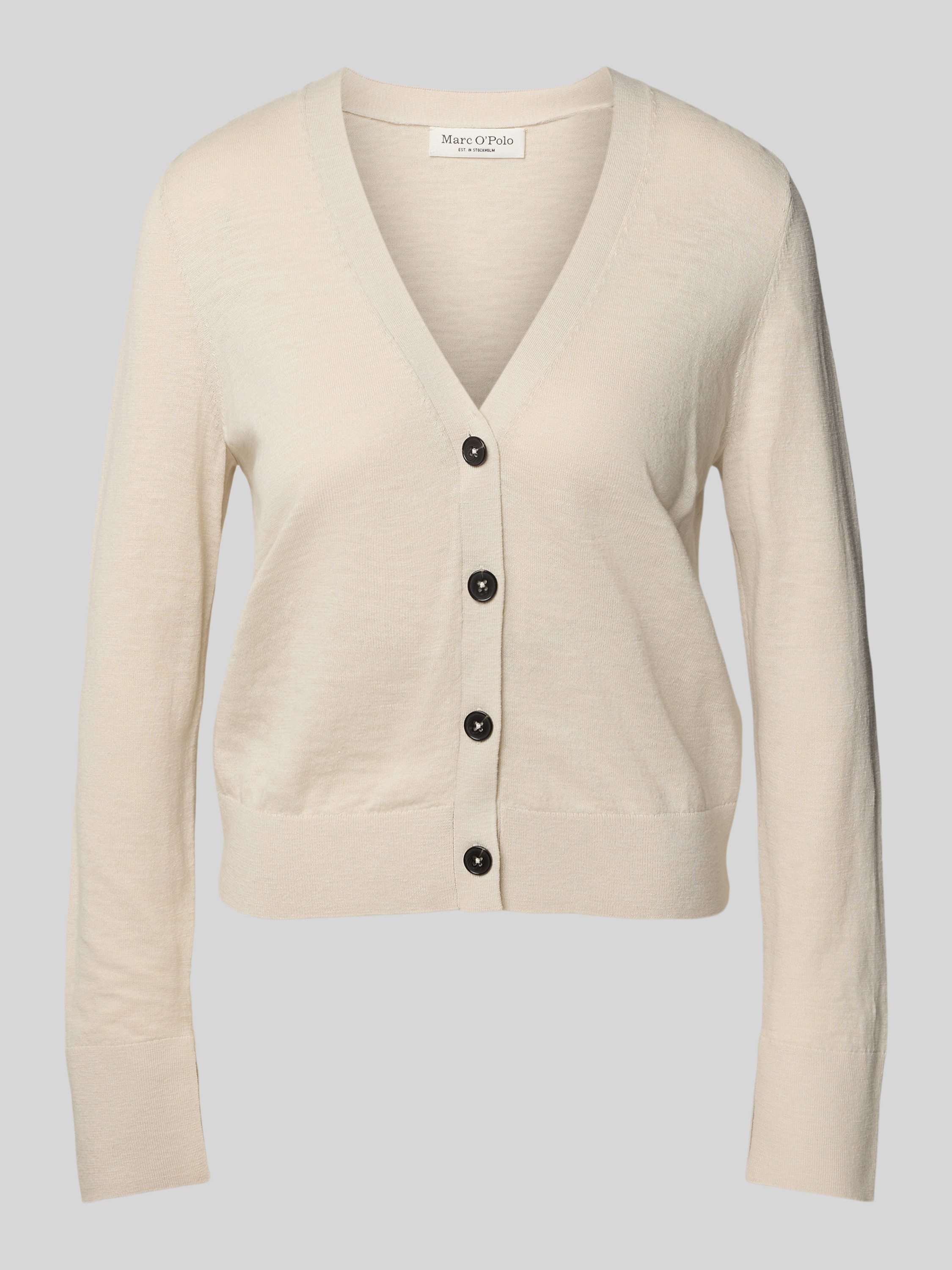 • Marc O'Polo Slim fit gebreid jack van een mix van katoen en linnen Zand