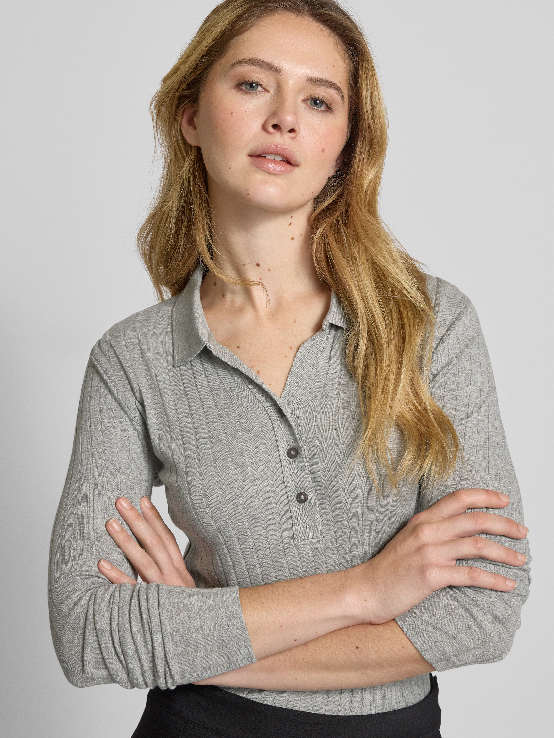 Marc O'PoloSlim fit shirt met lange mouwen en biologisch katoen in lichtgrijs gemêleerd