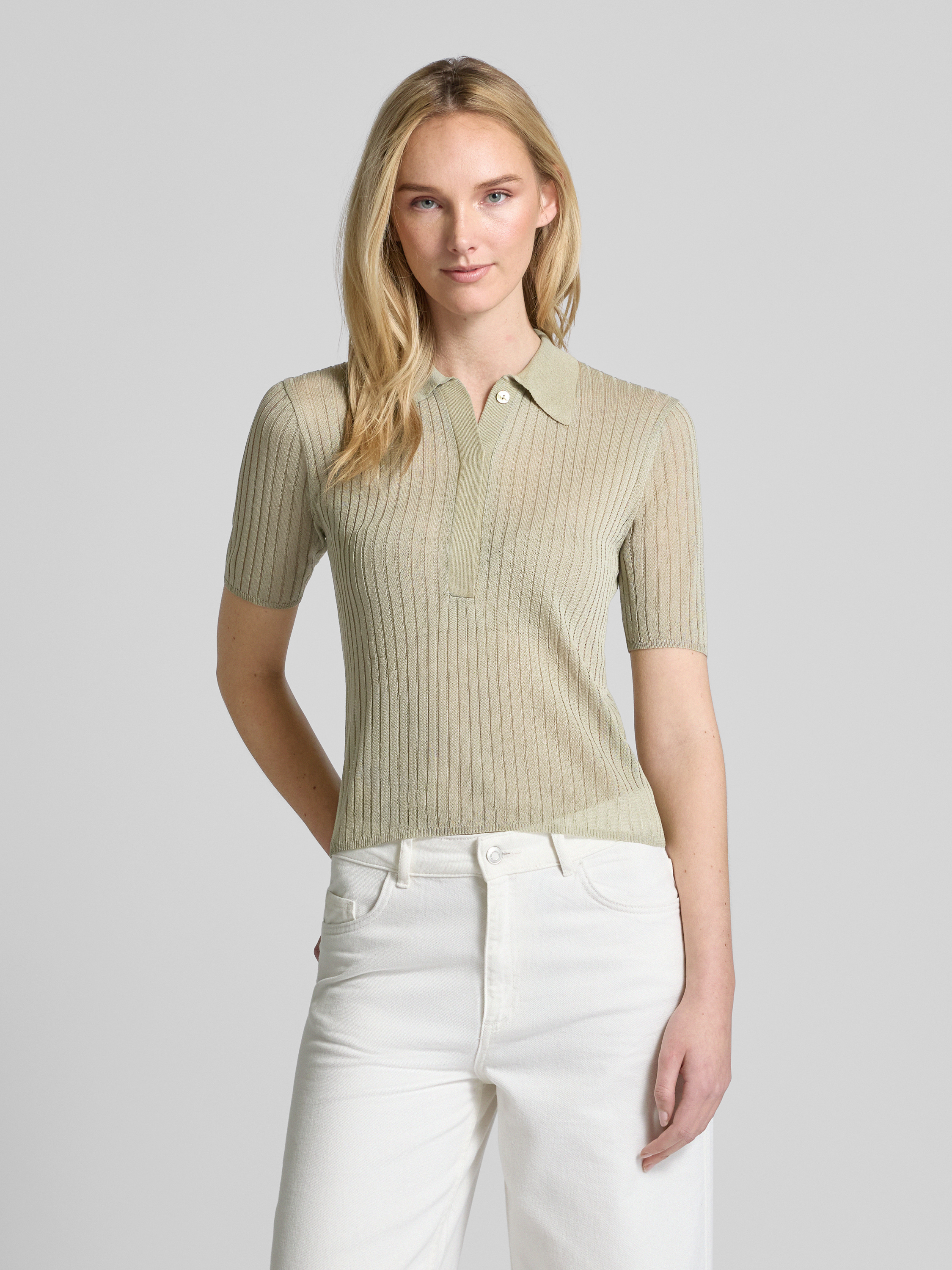 MarellaGebreid shirt met structuurmotief, model 'TORBOLE' in kaki