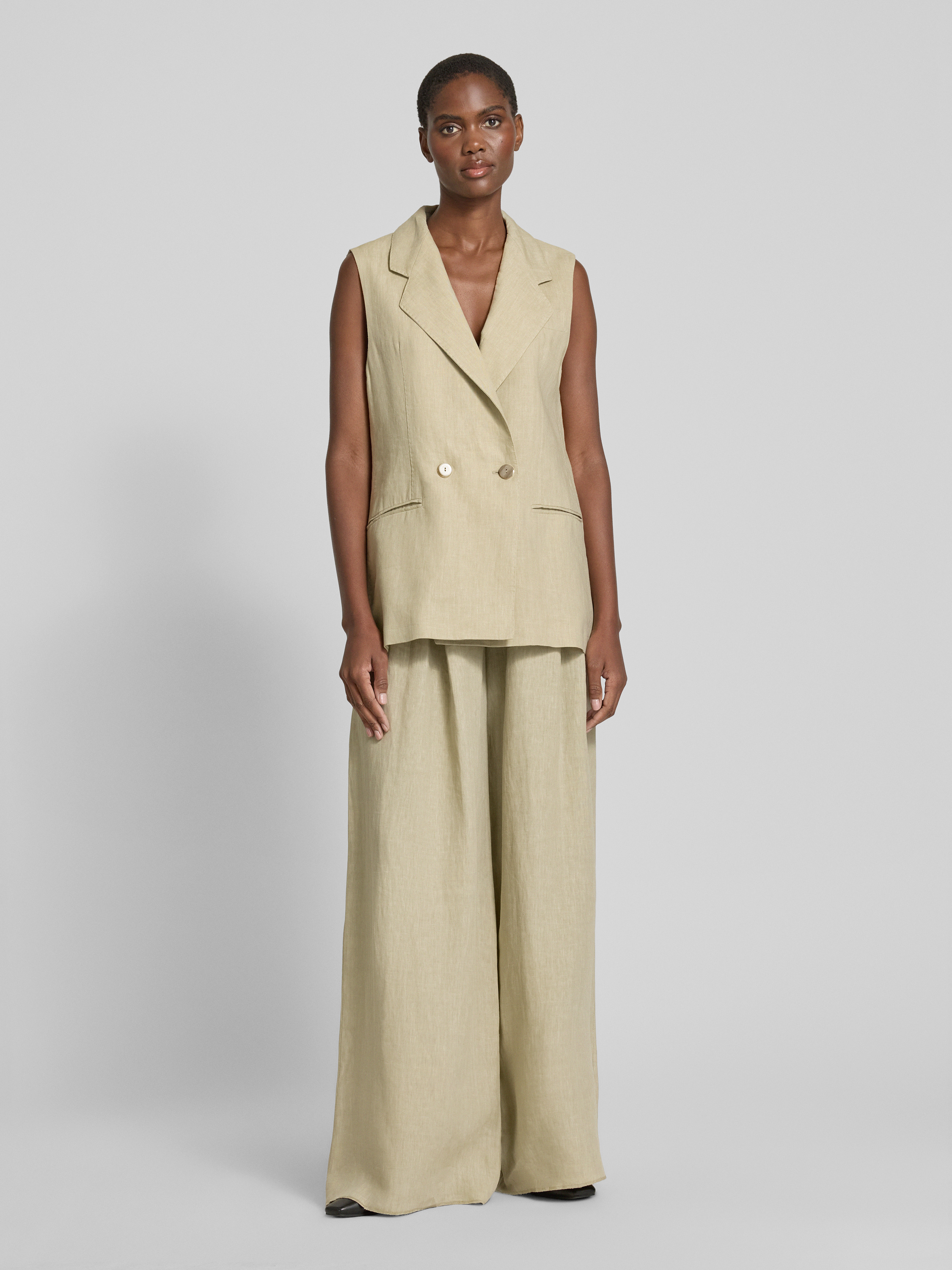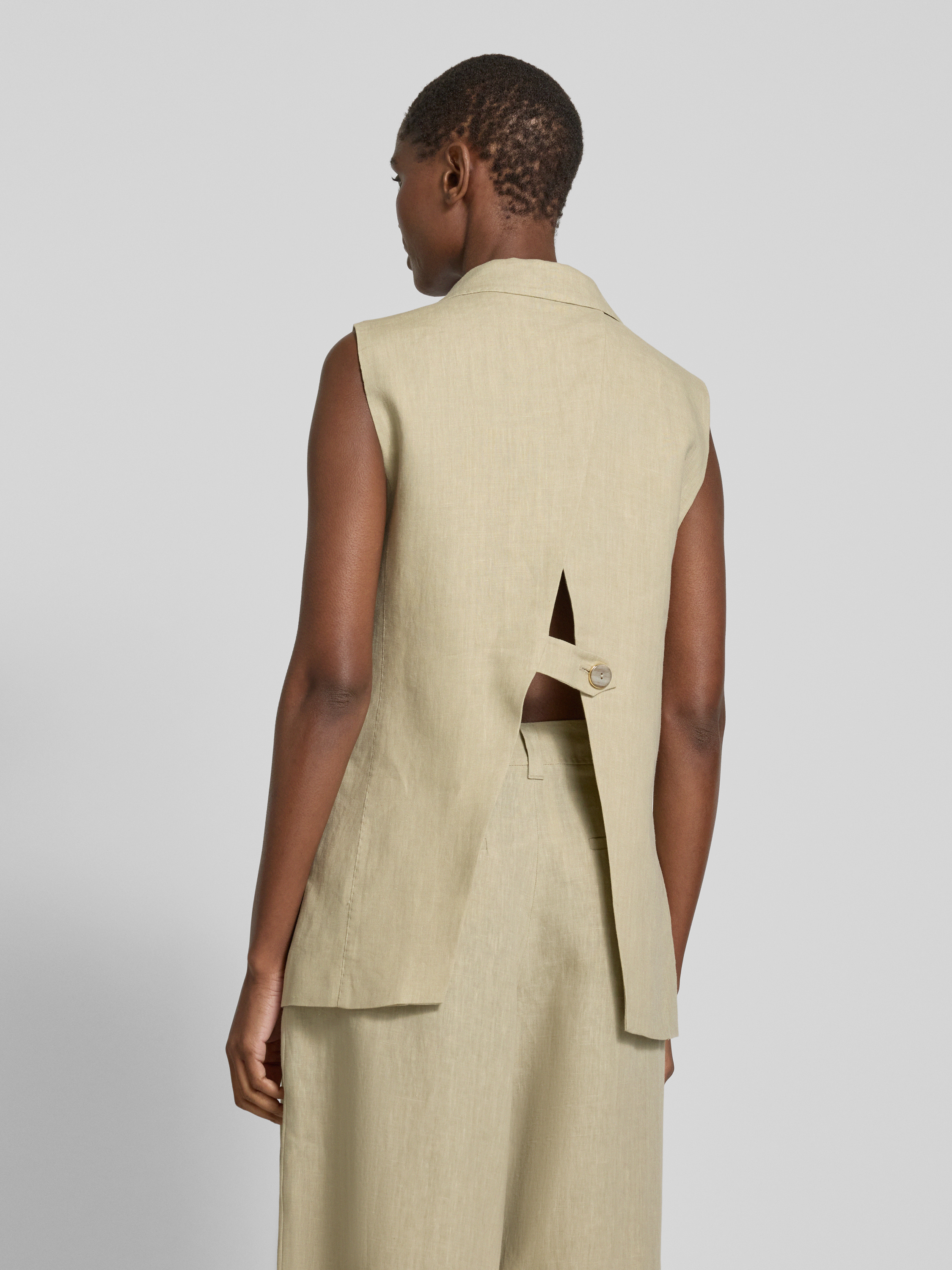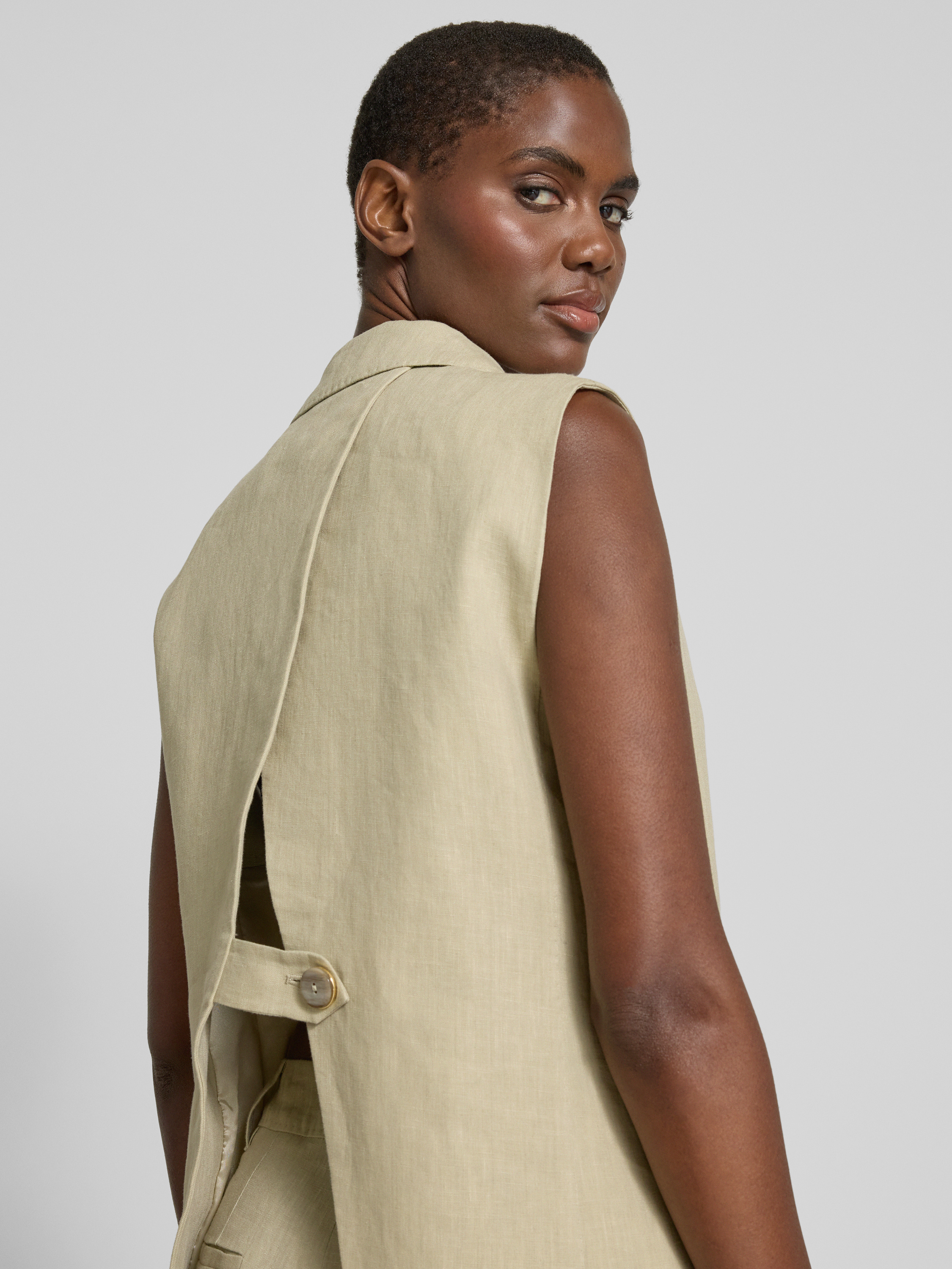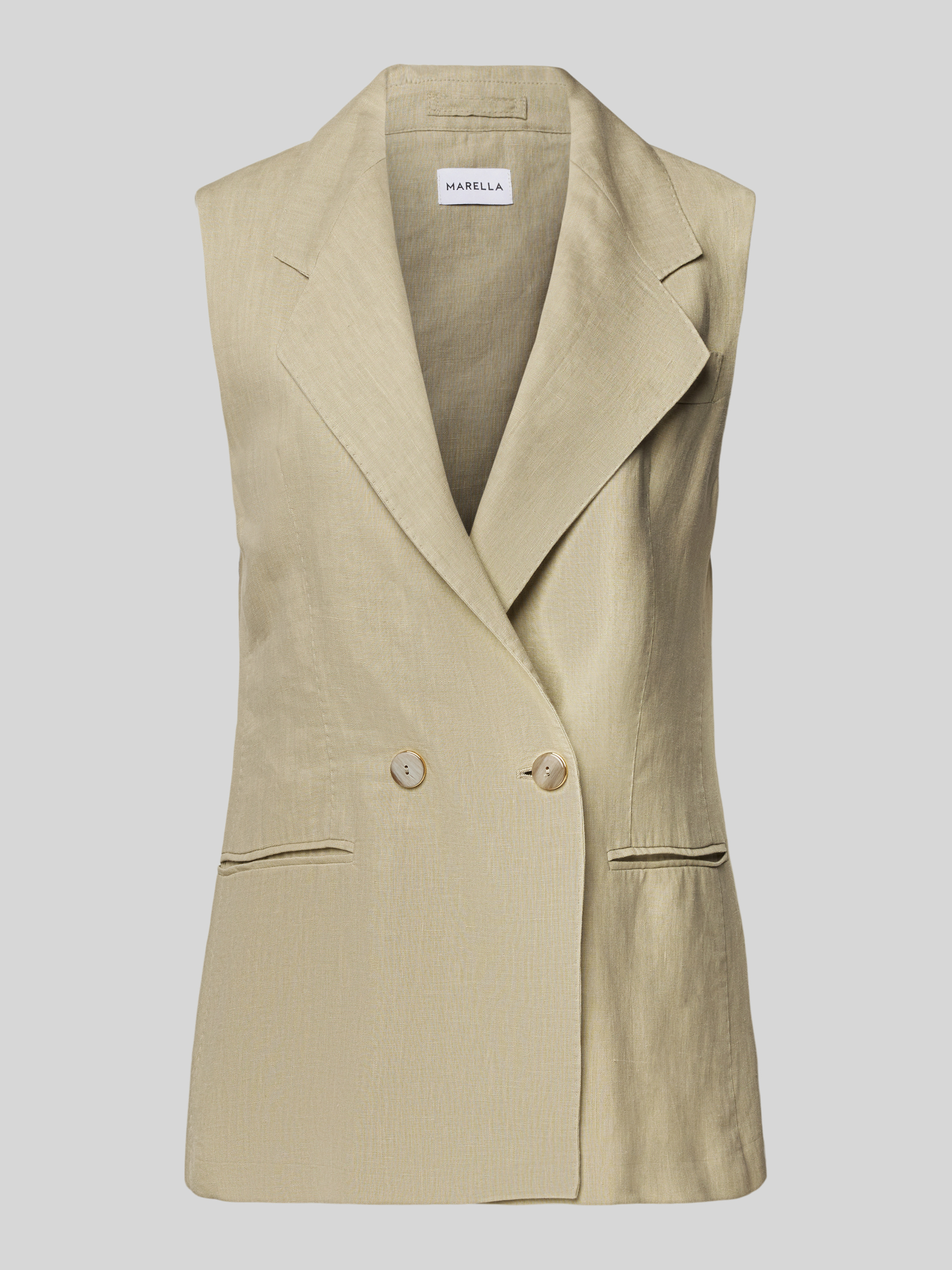 MarellaRelaxed fit linnen gilet met paspelzakken, model 'DRAMMA' in groen