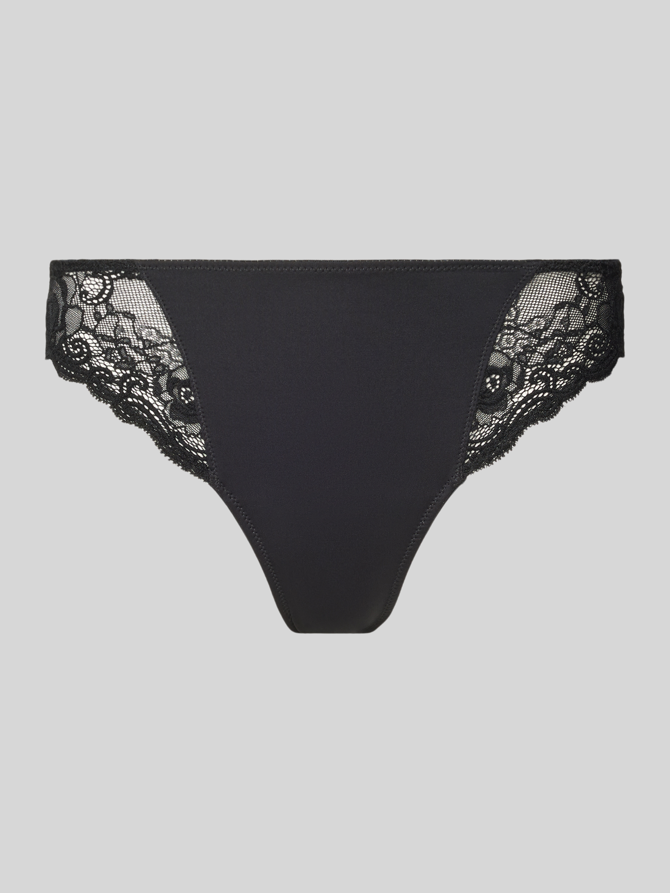 Slip met semi-transparante garnering, model 'Cyrile' in metallic zwart