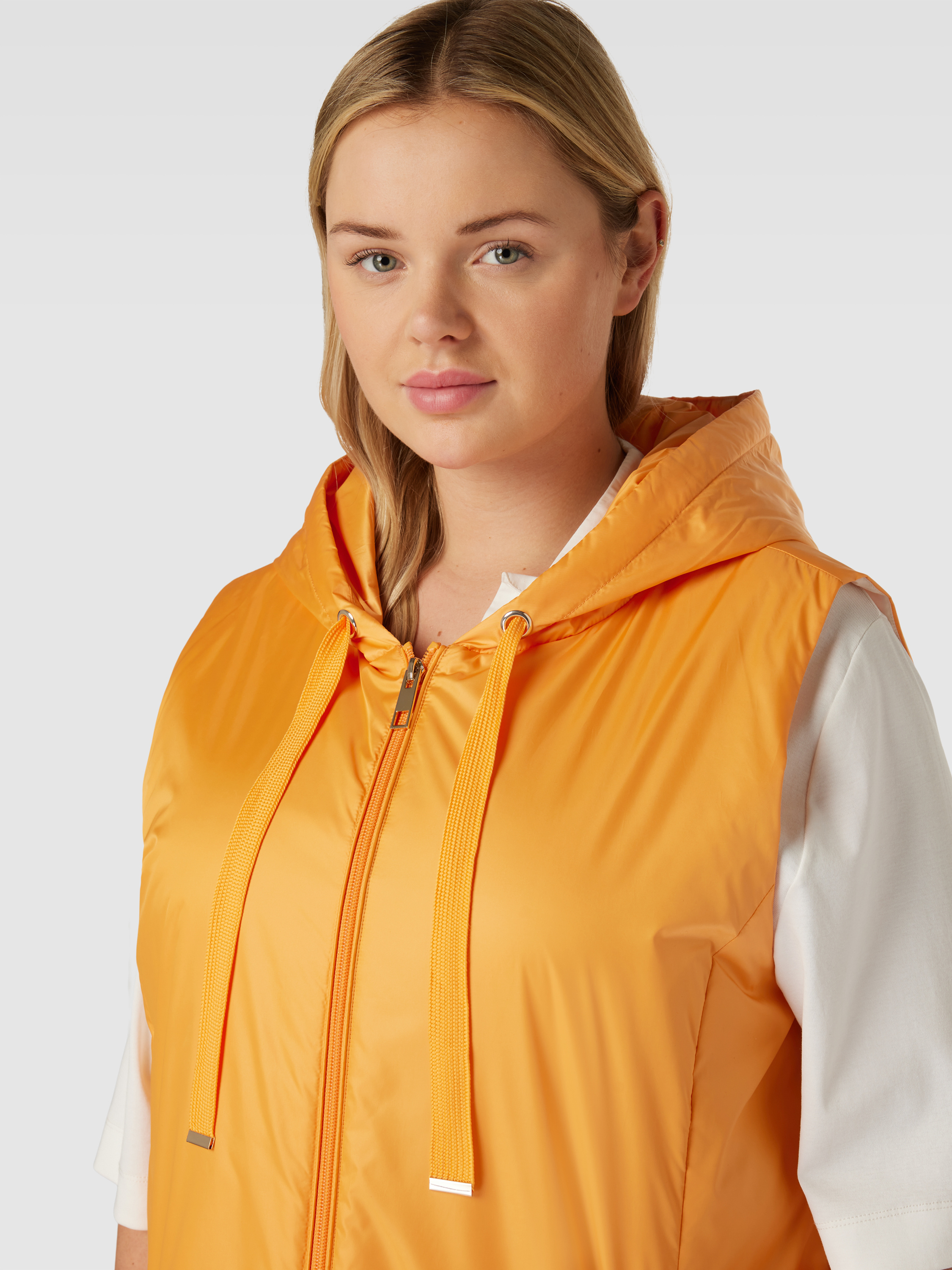 Marina RinaldiPLUS SIZE gilet met tweewegsritssluiting, model 'PAGODA' in oranje