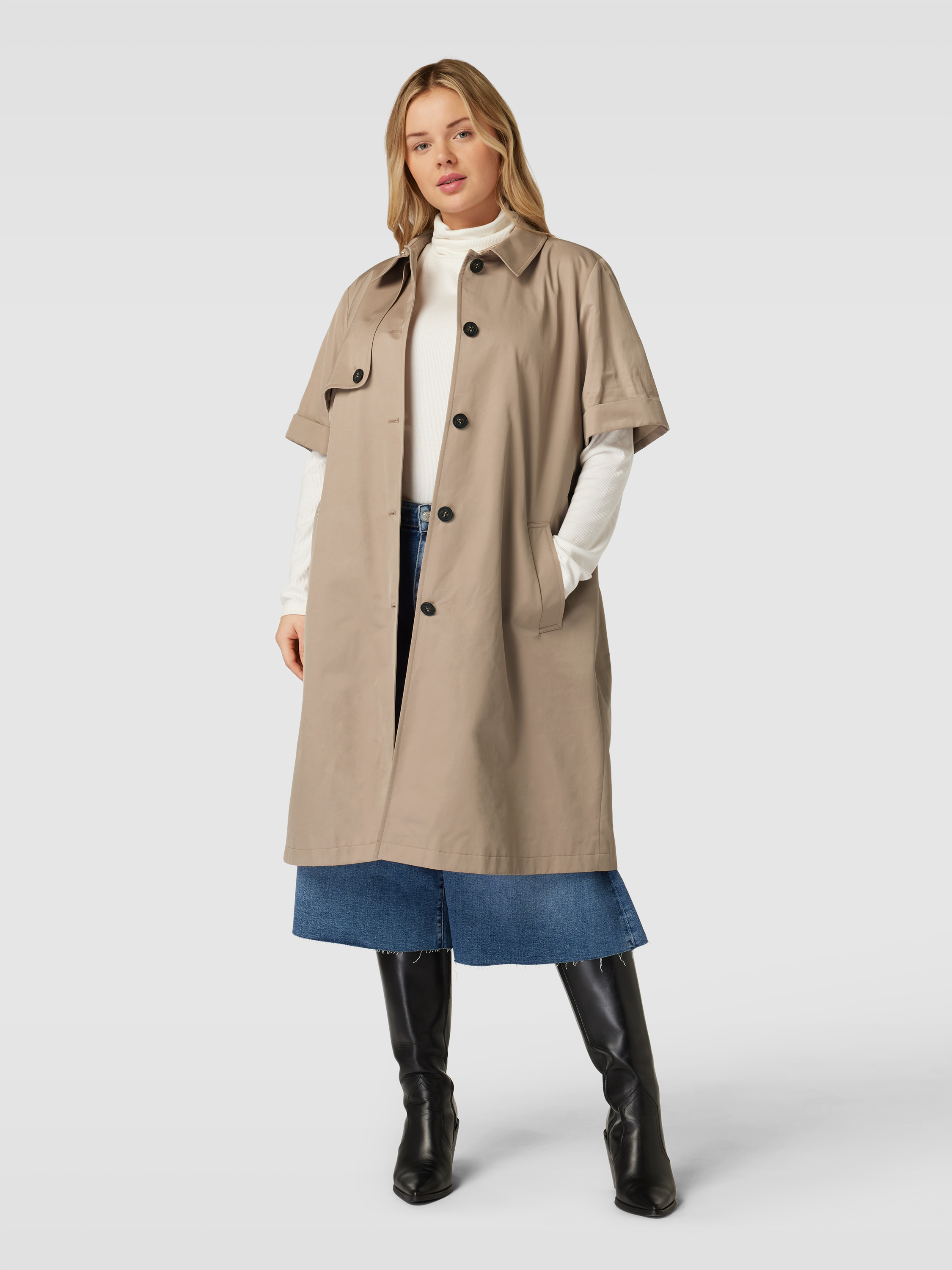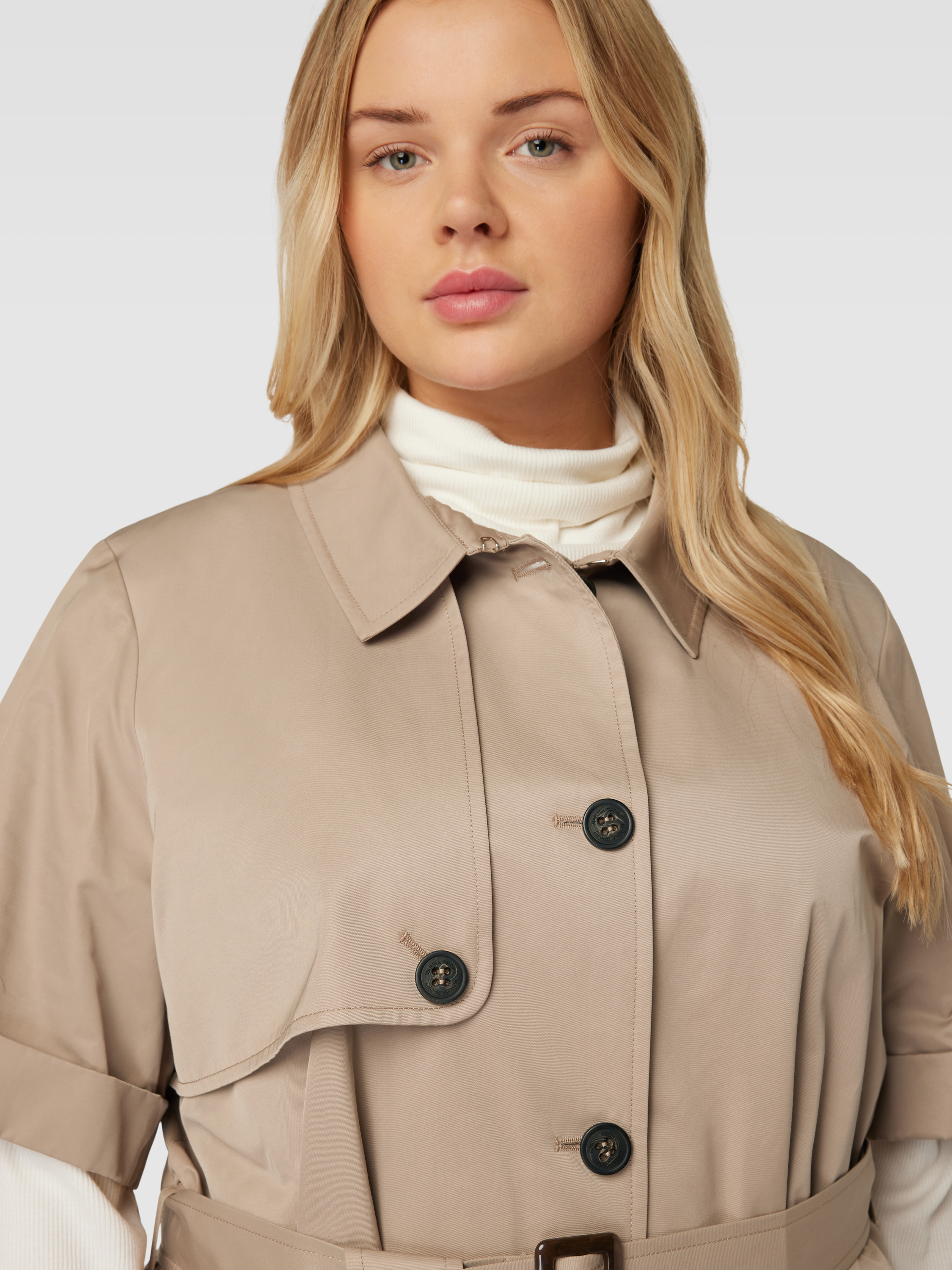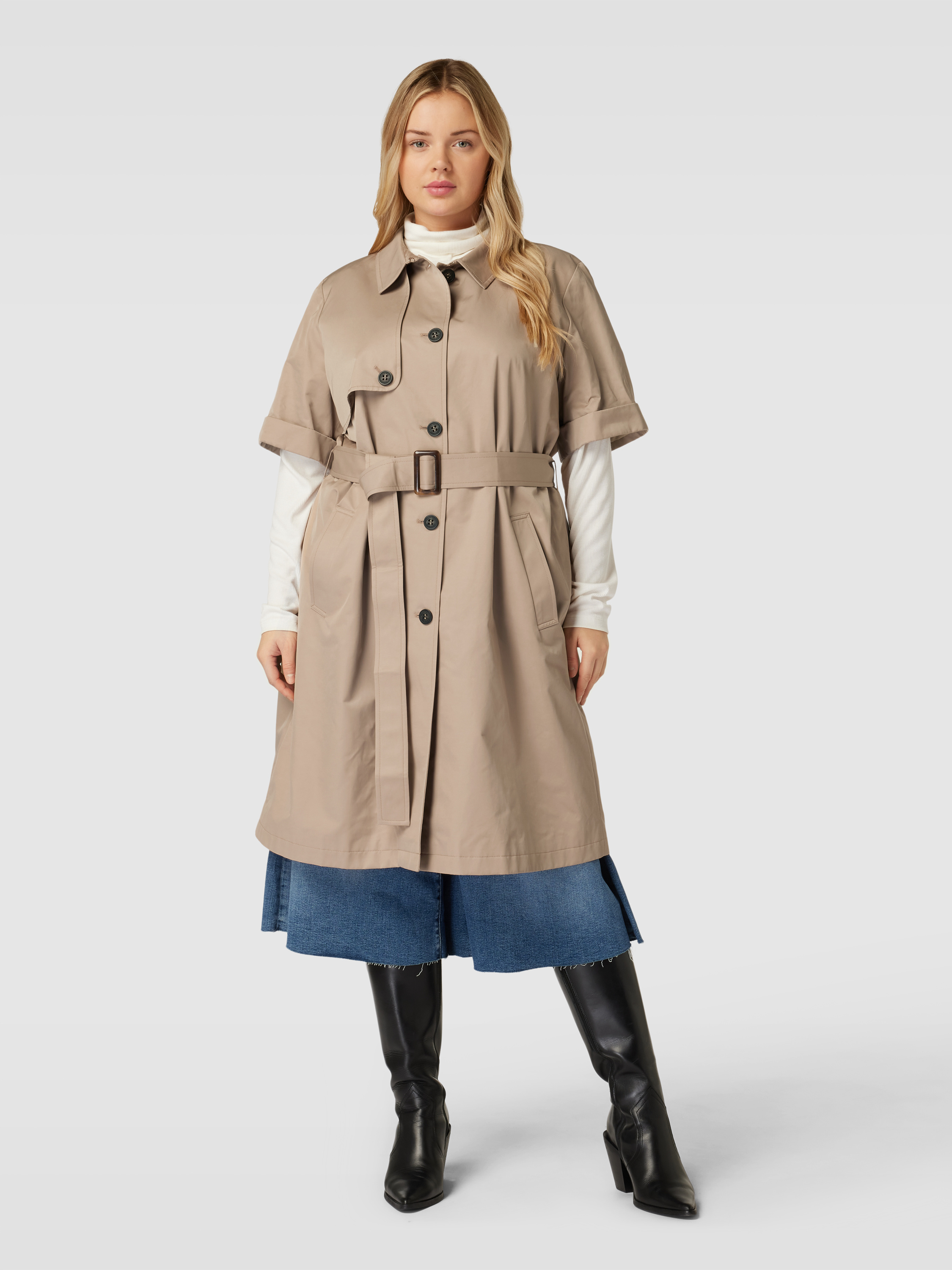 Marina RinaldiPLUS SIZE trenchcoat met 1/2-mouwen en tailleriem, model 'TARBES' in zand