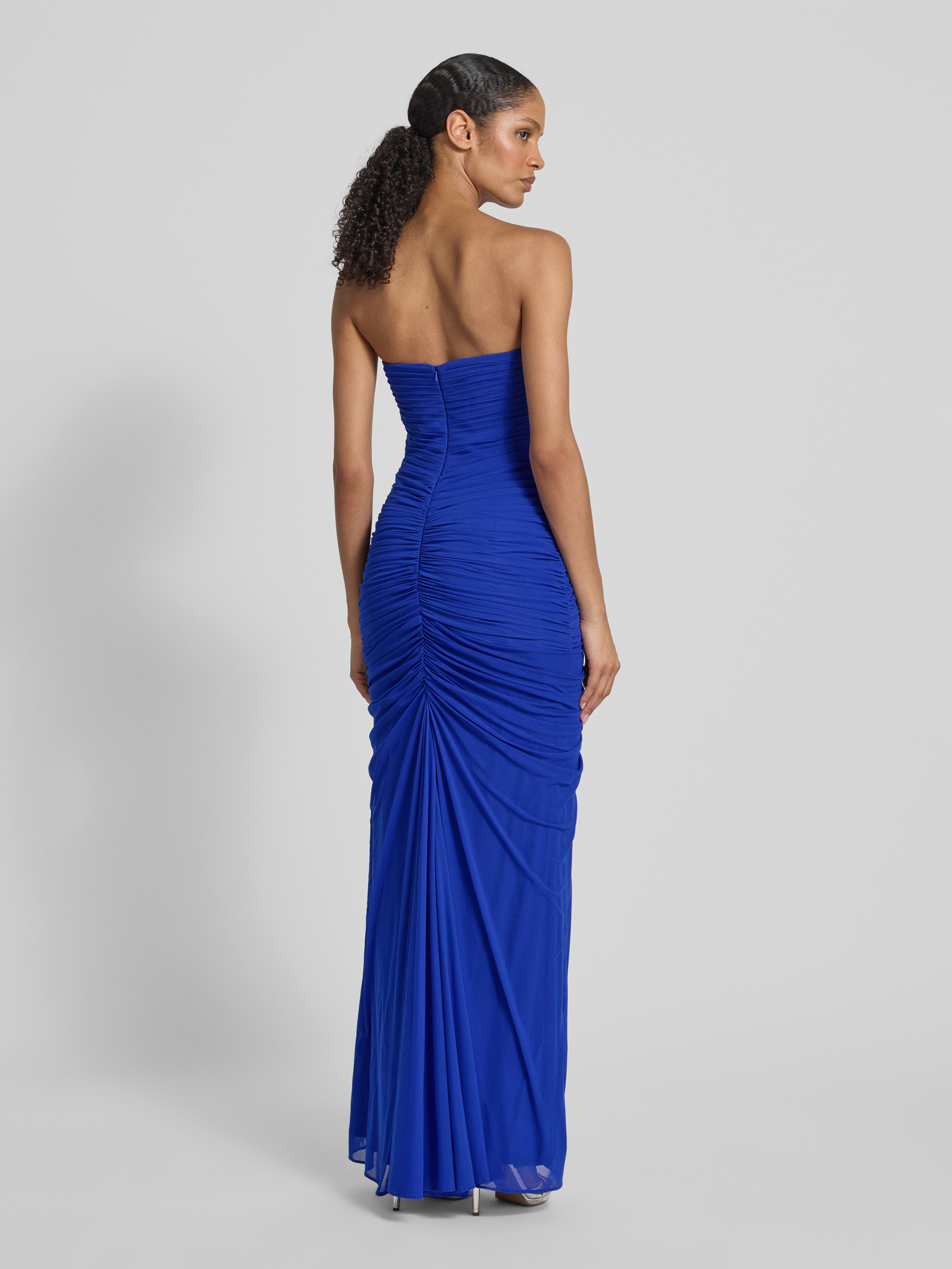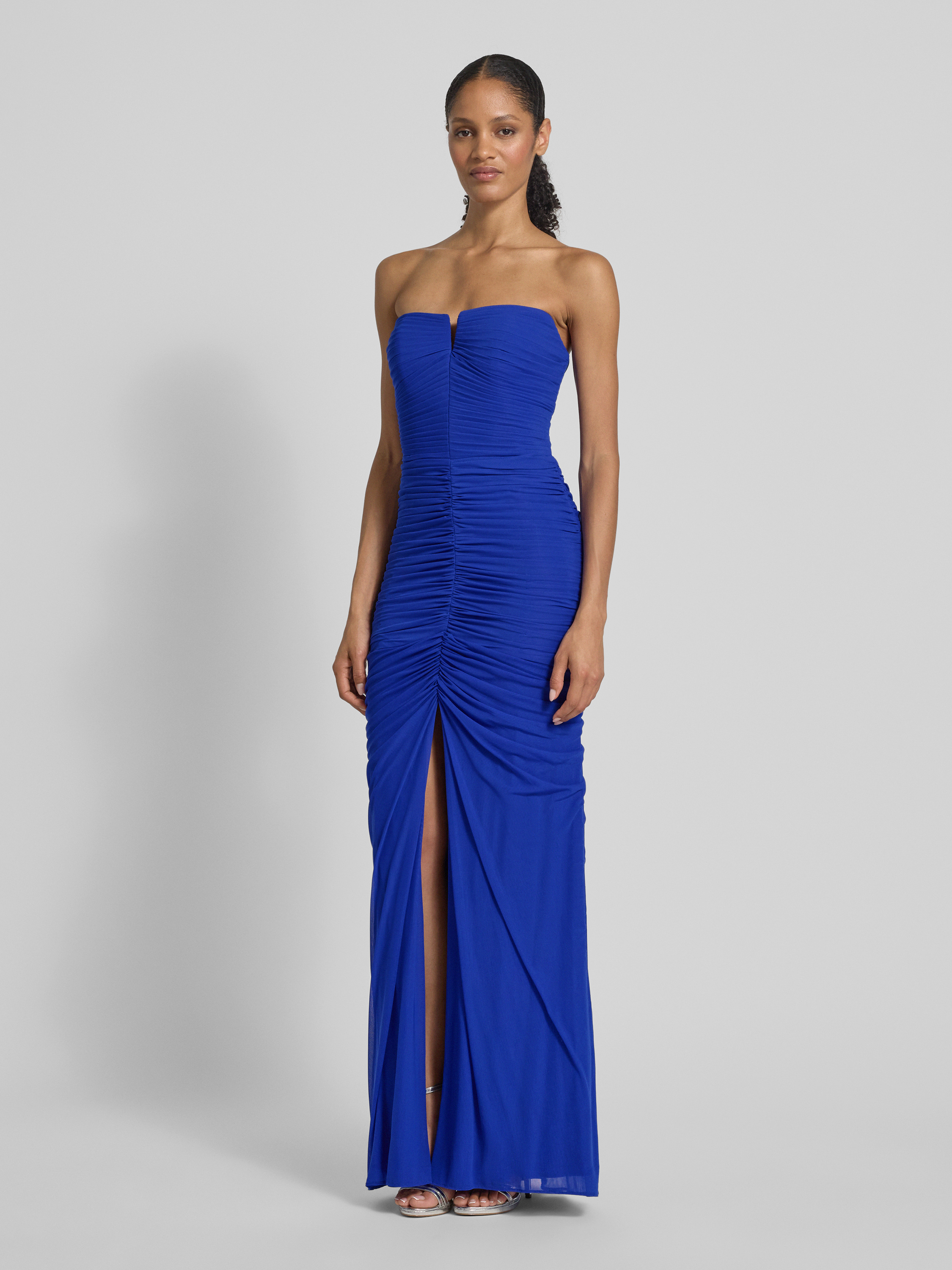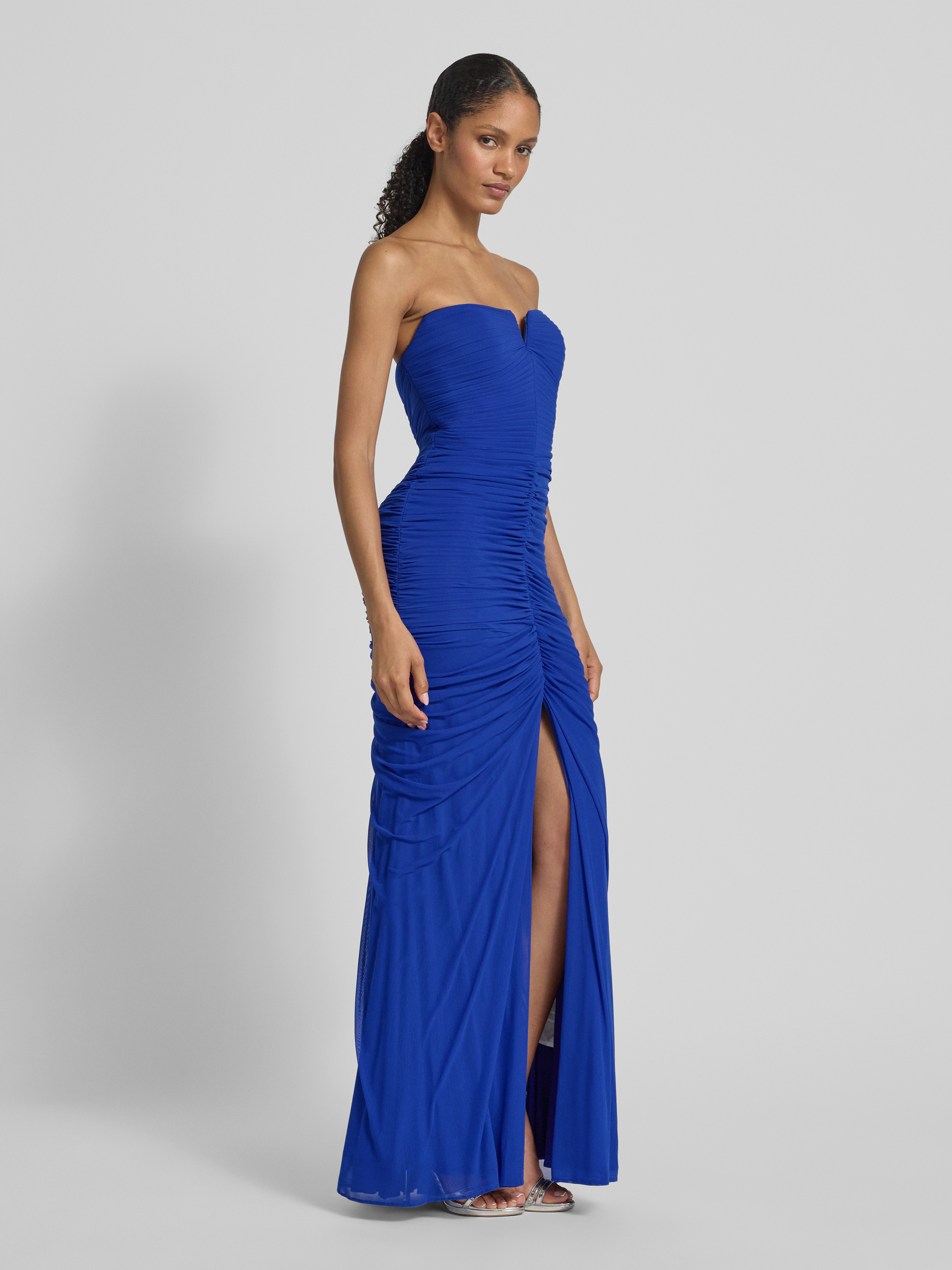 MascaraAvondjurk met plooien en loopsplit in koningsblauw