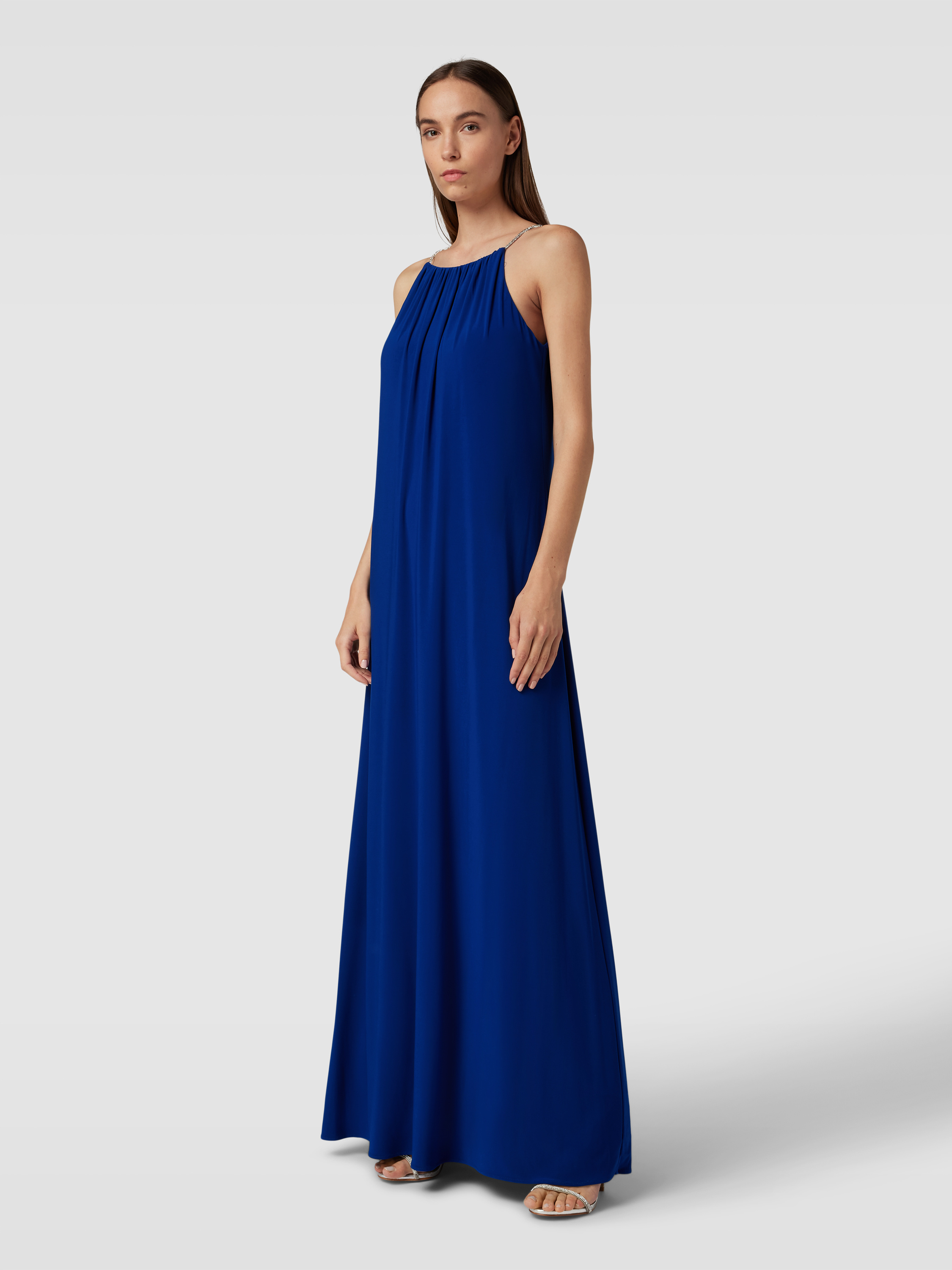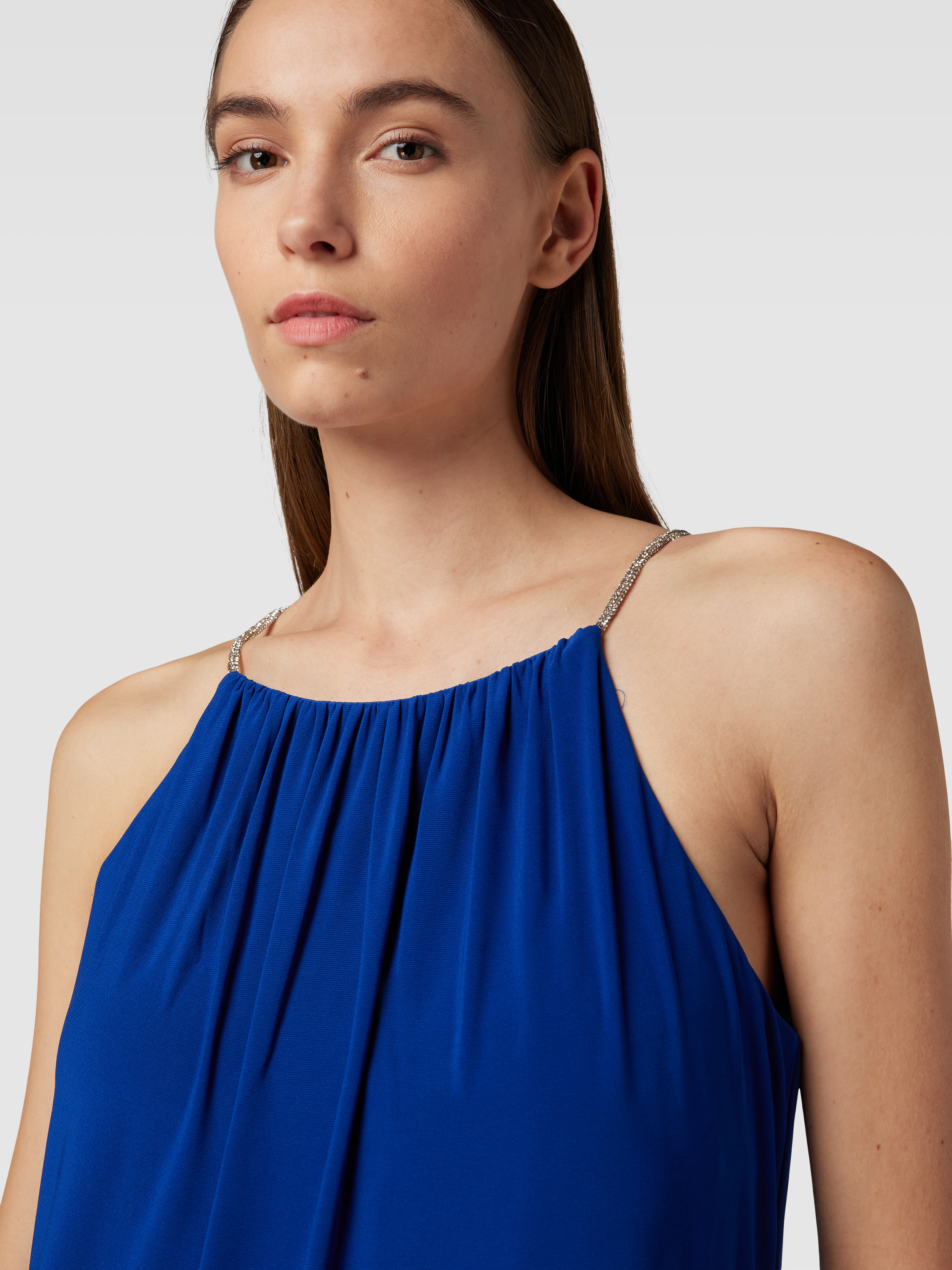 Avondjurk met plooien in koningsblauw