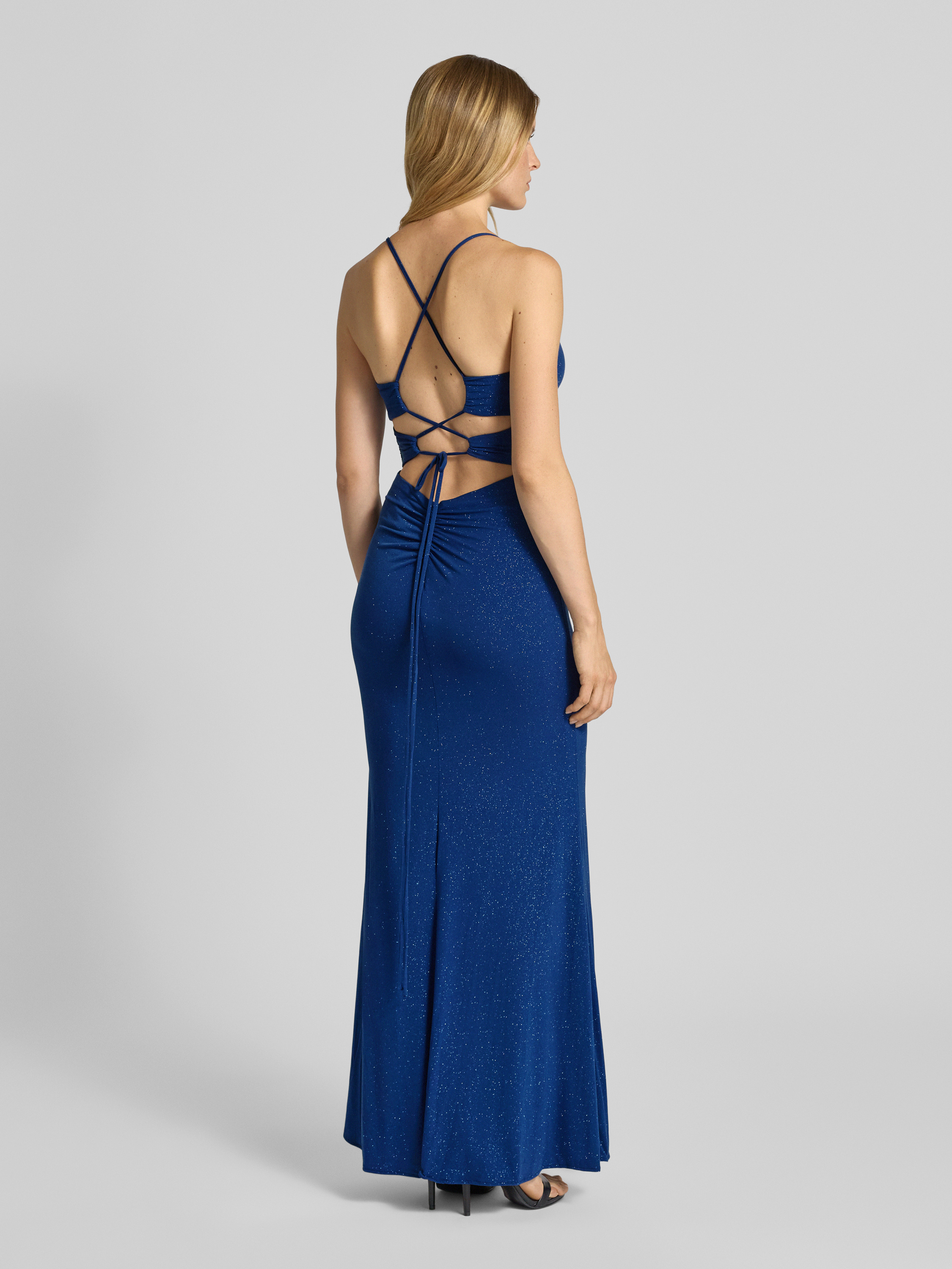 Slim fit avondjurk met plooien in blauw