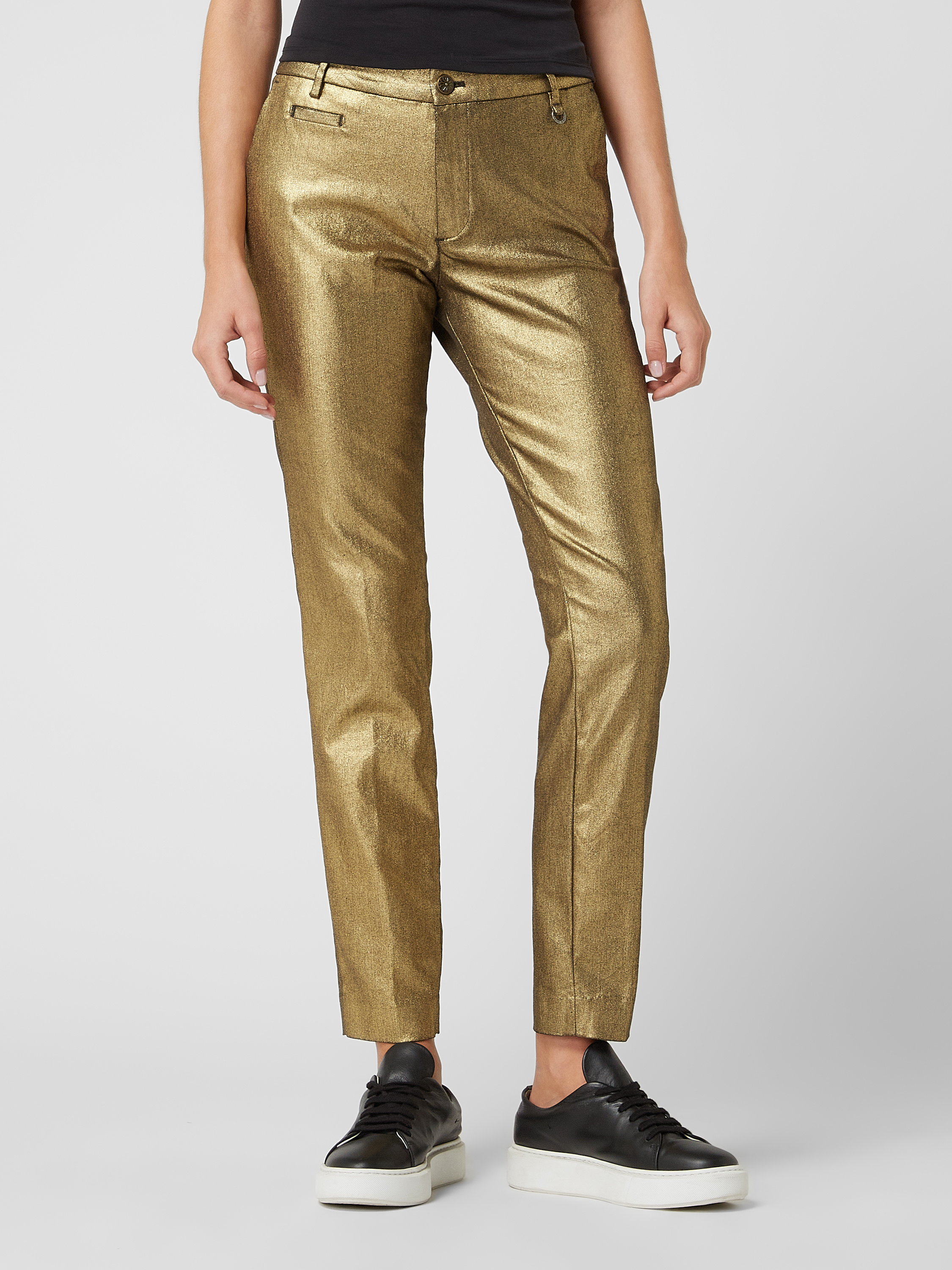 Curvy fit broek, model 'Jaqueline' in goud gemêleerd