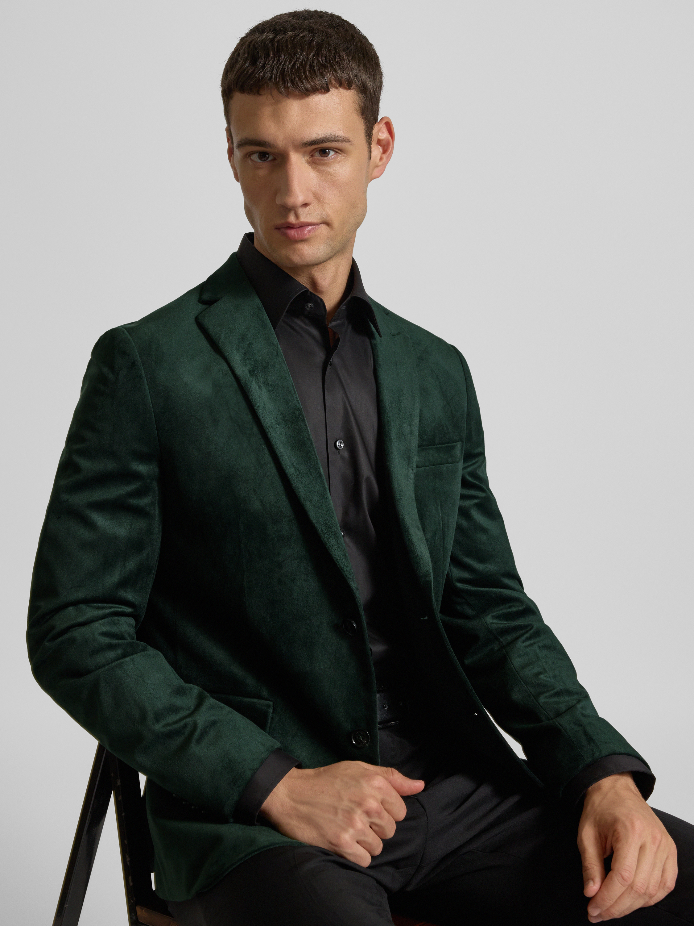 Colbert met paspelzak op de borst, model 'george' in donkergroen