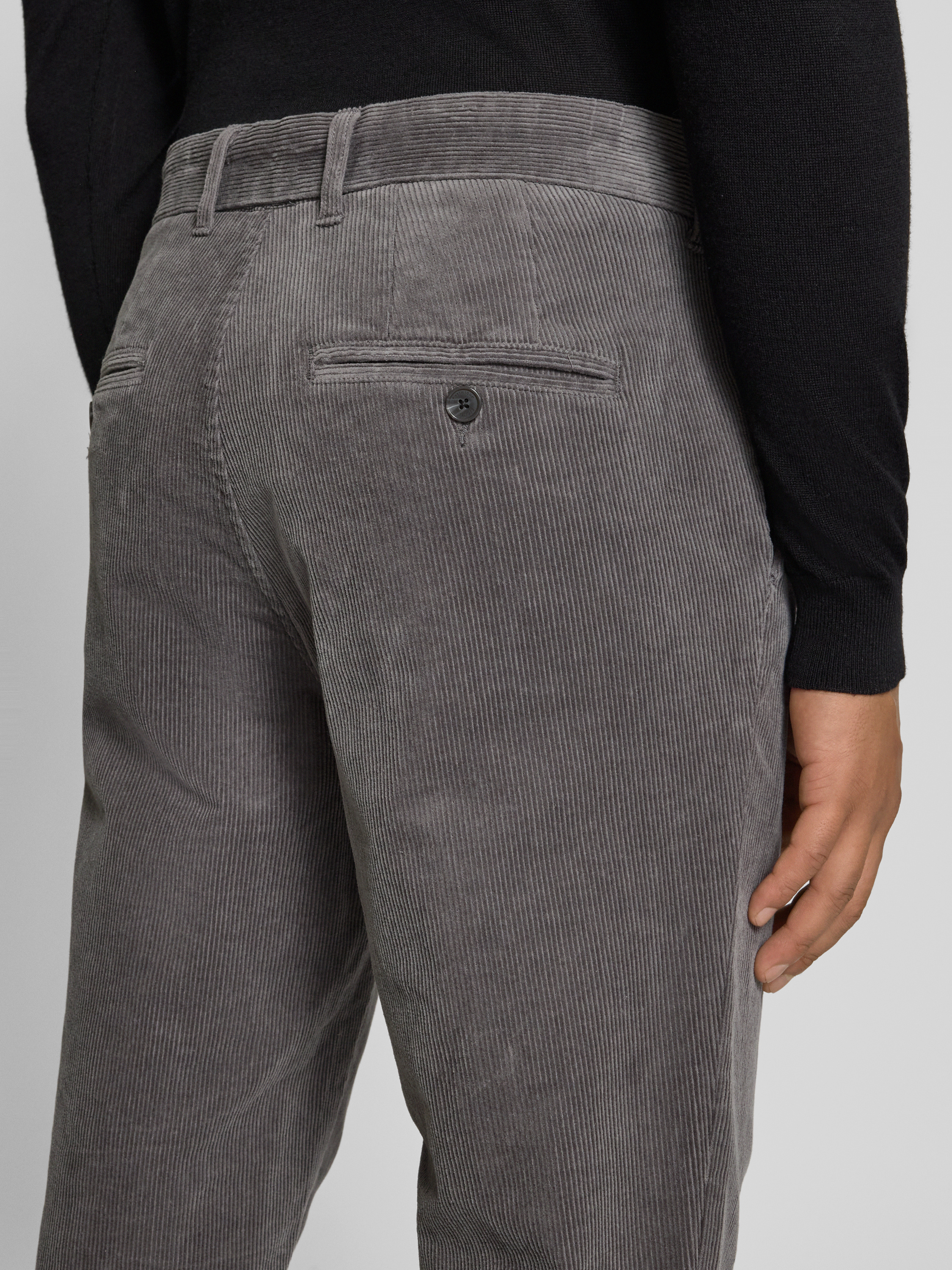 Corduroy broek met achterzakken, model 'MAliam' in lichtgrijs