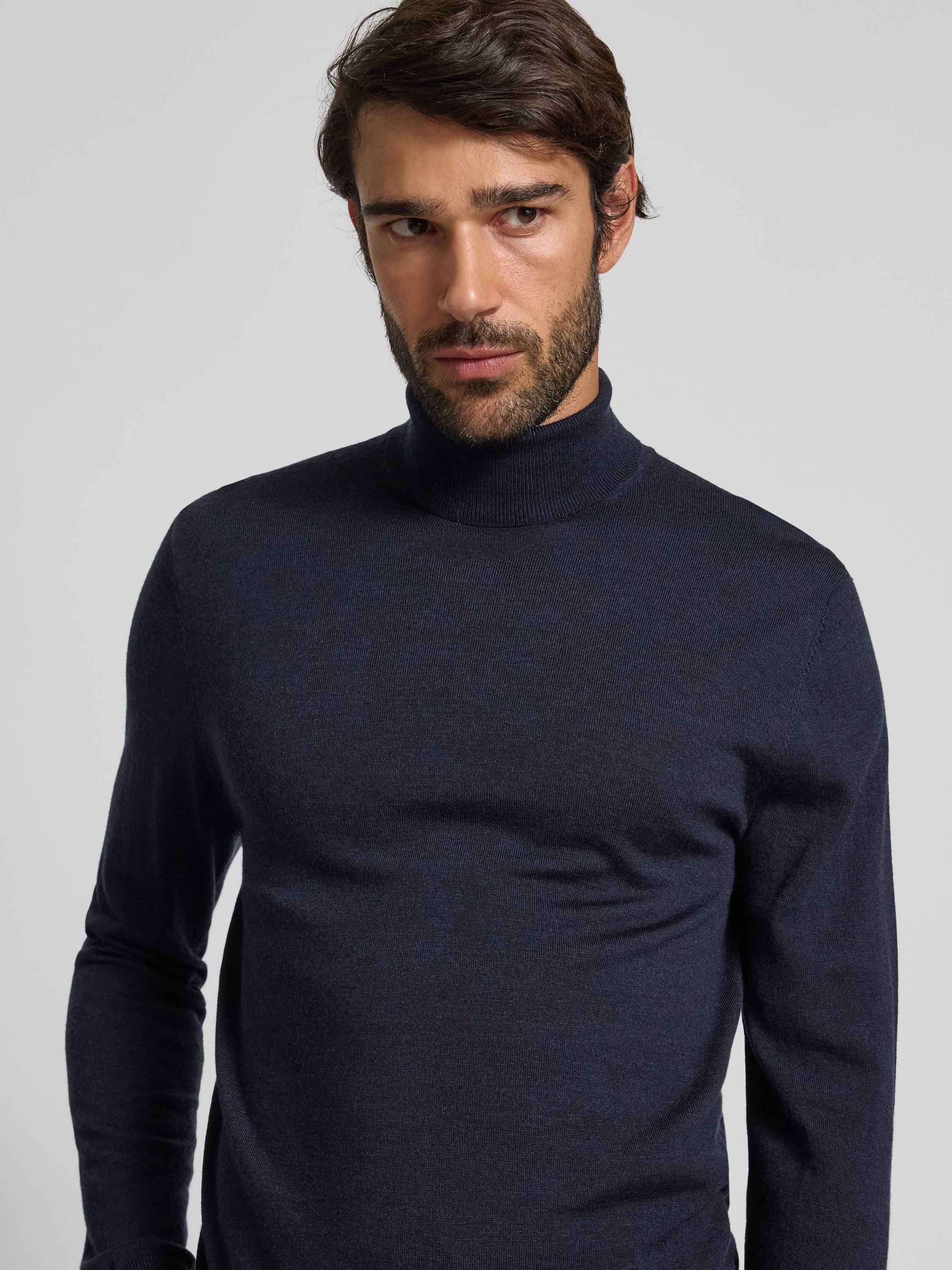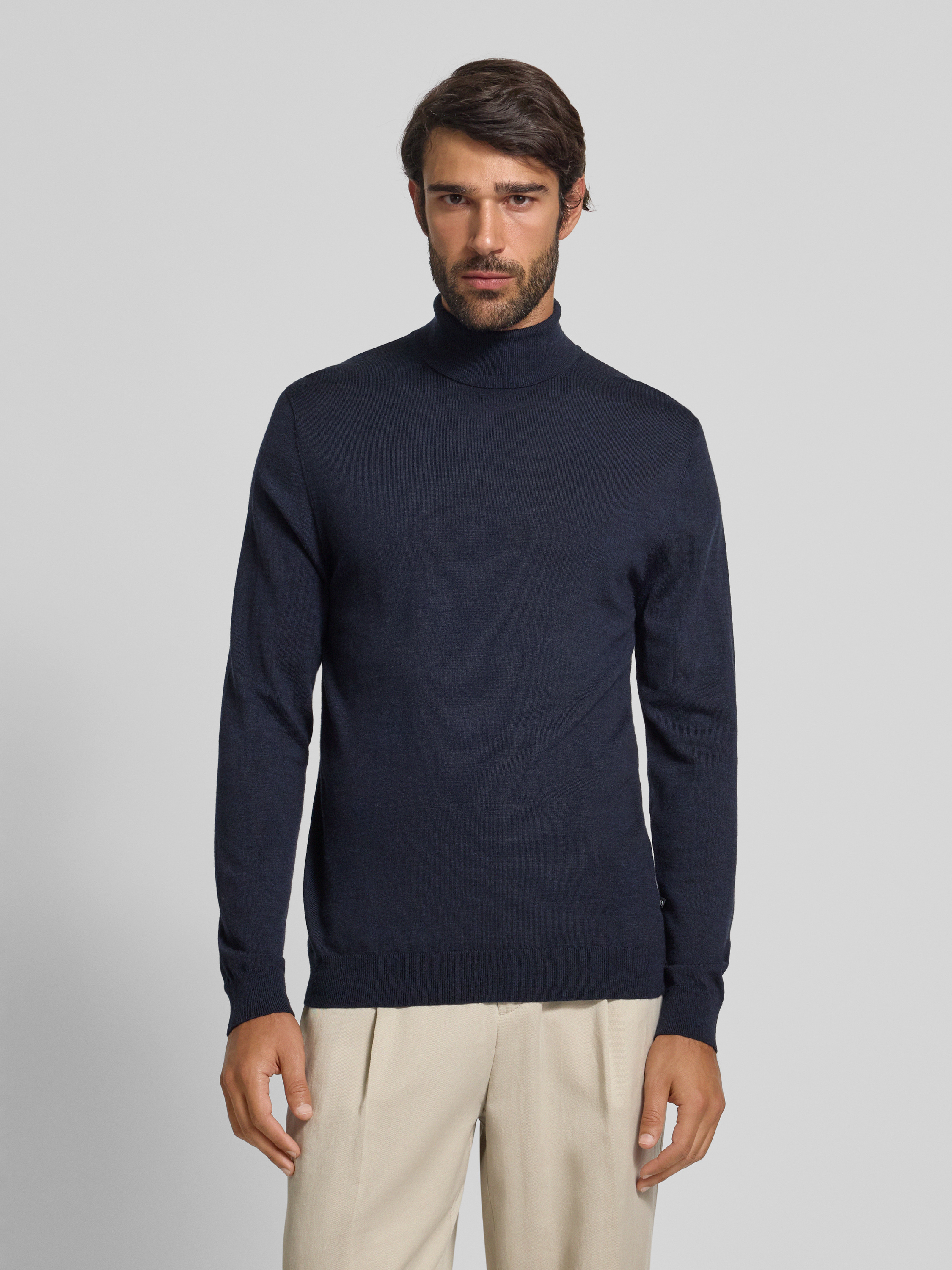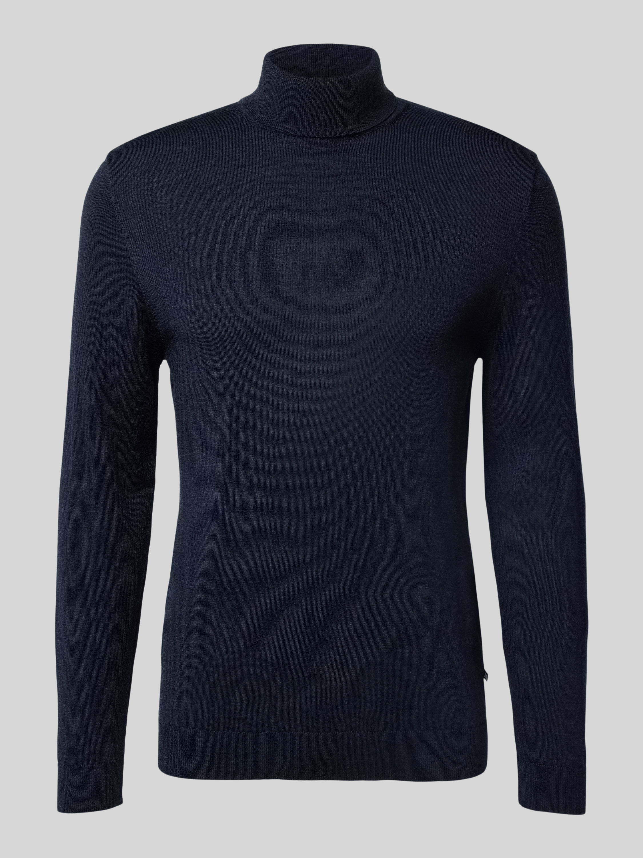 Gebreide pullover met ribboorden, model 'parcusman' in marineblauw