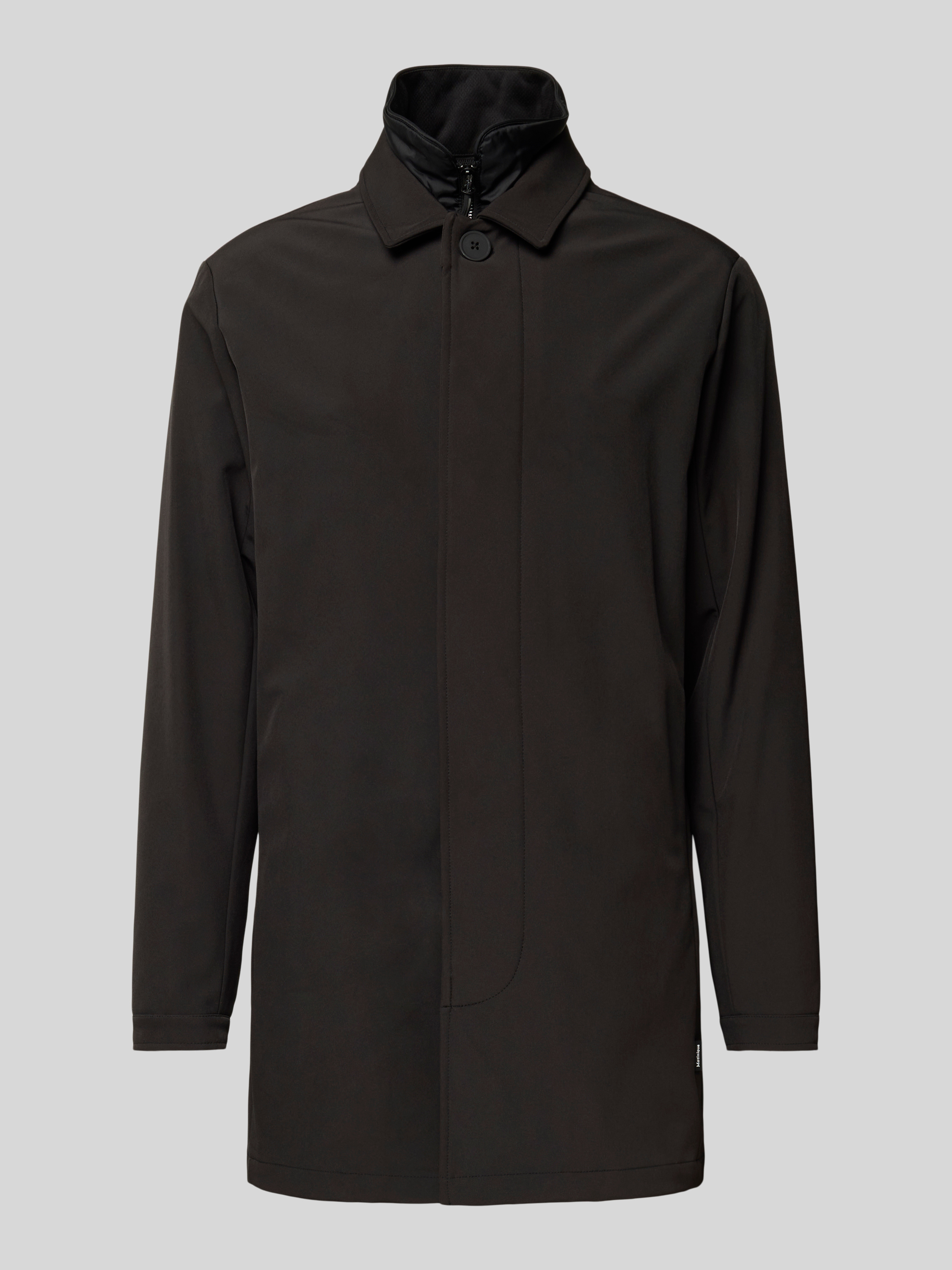 Lange jas met blinde knoopsluiting, model 'Philman' in zwart