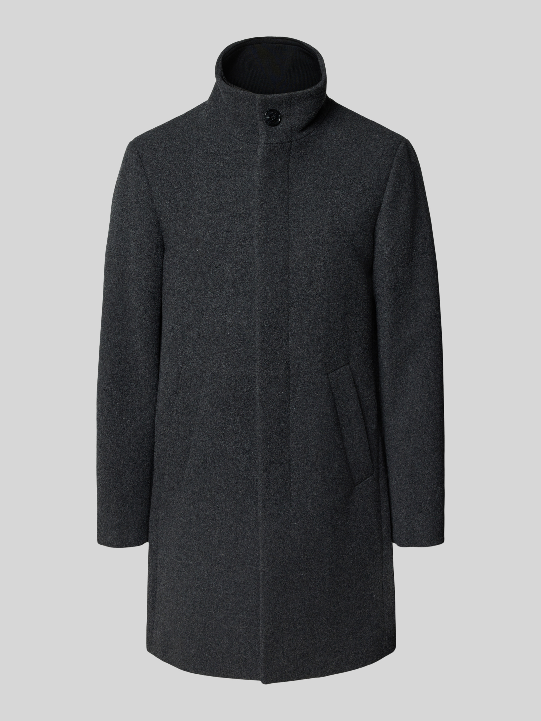 Lange jas met opstaande kraag, model 'Harvey' in antraciet