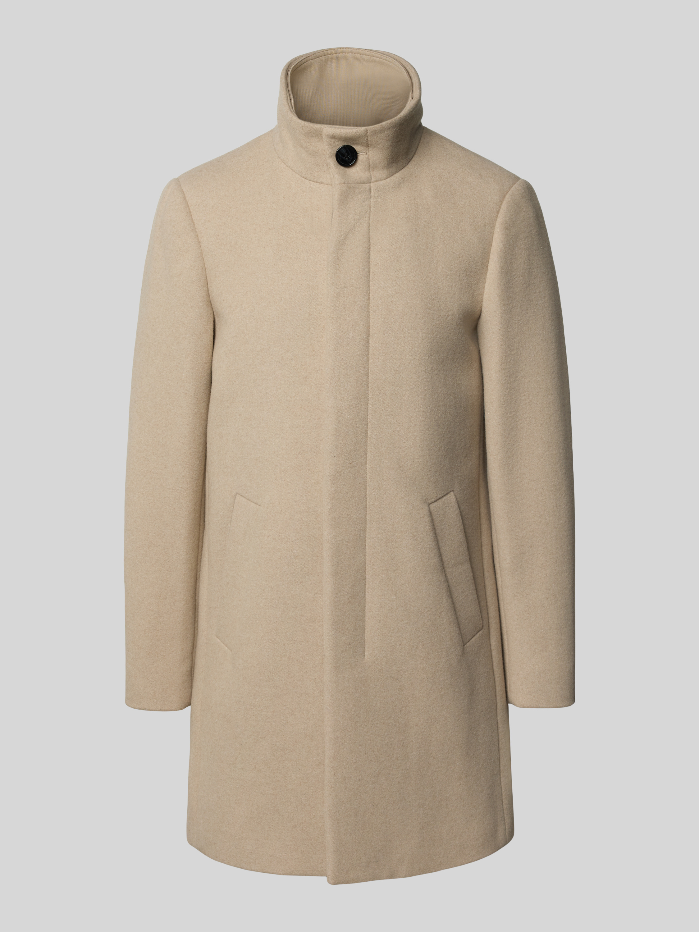 Lange jas met opstaande kraag, model 'Harvey' in beige