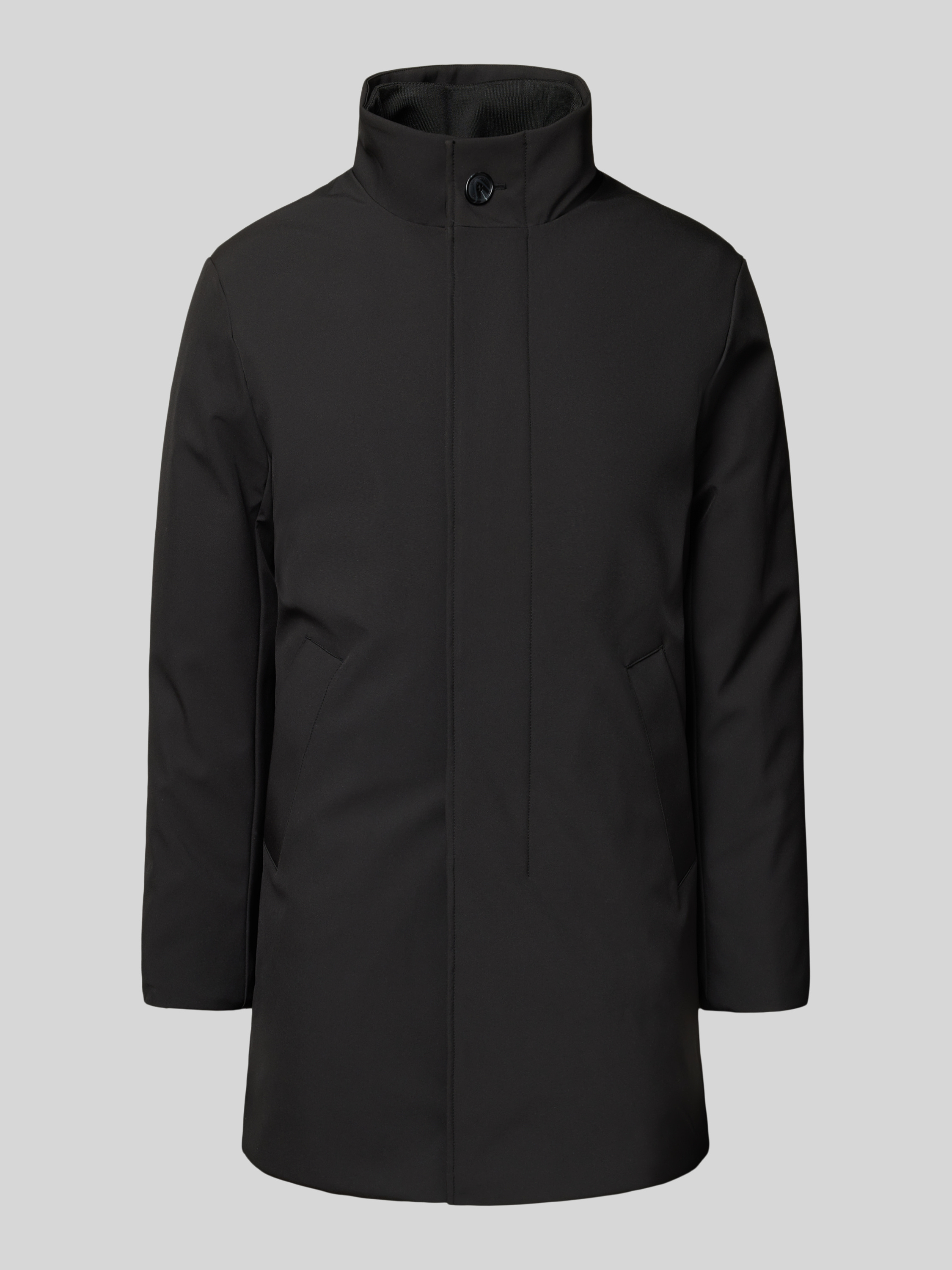 Regular fit functionele lange jas met steekzakken, model 'Harvey' in zwart