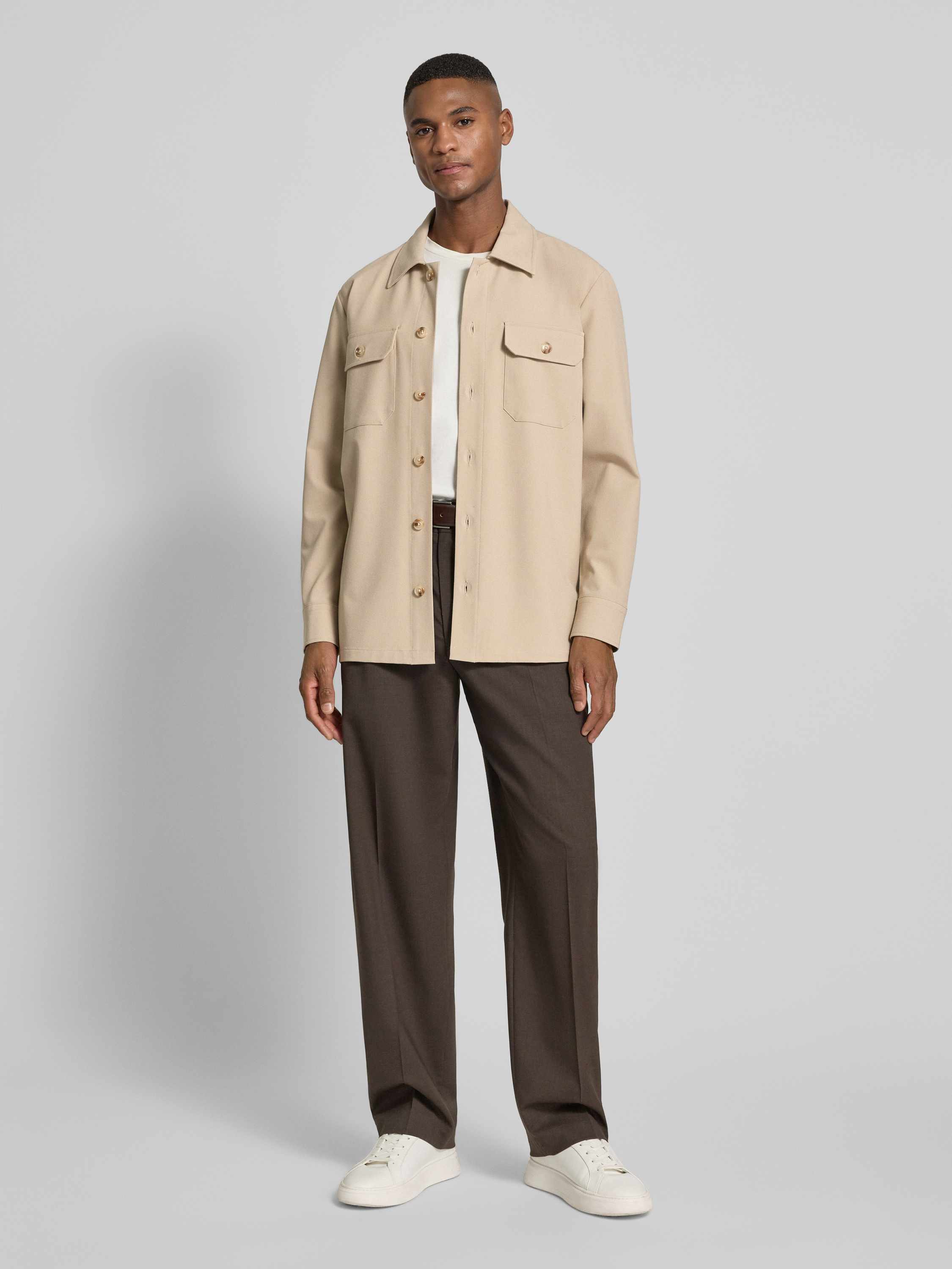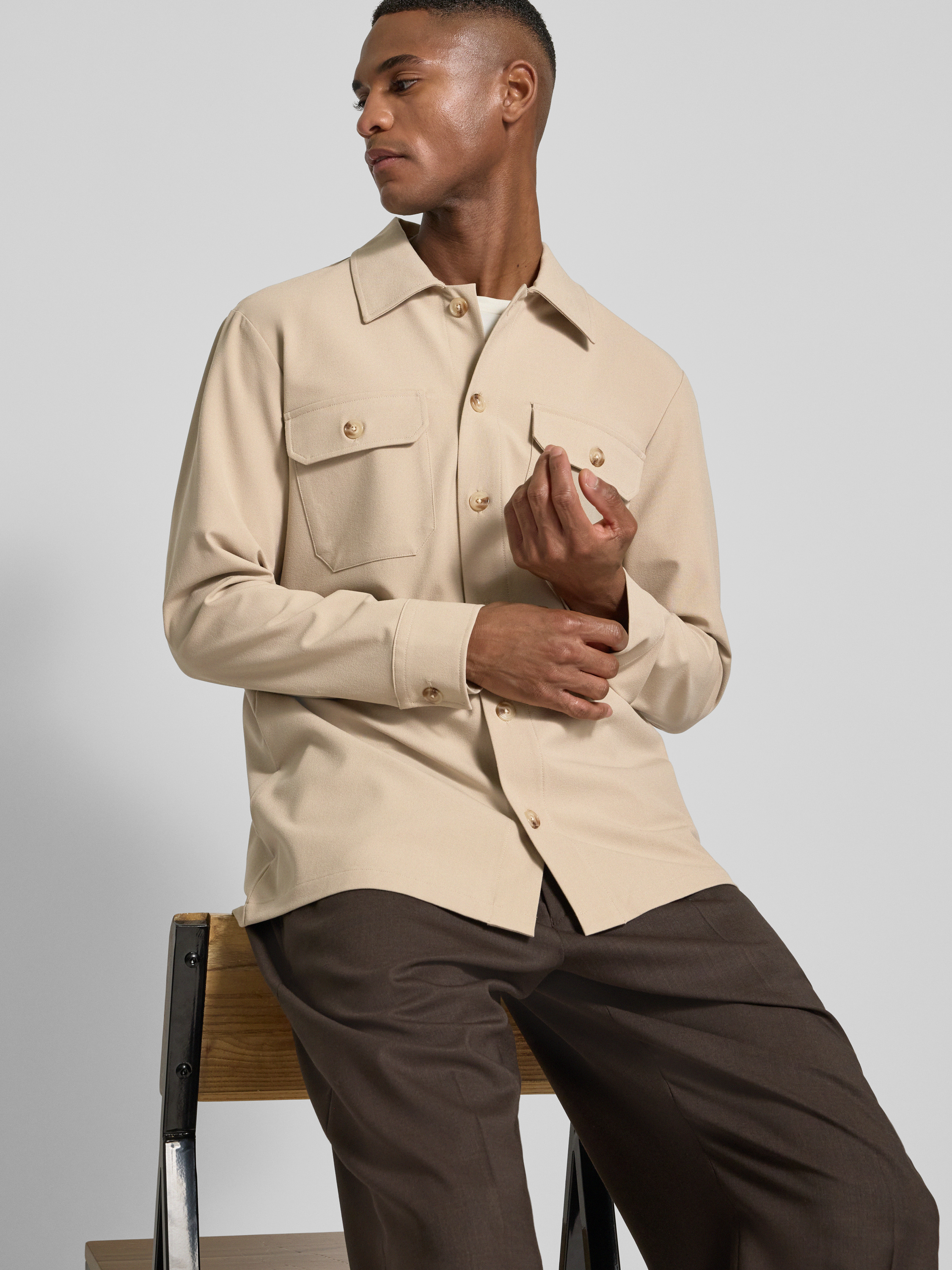 Regular fit overhemdjack met kentkraag, model 'Damo' in beige
