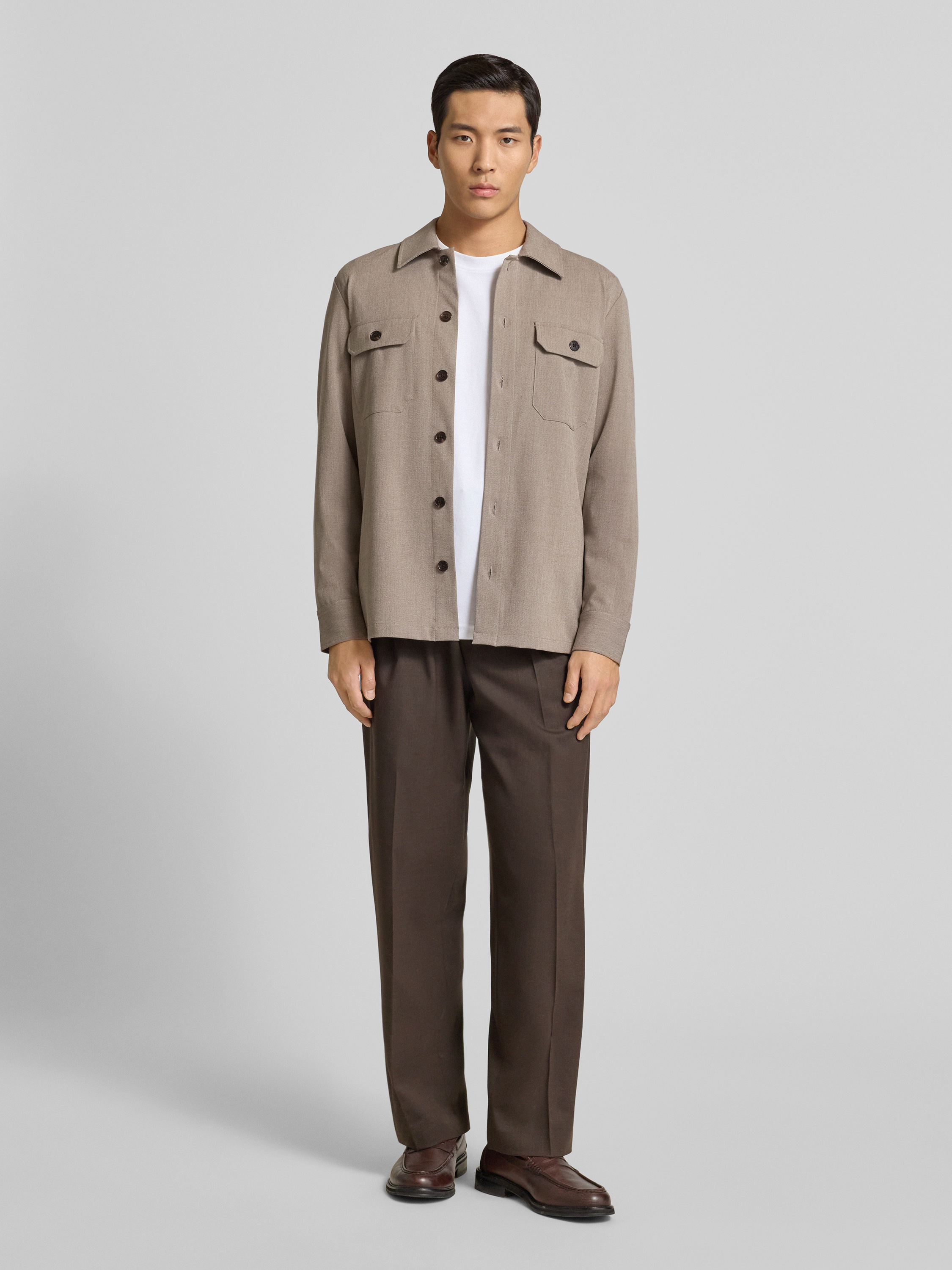 Regular fit overhemdjack met kentkraag, model 'Damo' in taupe