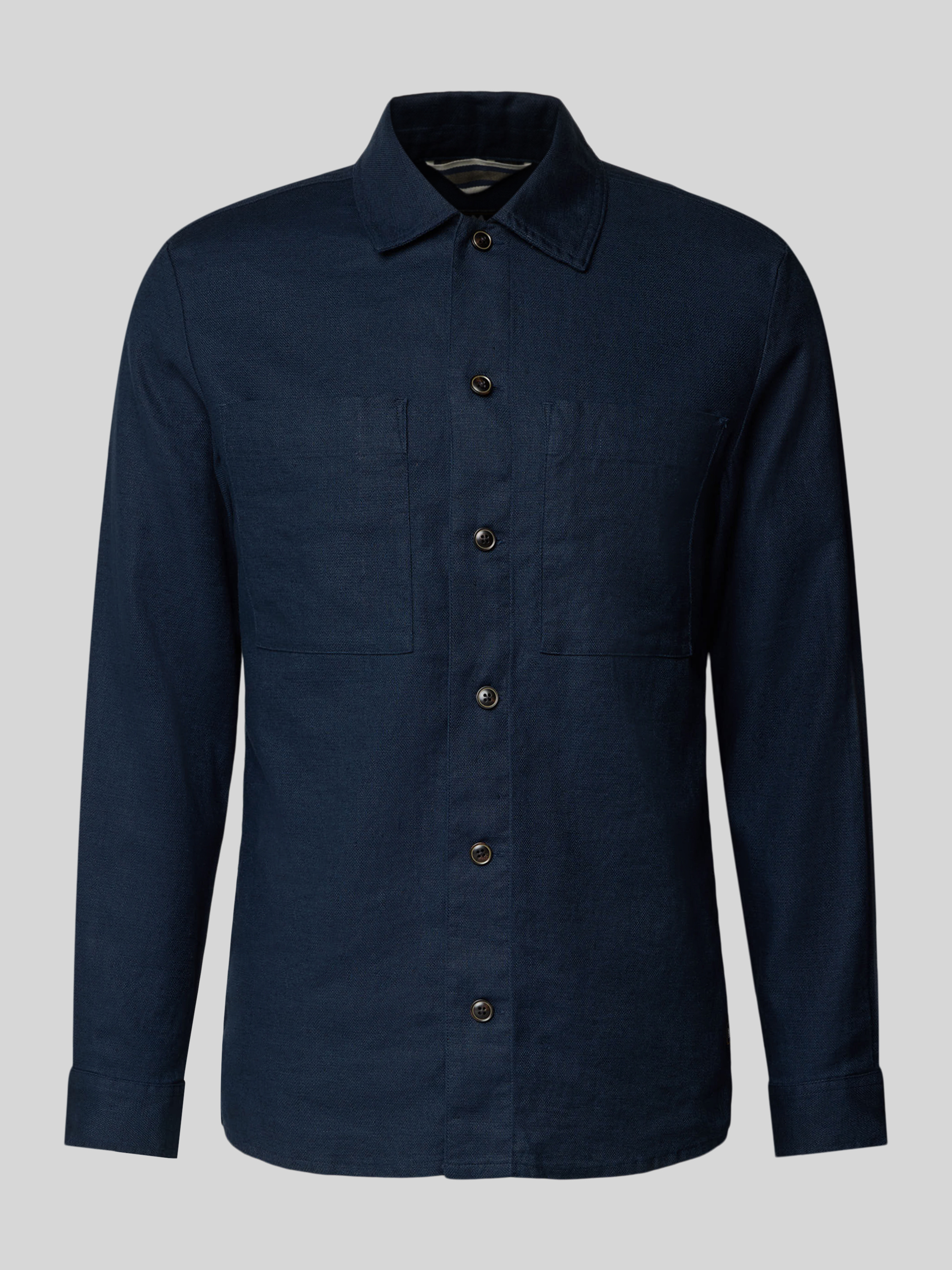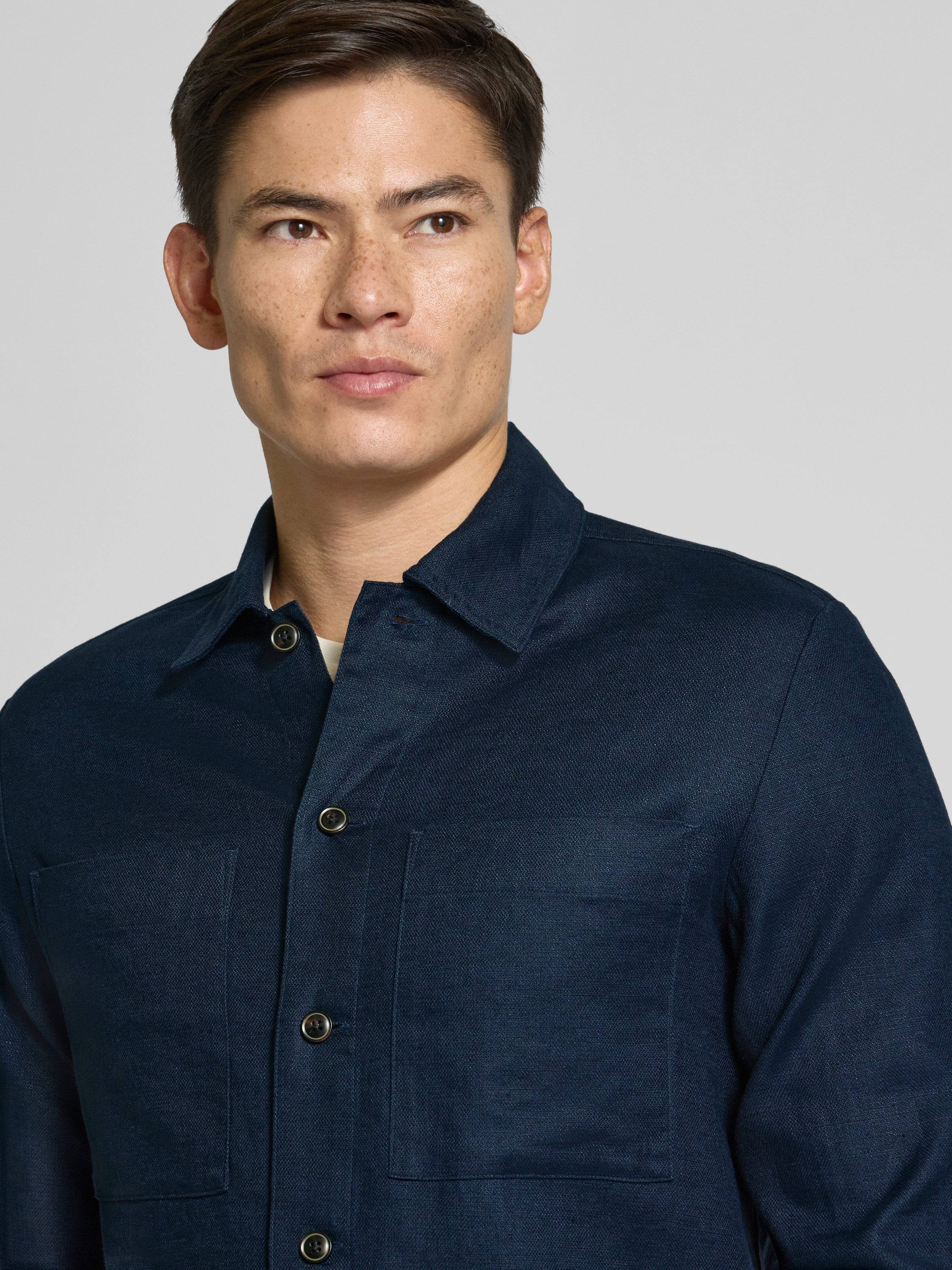 Slim fit overhemdjack van een mix van linnen en katoen, model 'PELTON' in marineblauw